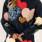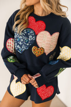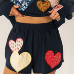 Navy Multi Embroidered Hearts Short | Queen Of Sparkles
