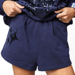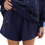 Show off your sparkle with the Queen Of Sparkles Navy QOS Sparkle Logo Short. Featuring a relaxed fit and an elastic waistband, they’re designed for all-day comfort. The navy color with the signature QOS card logo adds a playful, iconic touch to any casual outfit.