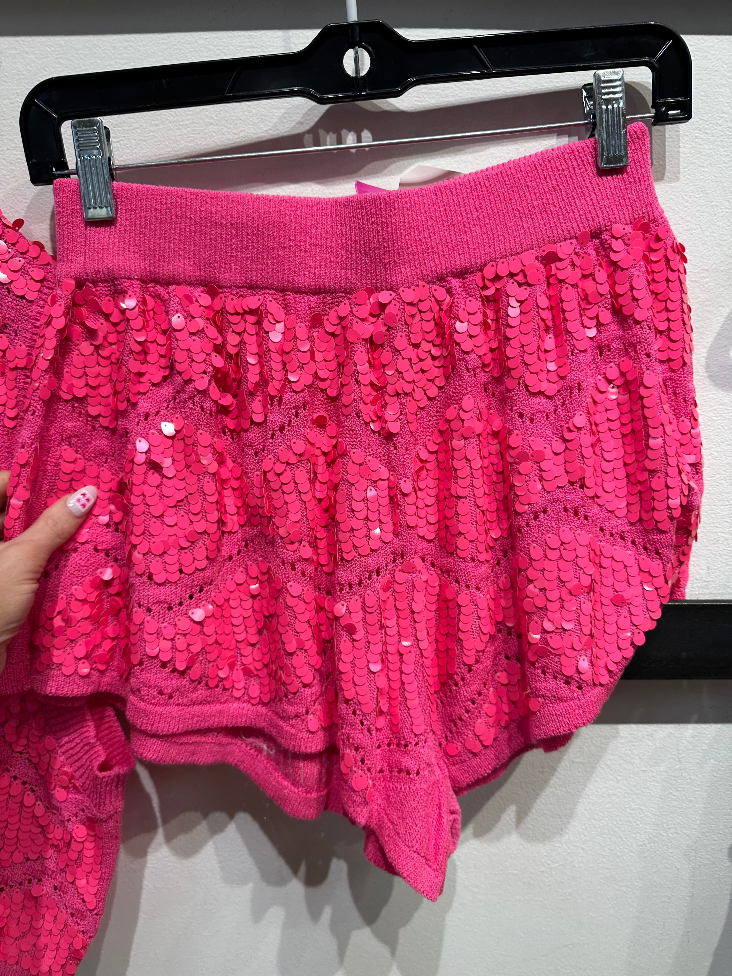 Queen Of Sparkles Neon Pink Full Sequin Zig Zag Sweater Shorts