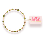 The Beaded Blondes Olive Green June Bracelet brings a chic touch of color to your everyday style. Designed with smooth olive-toned beads and a comfortable stretch fit, it adds just the right amount of earthiness to any bracelet stack. Whether worn alone or layered, this bracelet is a simple, stylish finishing touch for any look.
