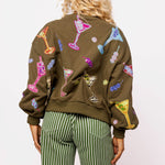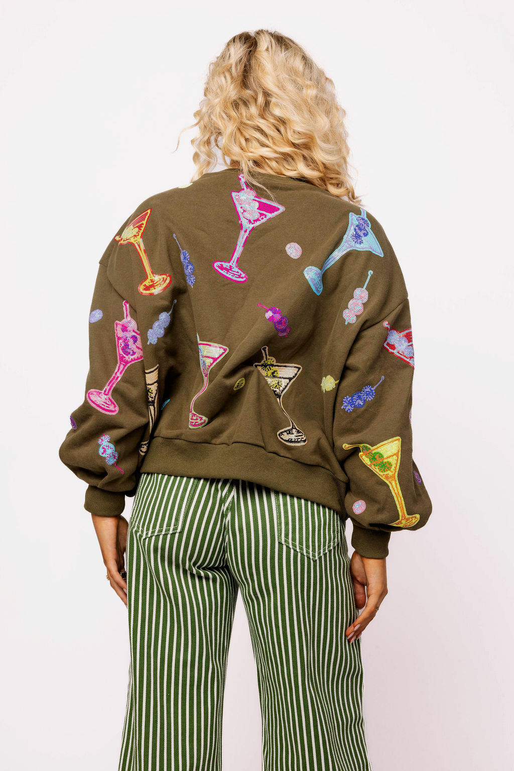 Olive Green Multi Martini Sweatshirt | Queen Of Sparkles