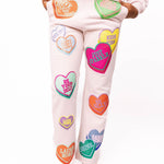 Pale Pink Multi Positive Hearts Sweatpant | Queen Of Sparkles