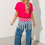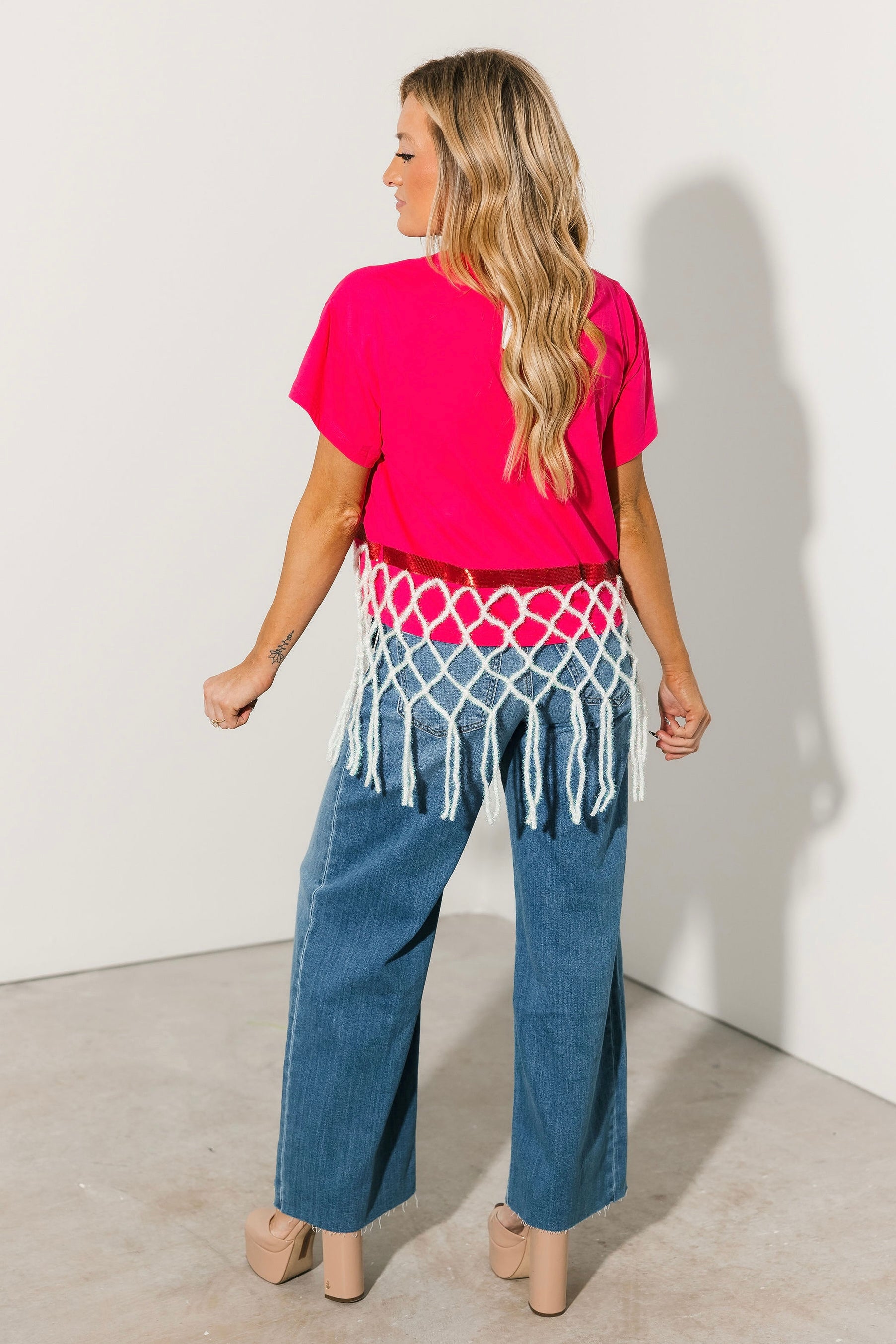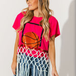 The Queen Of Sparkles Pink Basketball Net Tee adds a fun, feminine spin to sporty style. With its relaxed fit and bold basketball net design, this tee is perfect for showing your love of the game while keeping it playful. Pair it with denim for an easy everyday look or style it with sequin shorts for game day glam that shines. Lexi Jade is wearing an XS.