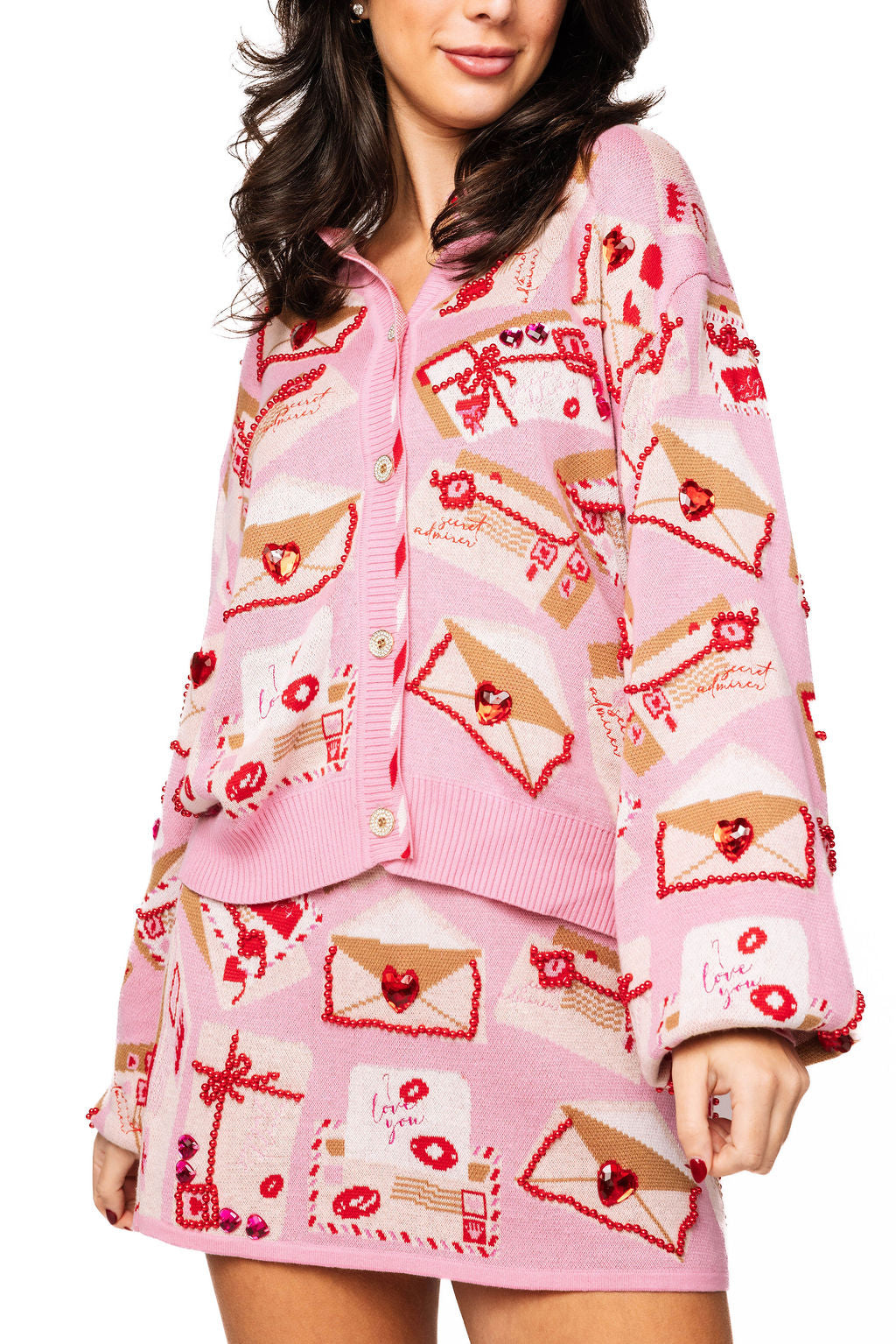 Pink Love Letters Button Up Cardigan | Queen Of Sparkles