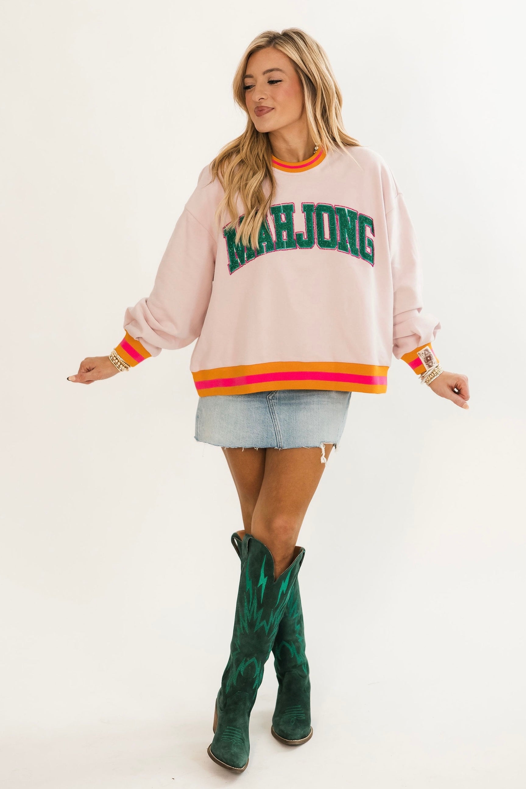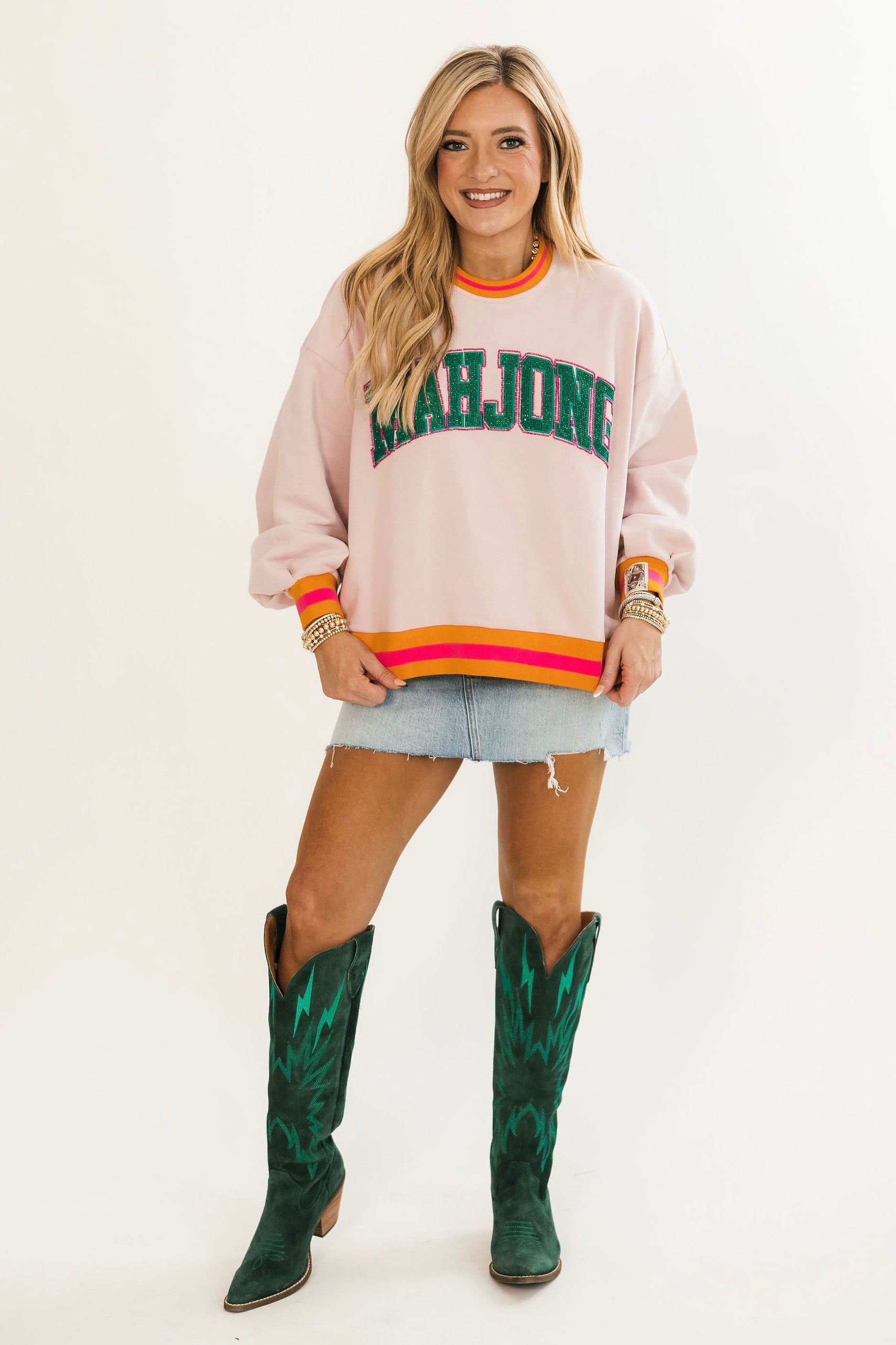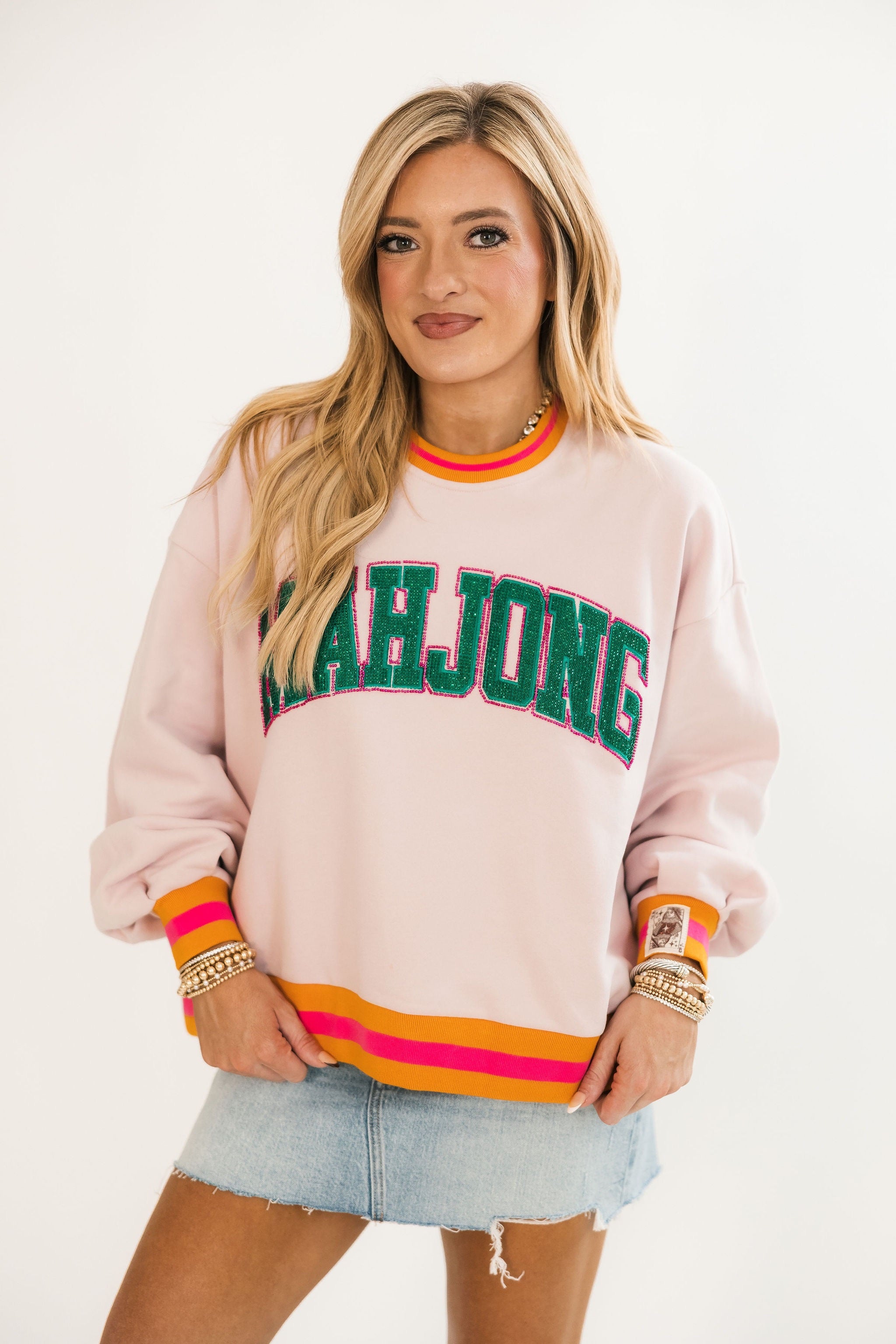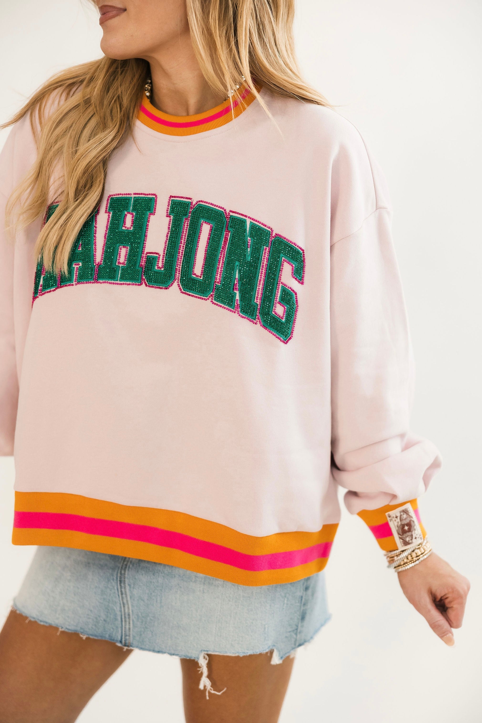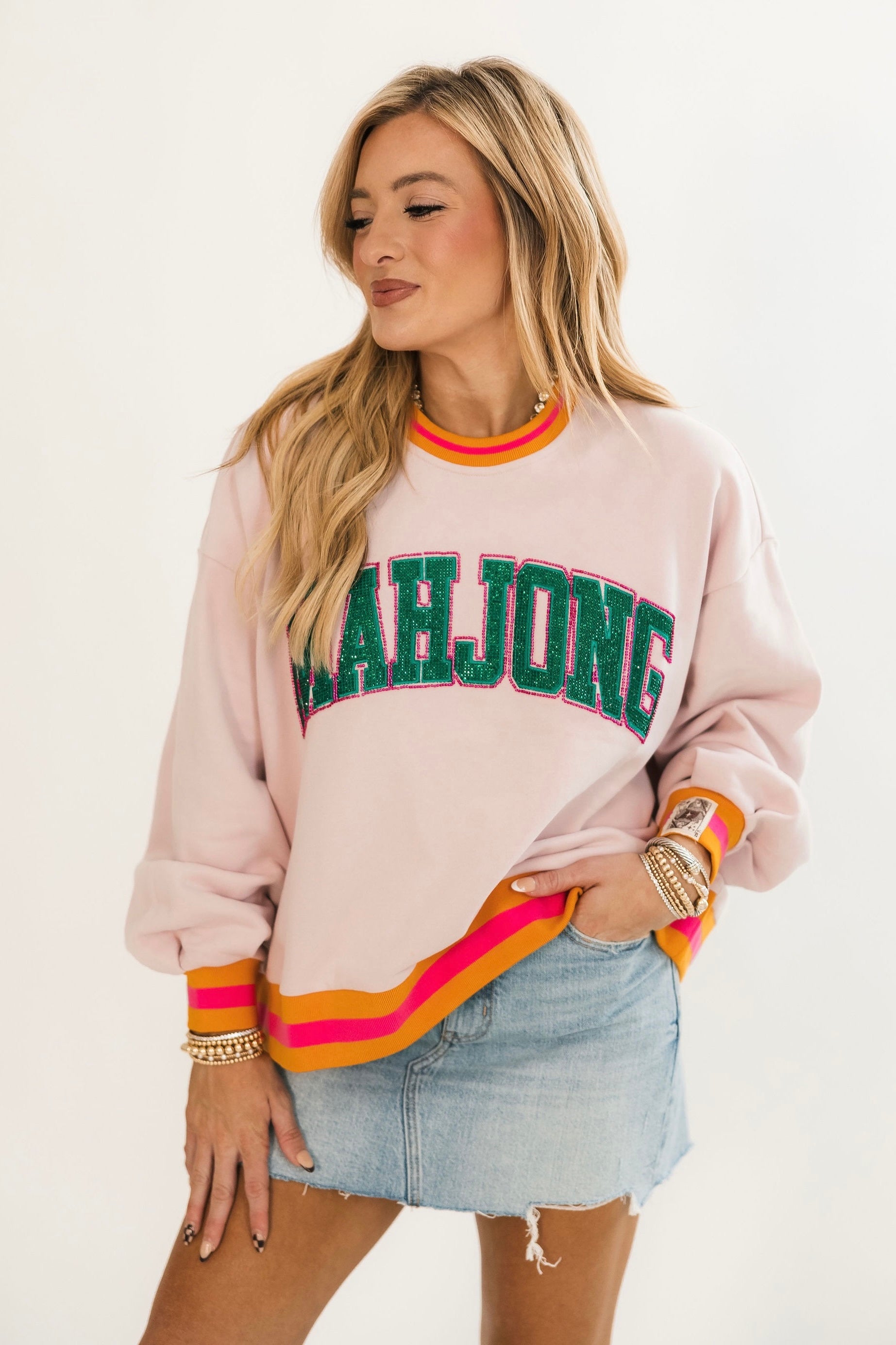 Queen Of Sparkles Pink, Orange & Green Rhinestone 'Mahjong' Sweatshirt