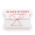 The Beaded Blondes Pink Pearl Beaded Bow Bracelet is a delicate and playful accessory featuring soft pink pearls and a charming bow detail. Lightweight and versatile, it adds a feminine touch to any outfit.
