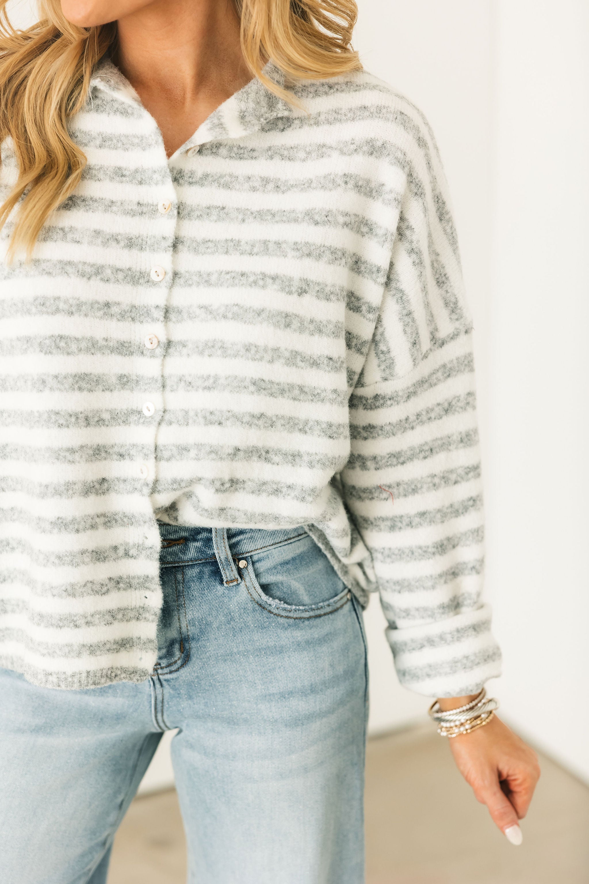 Piper Stripe Cardigan | Heather Grey