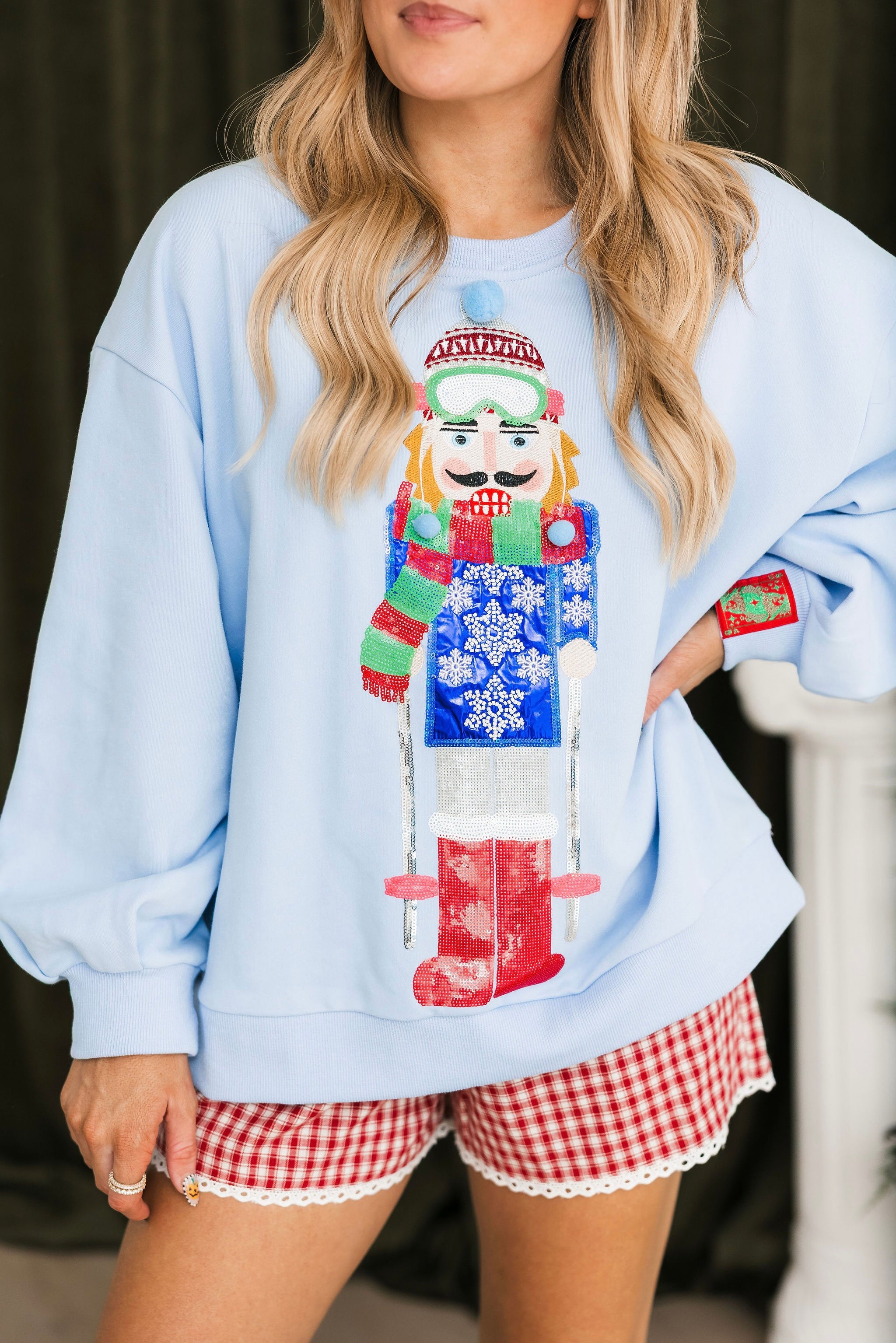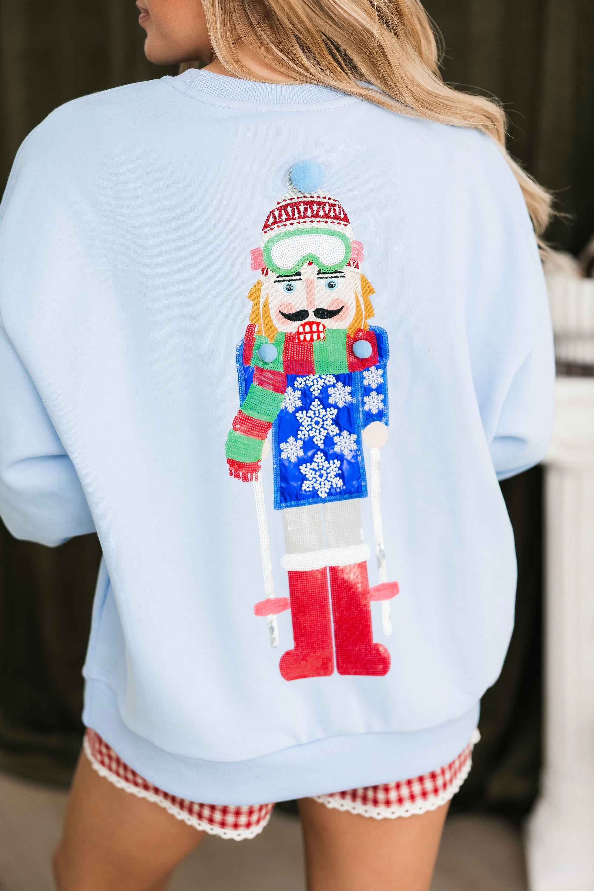 Powder Blue Skiing Nutcracker Sweatshirt | Queen Of Sparkles