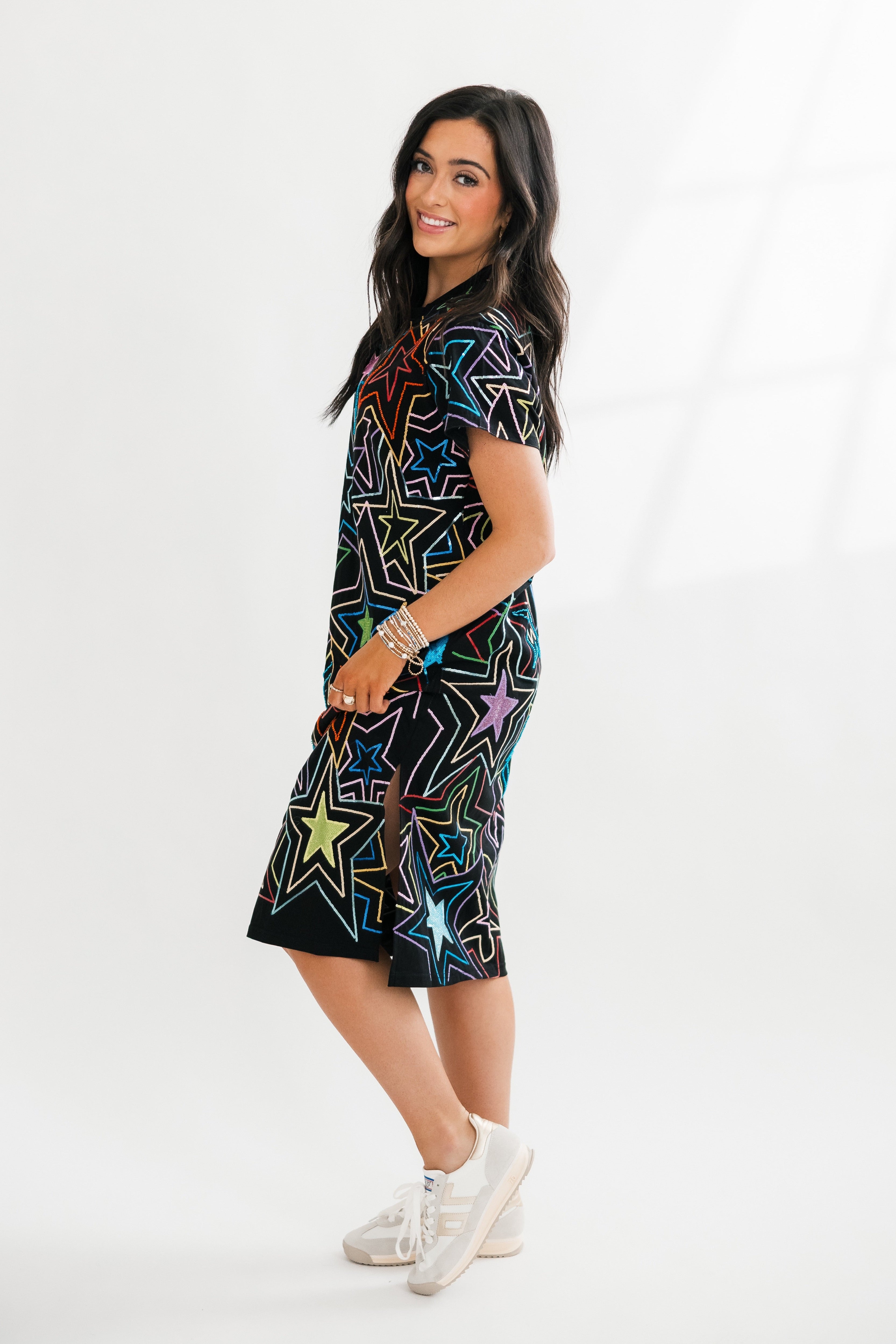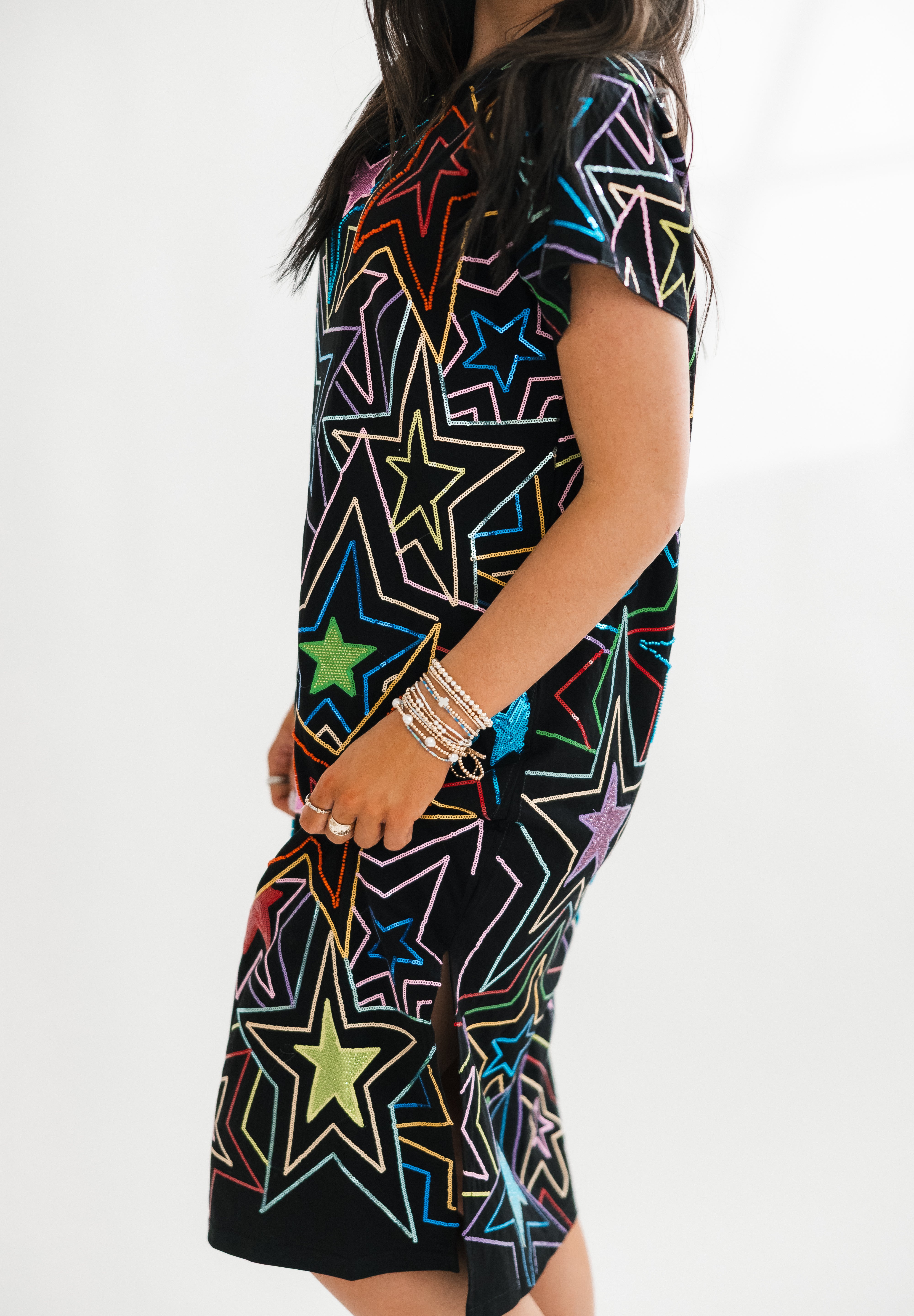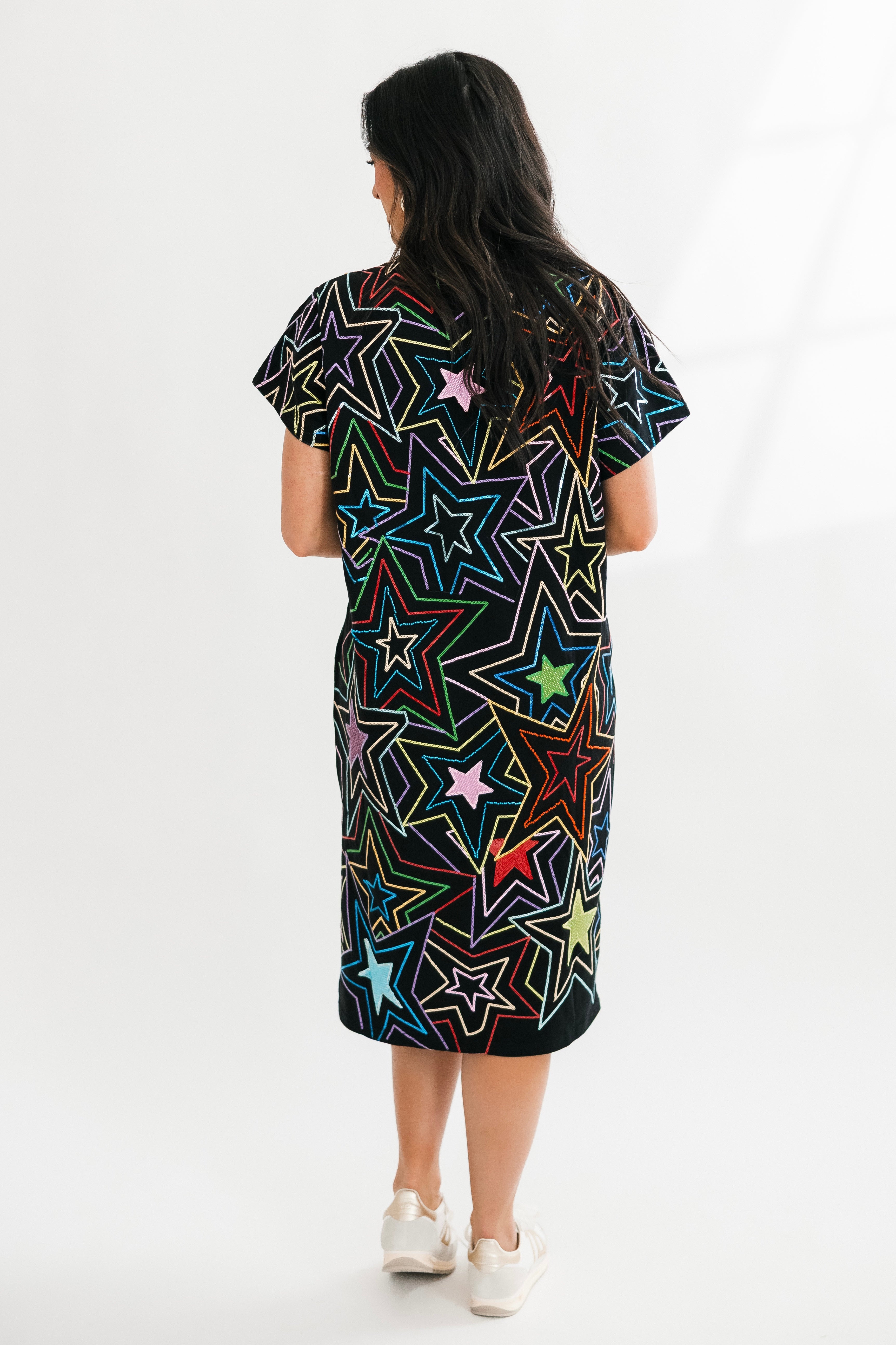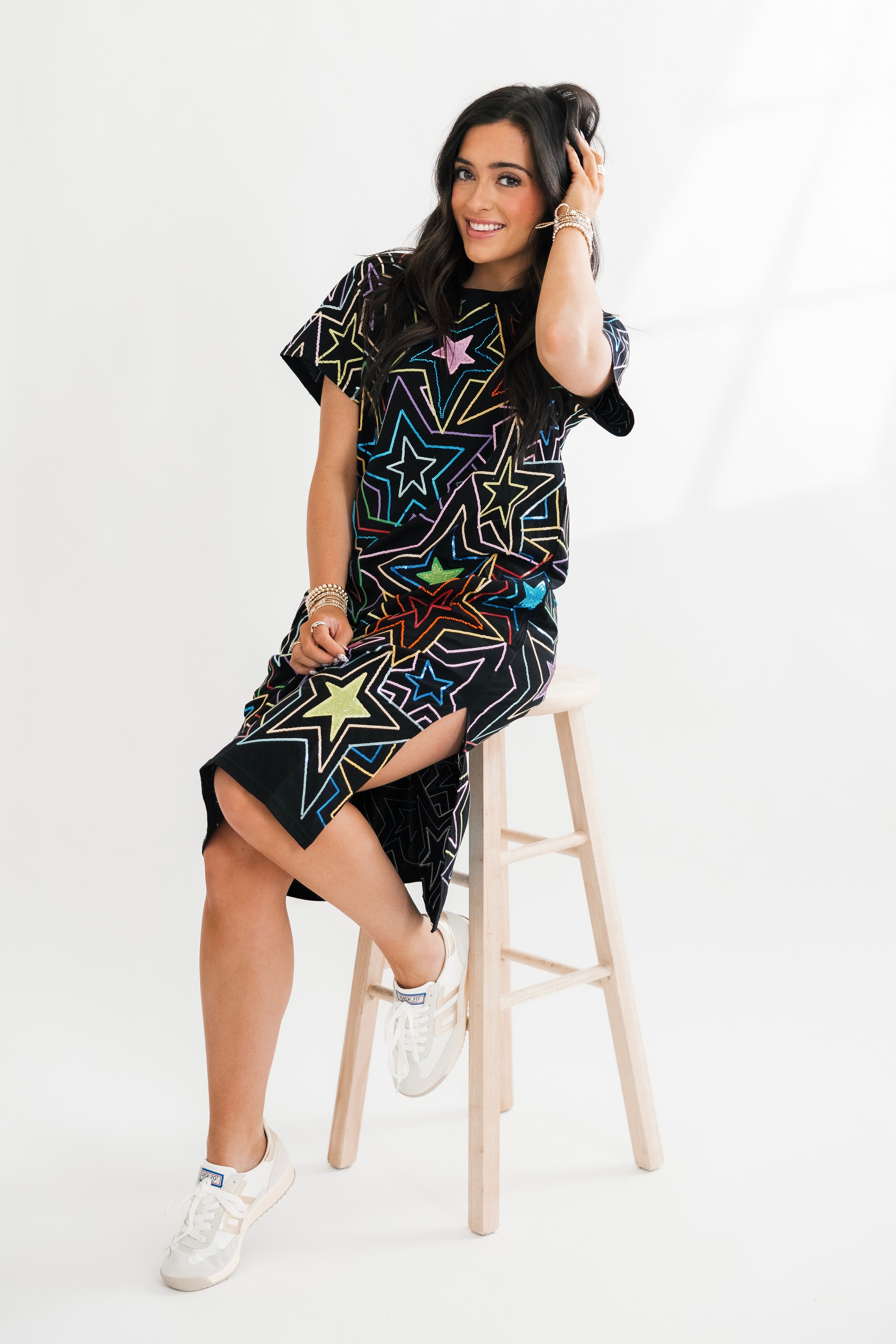 Black Multi Star Midi Dress | Queen Of Sparkles