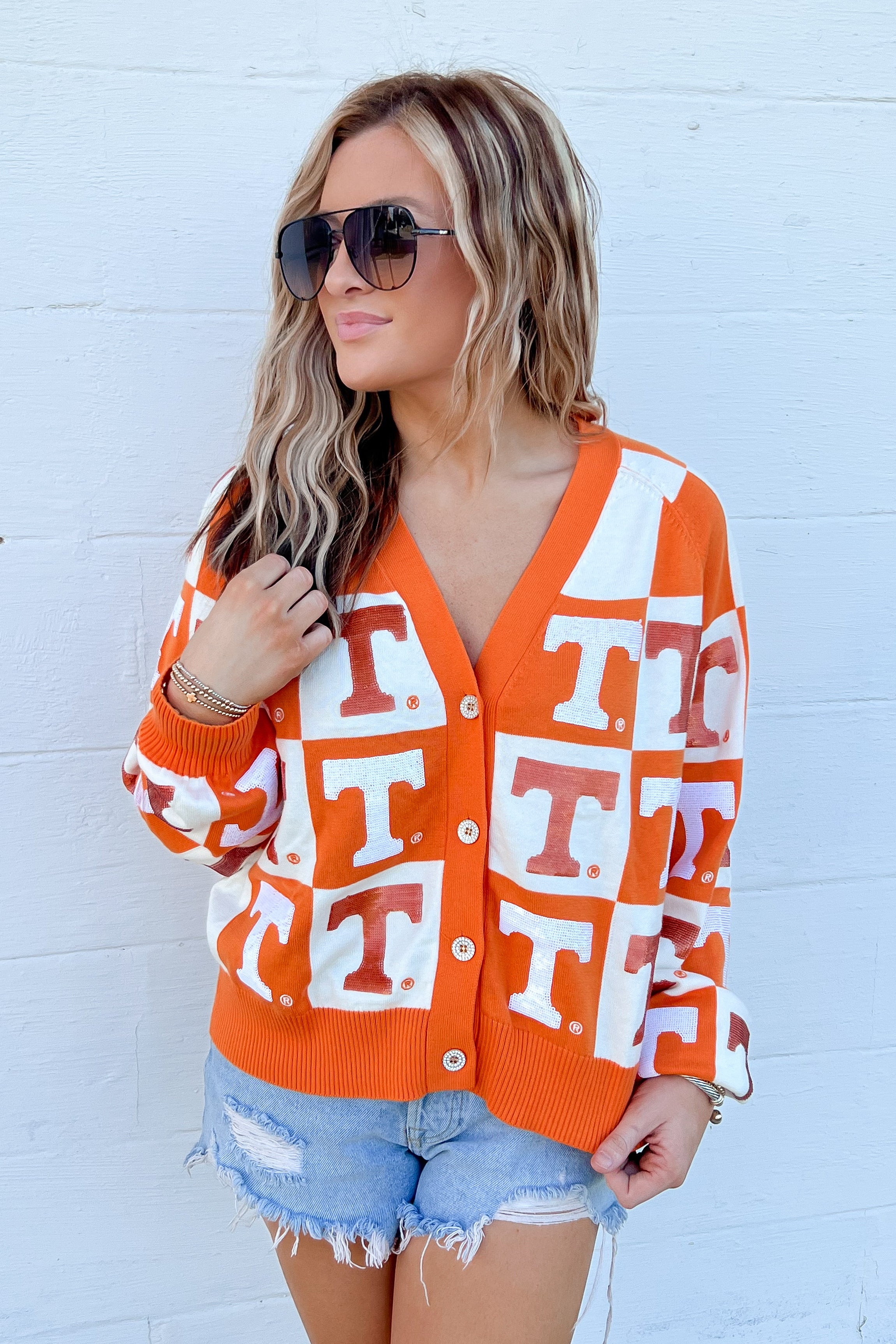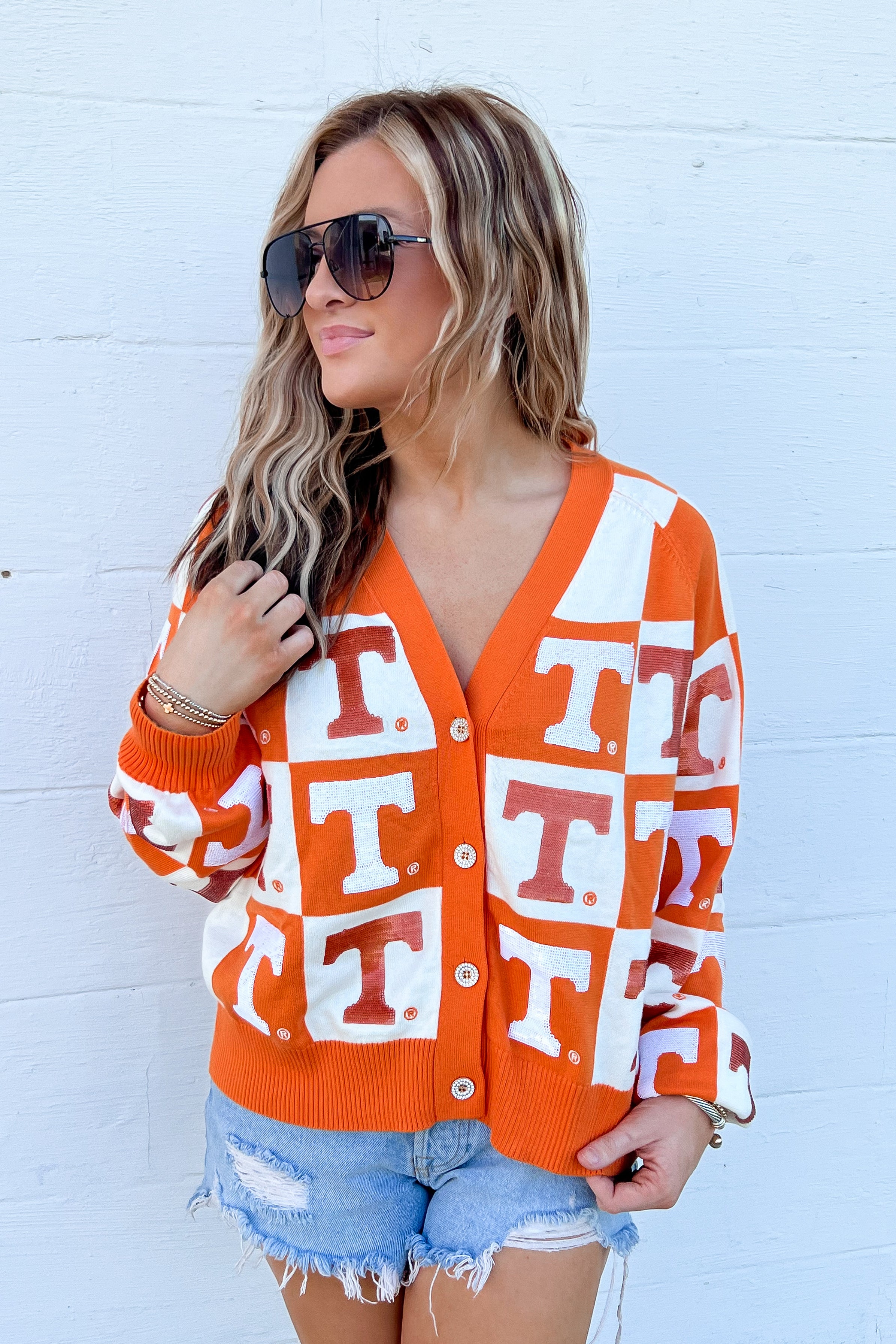 Orange & White Tennessee Checkered Cardigan | Queen Of Sparkles