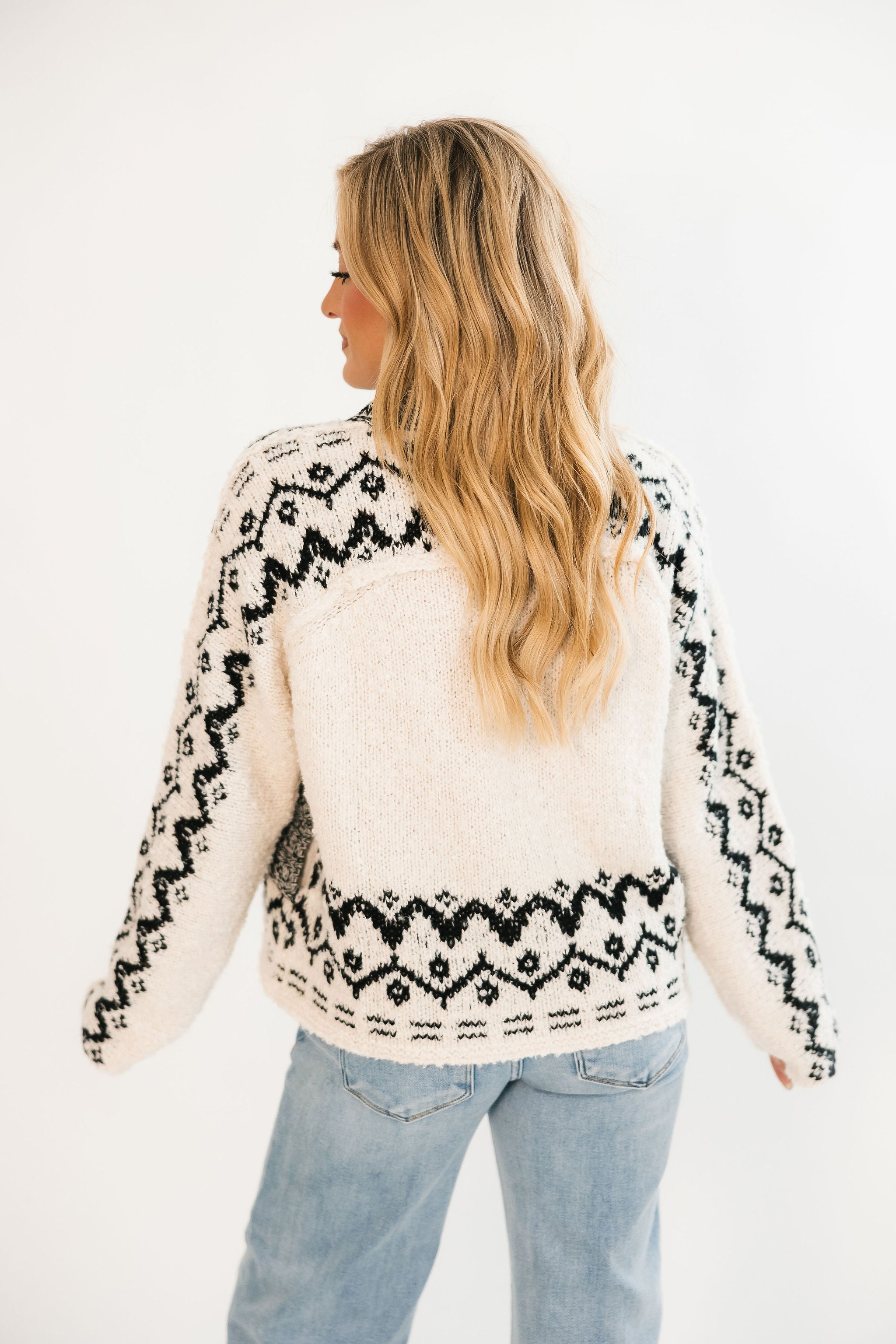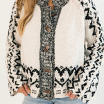This cozy cardigan pairs a relaxed fit with a timeless button-up design, featuring a soft oatmeal base and bold black print for an effortlessly chic contrast. Finished with a classic crewneck and long sleeves, it’s the perfect layering piece for cooler days. Lexi is wearing a small.