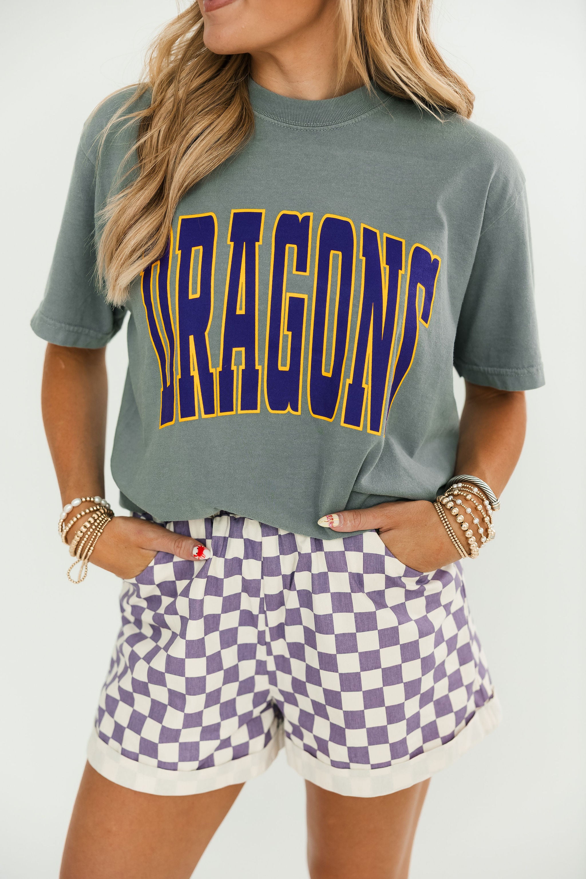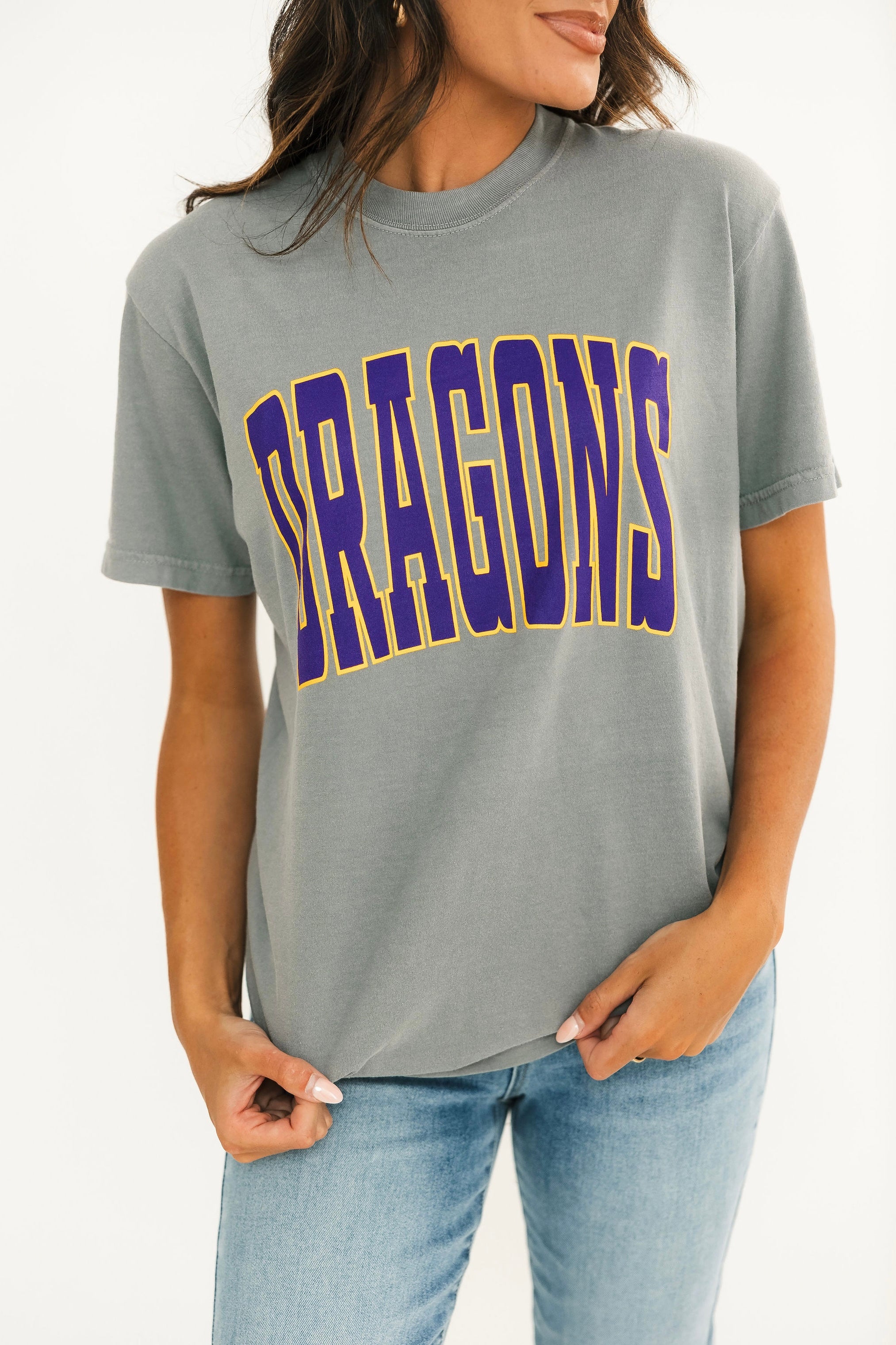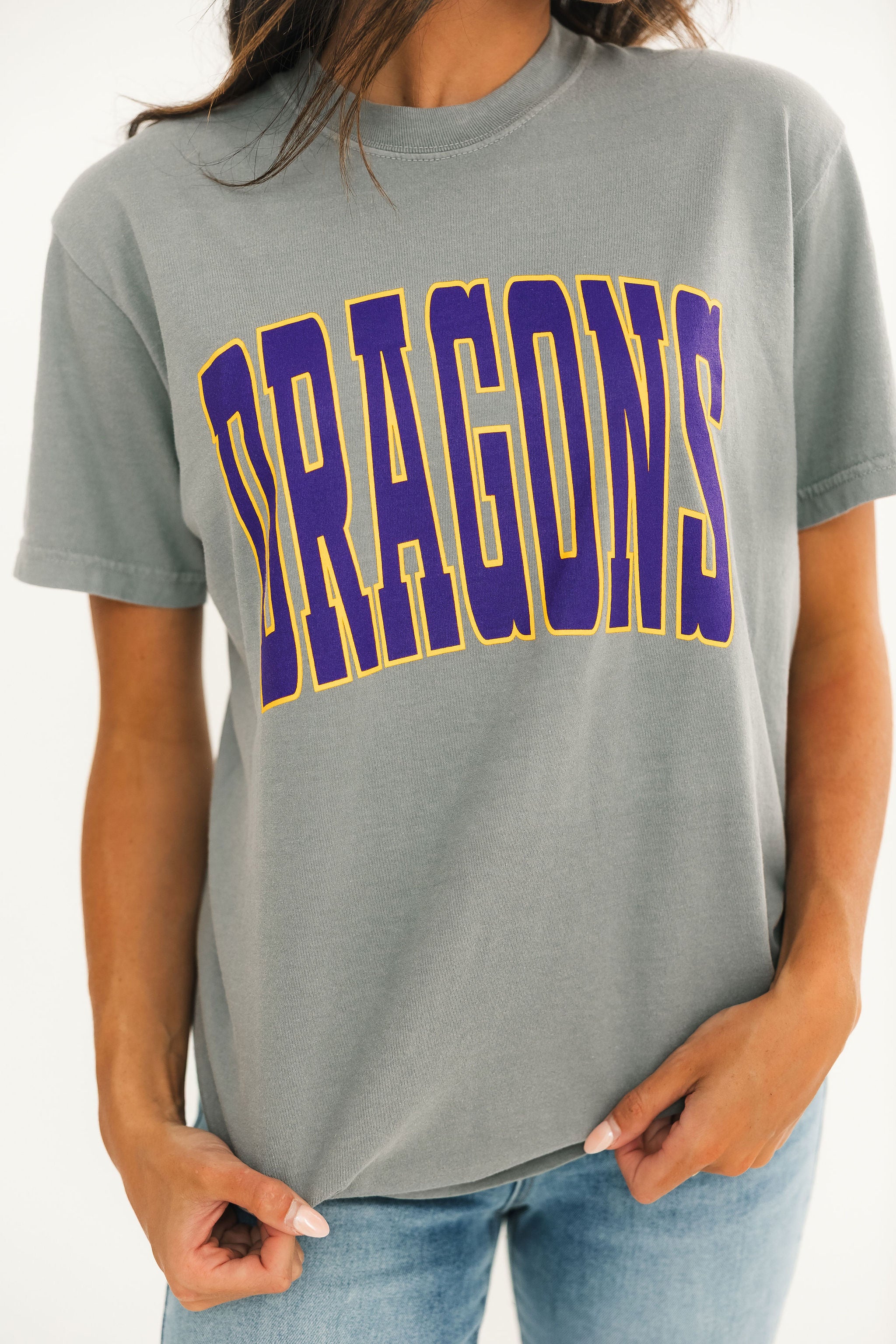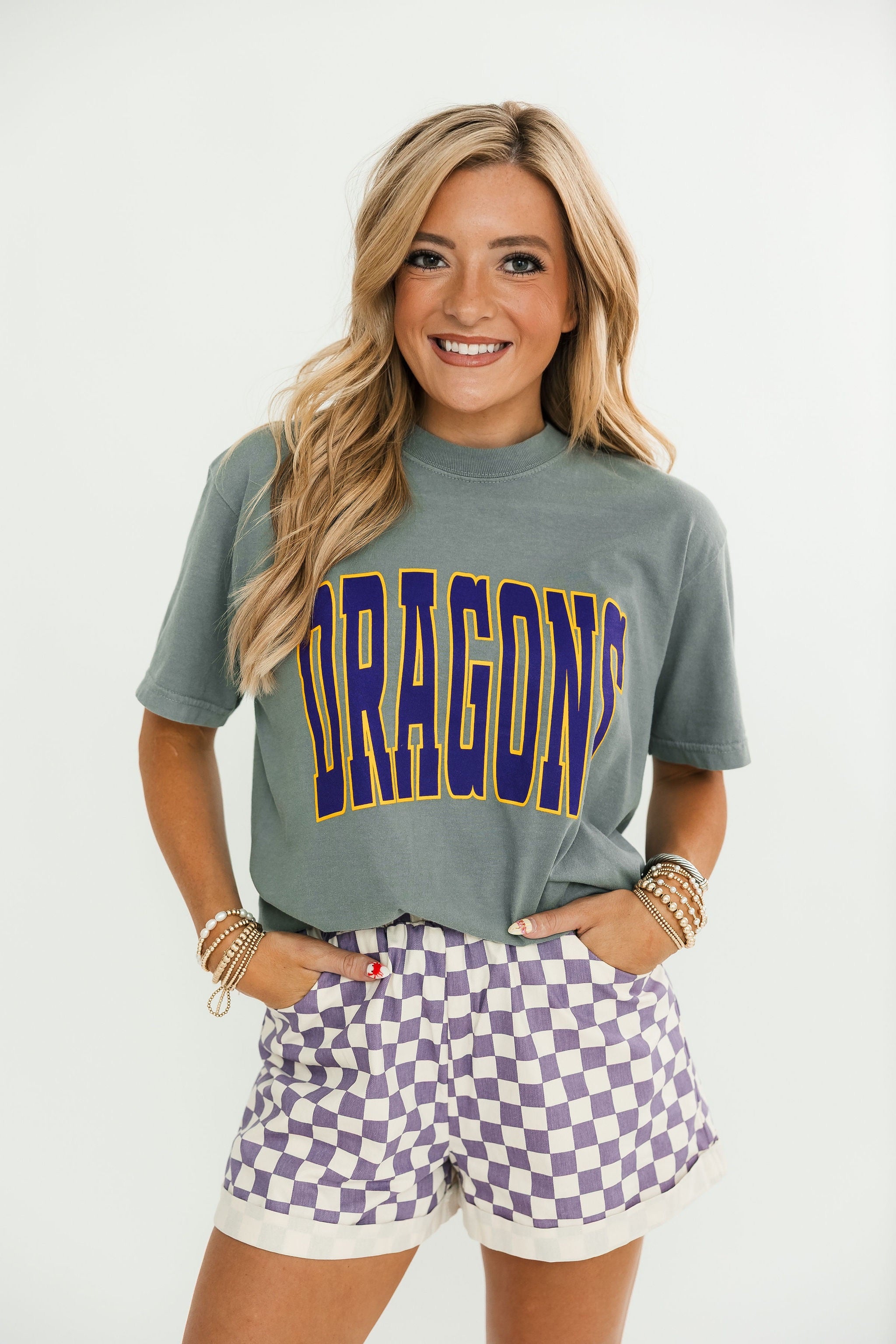 Show your York pride with the Dragons Varsity Tee! This playful tee combines is perfect for cheering on your team or casual days. Comfortable and spirited, it’s a fun way to celebrate school spirit wherever you go. Harli is wearing a small.