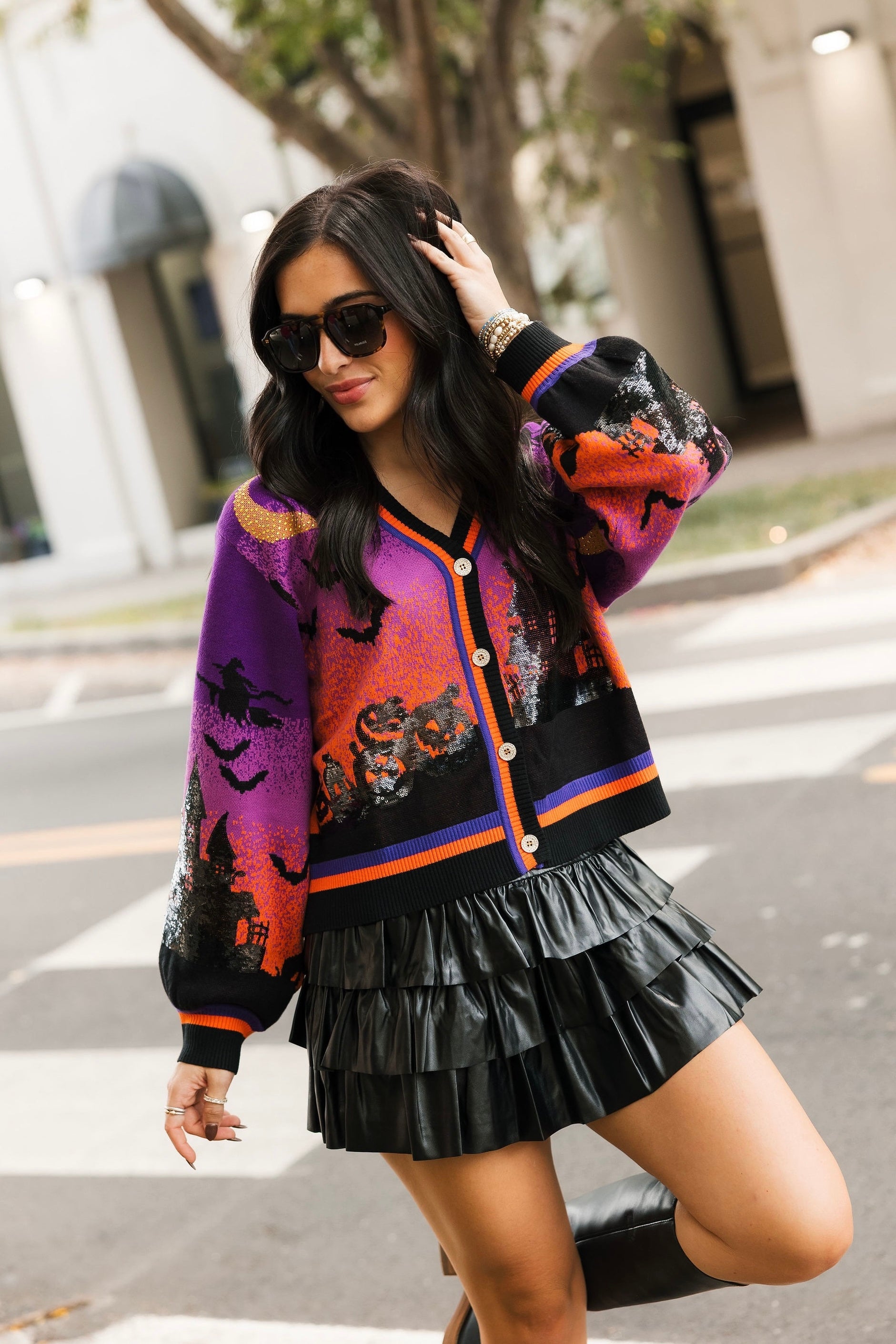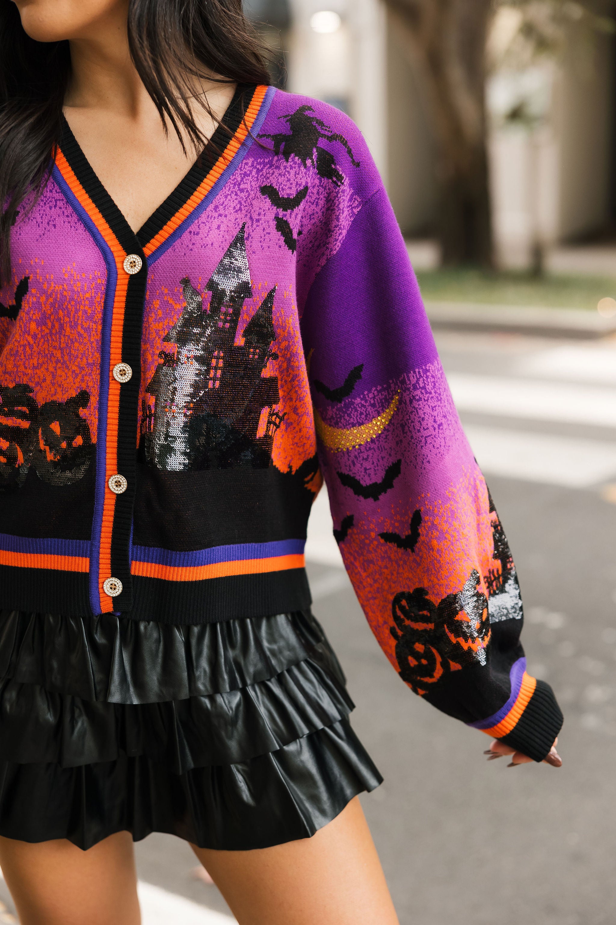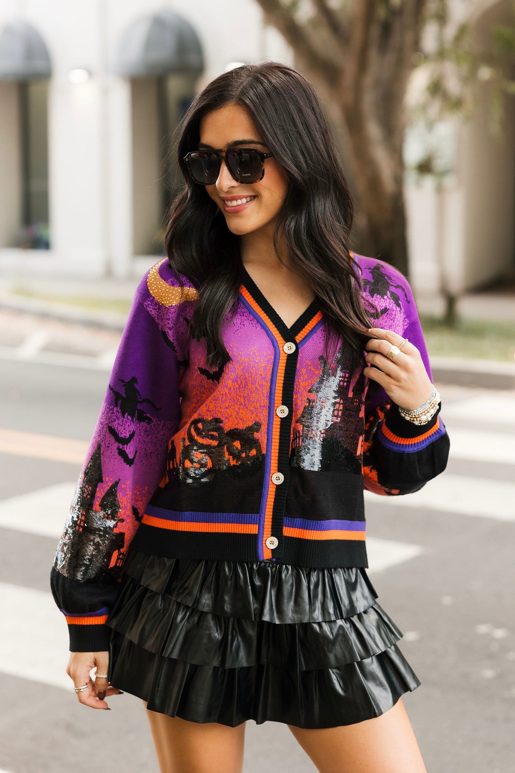 Purple Halloween Scene Cardigan | Queen Of Sparkles
