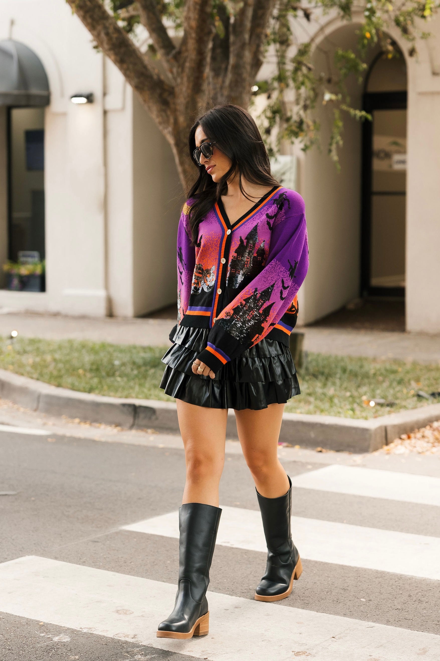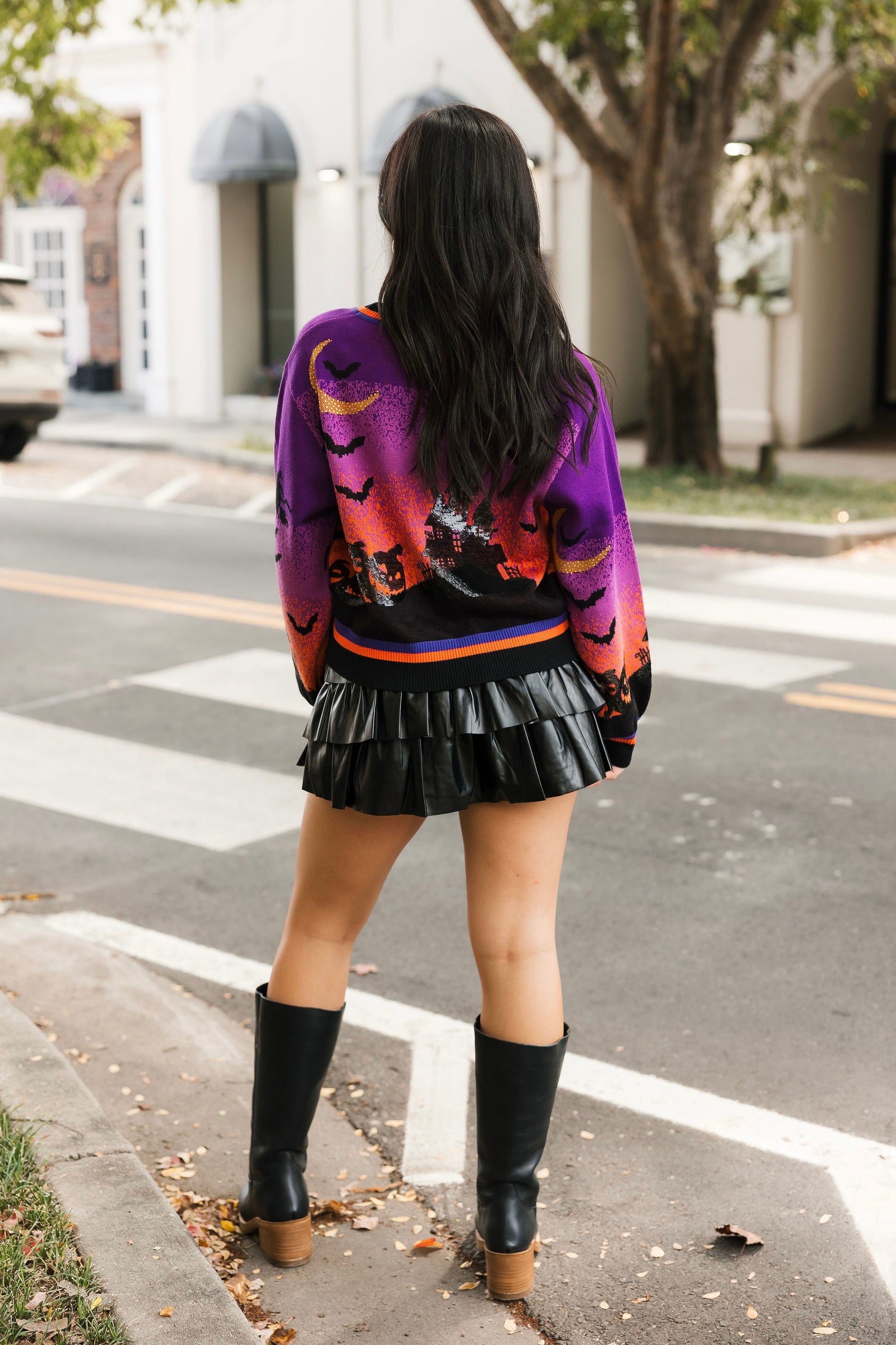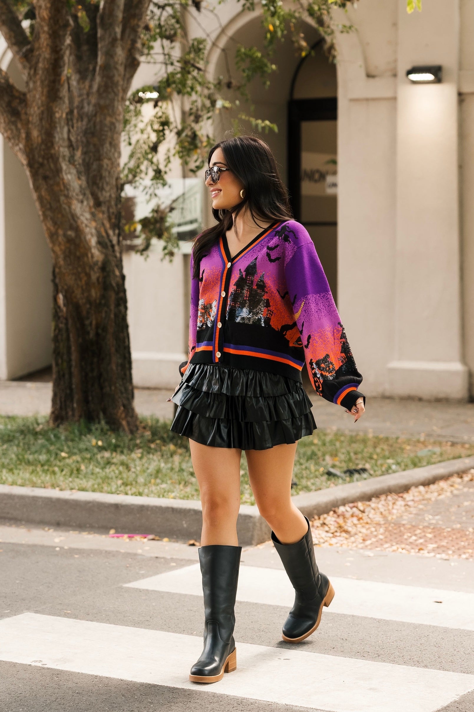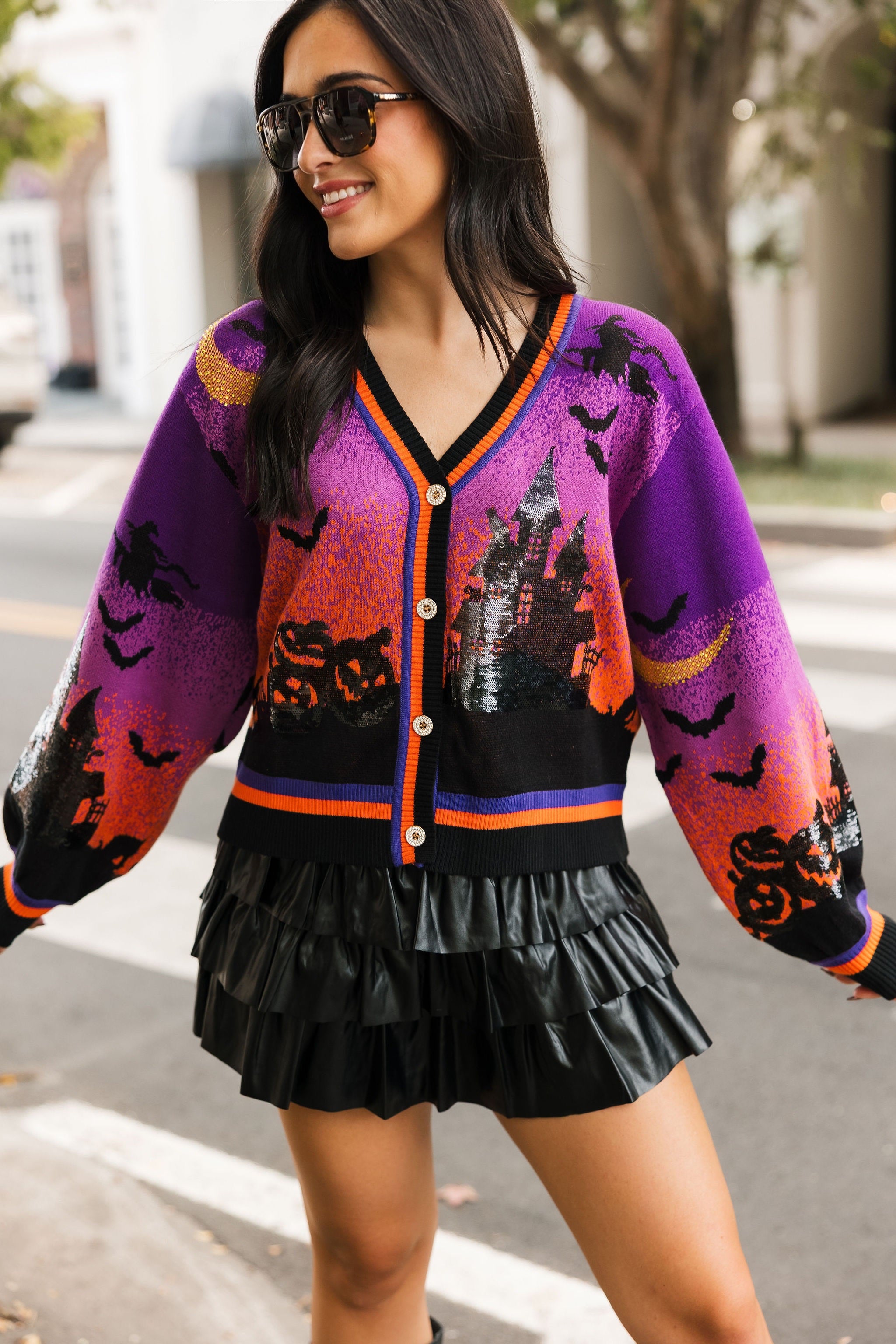 Purple Halloween Scene Cardigan | Queen Of Sparkles