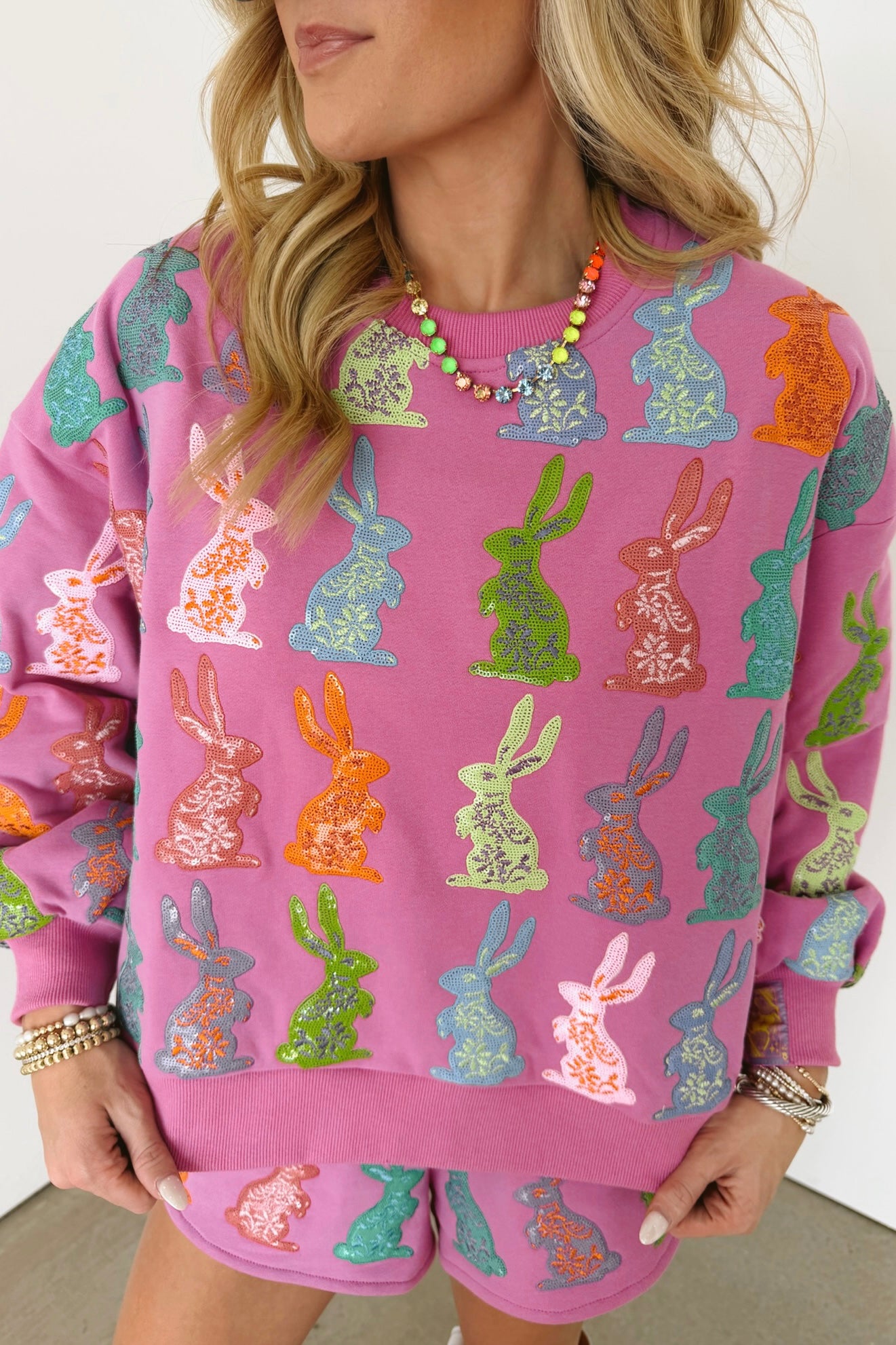 Purple Multi Easter Bunny Sweatshirt | Queen Of Sparkles