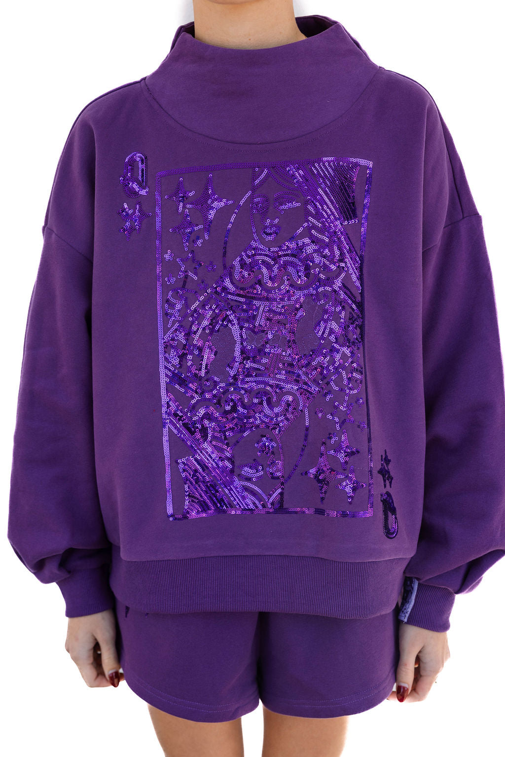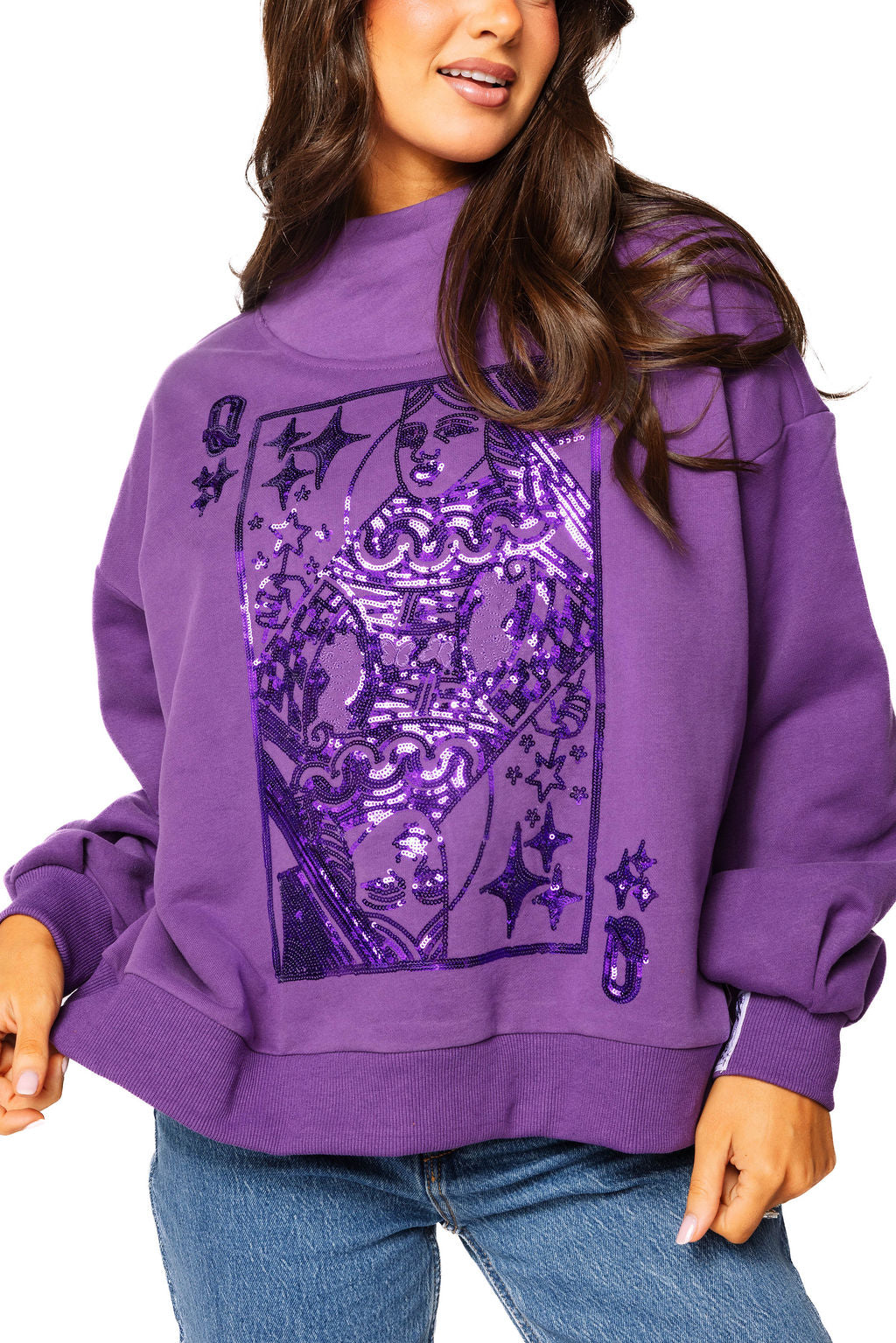 Purple QOS Card Logo Mock Neck Sweatshirt | Queen Of Sparkles