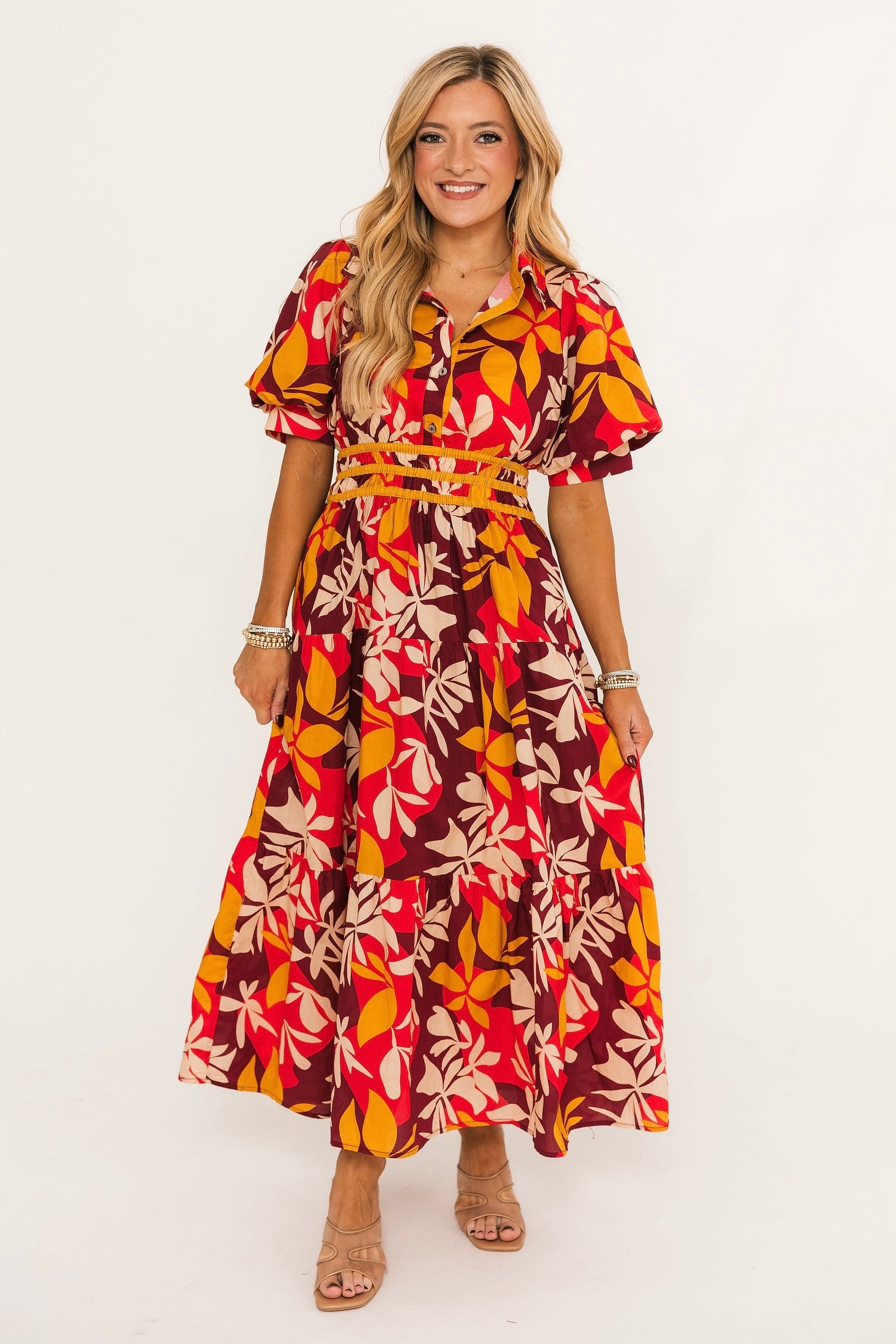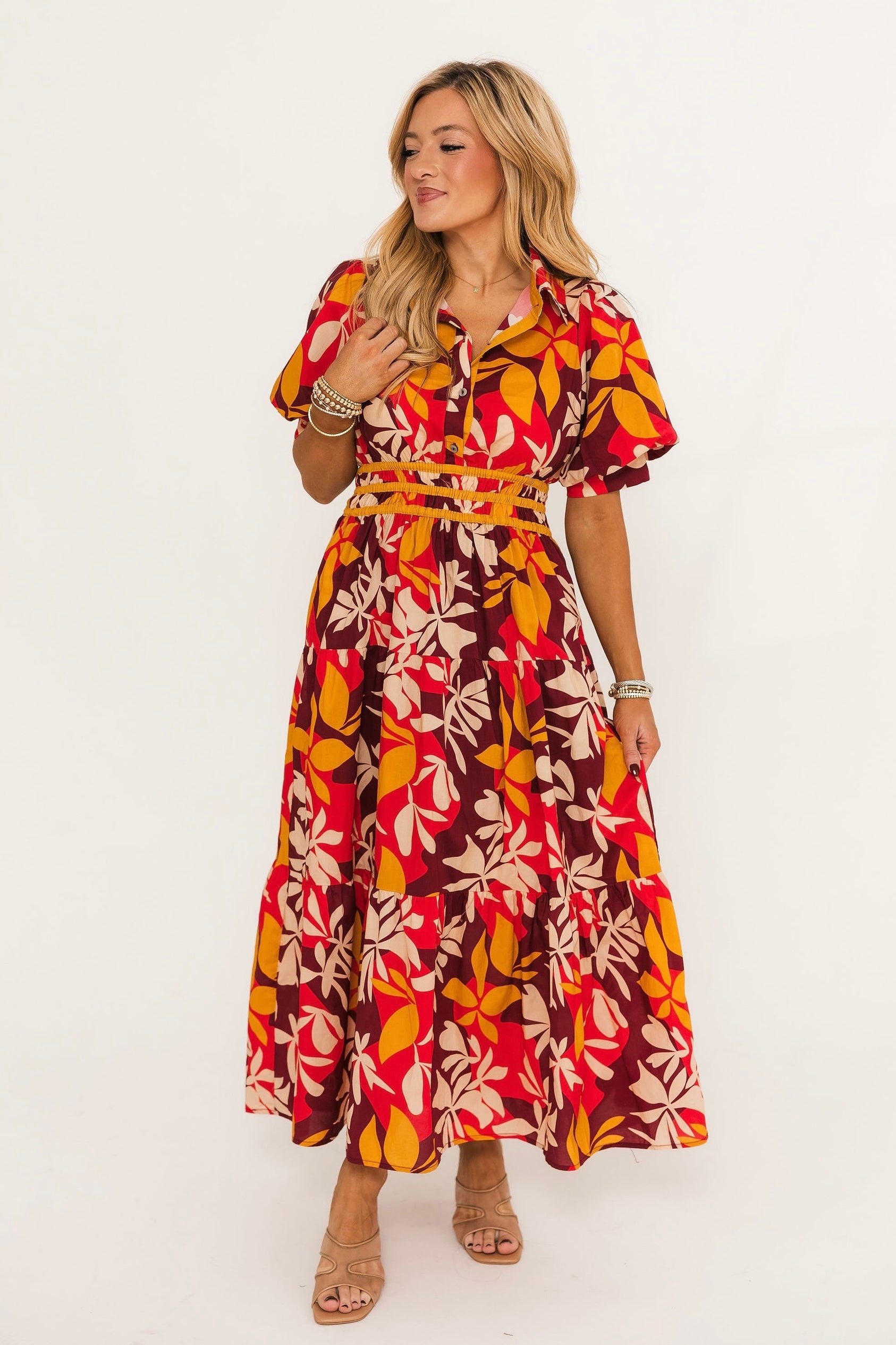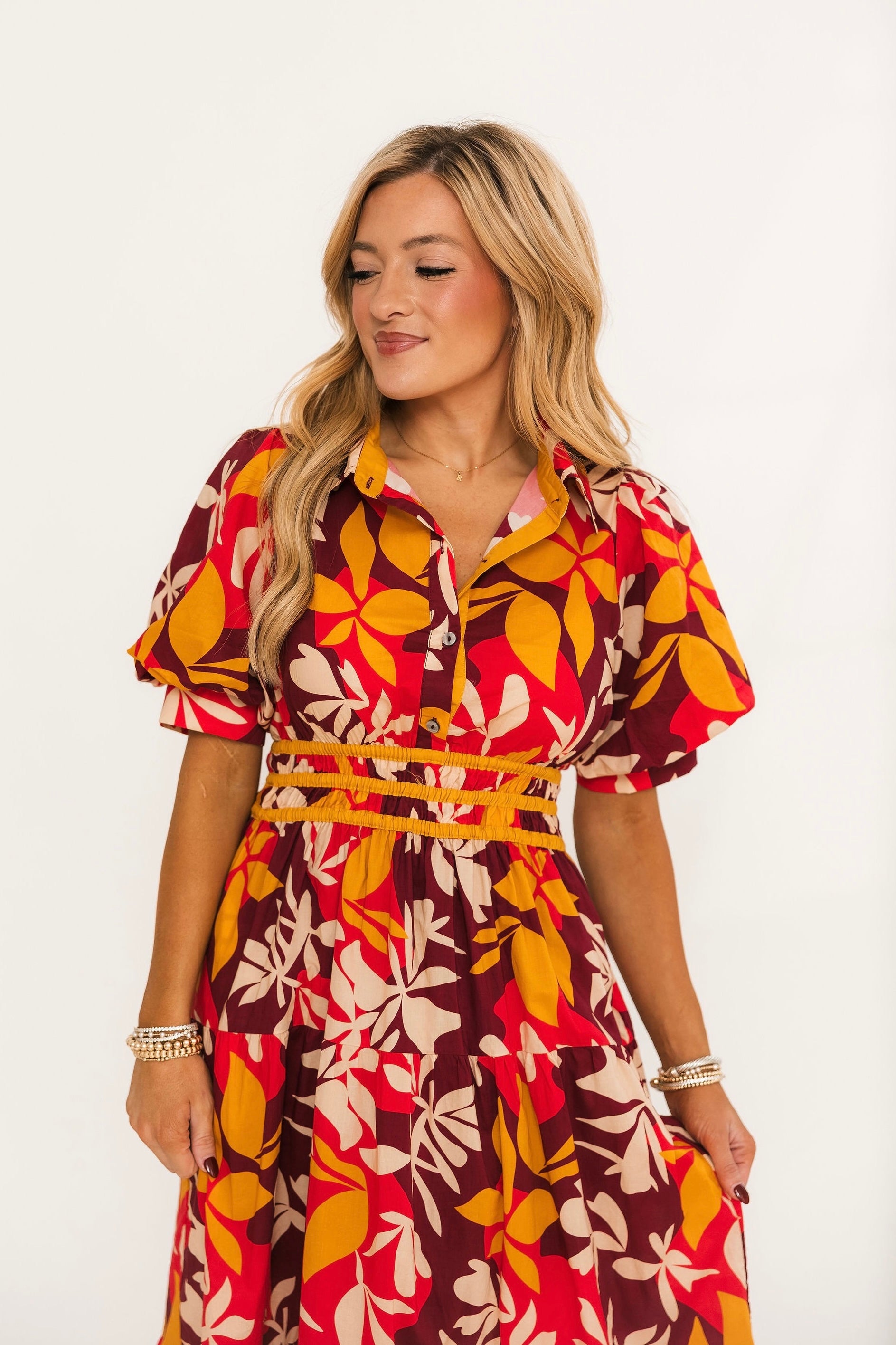 The Radiant Flora Midi Dress in Garnet is your new go-to for effortless elegance. With its rich botanical print, puff sleeves, and flattering A-line fit, this midi is both timeless and versatile. Finished with pockets and a contrast waist, it’s as practical as it is chic. Lexi is wearing a small.