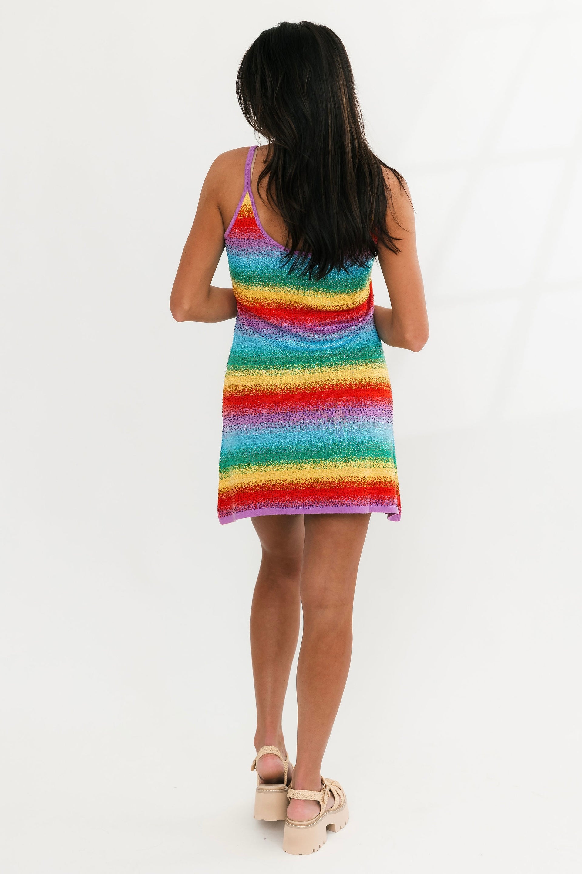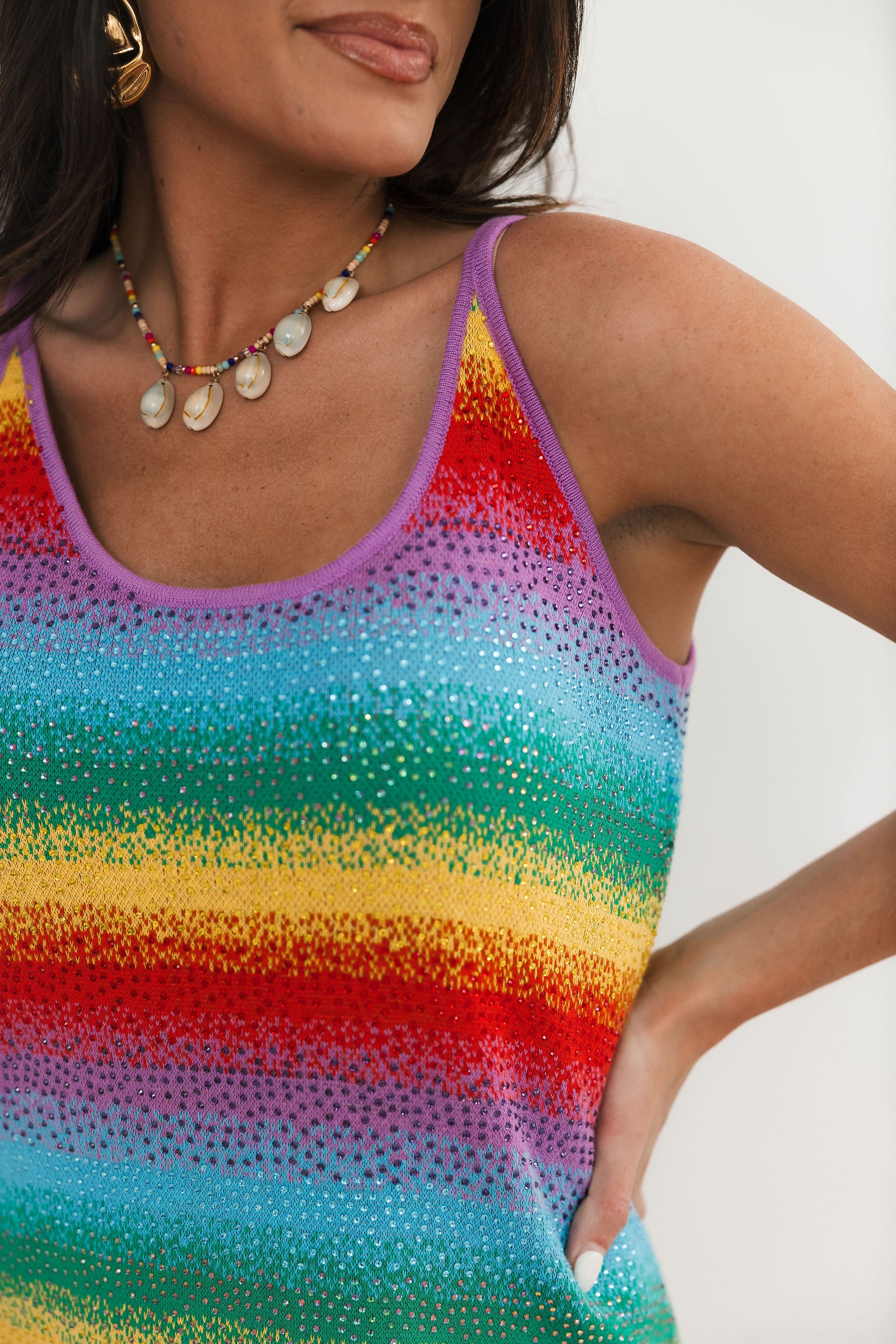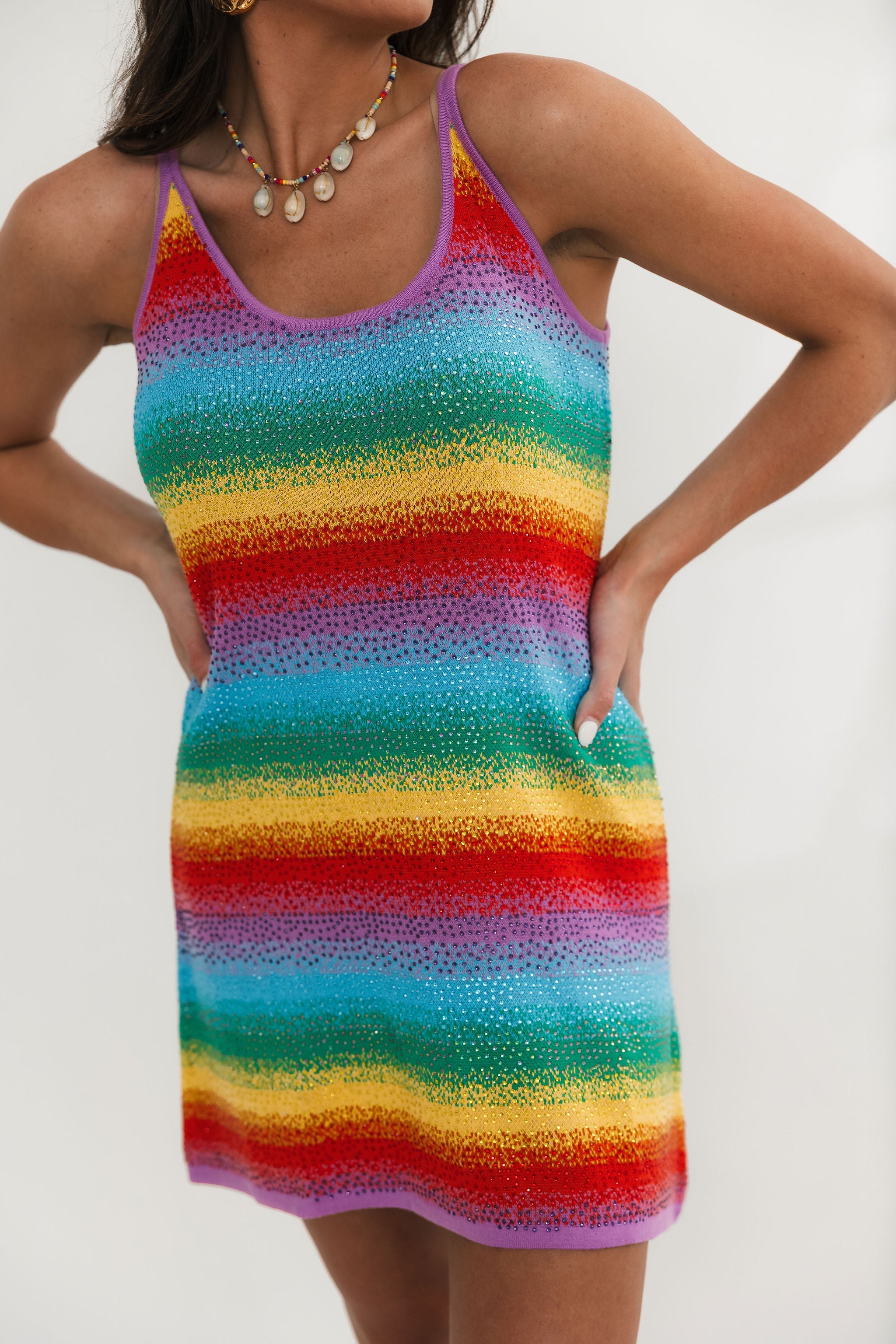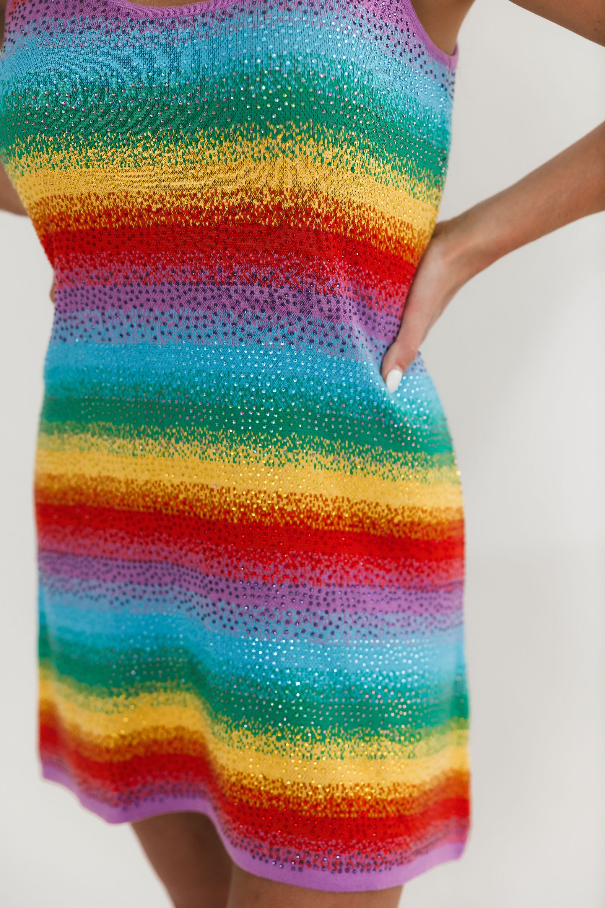 Rainbow Tie Dye Stripe Rhinestone Tank Dress | Queen Of Sparkles