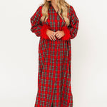 Red & Green Plaid Feather Sleeve Button Up Midi Dress | Queen Of Sparkles