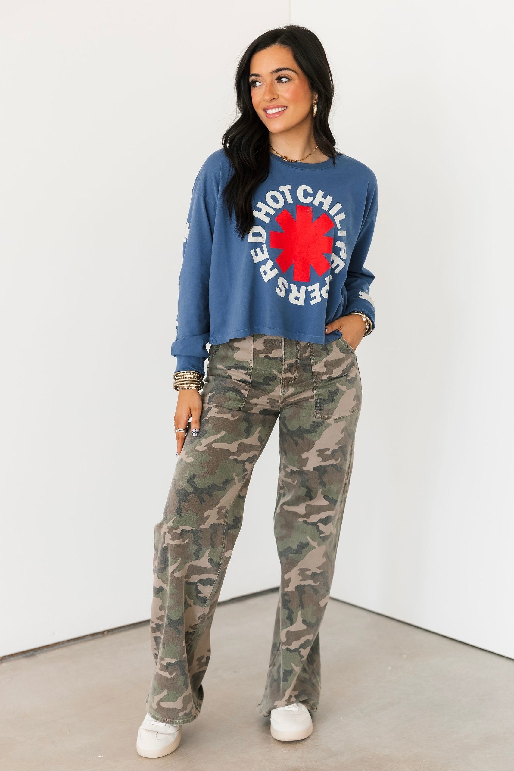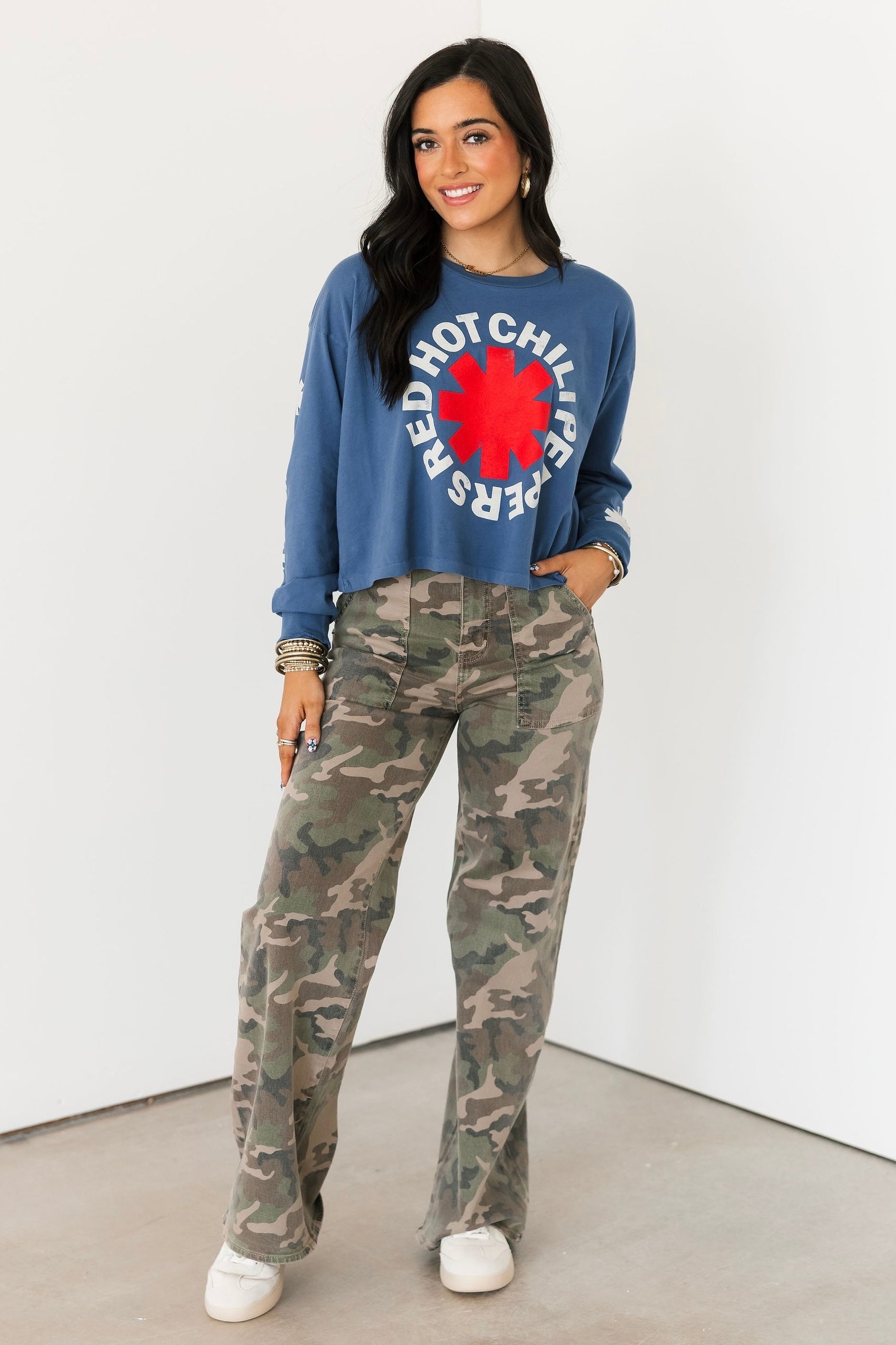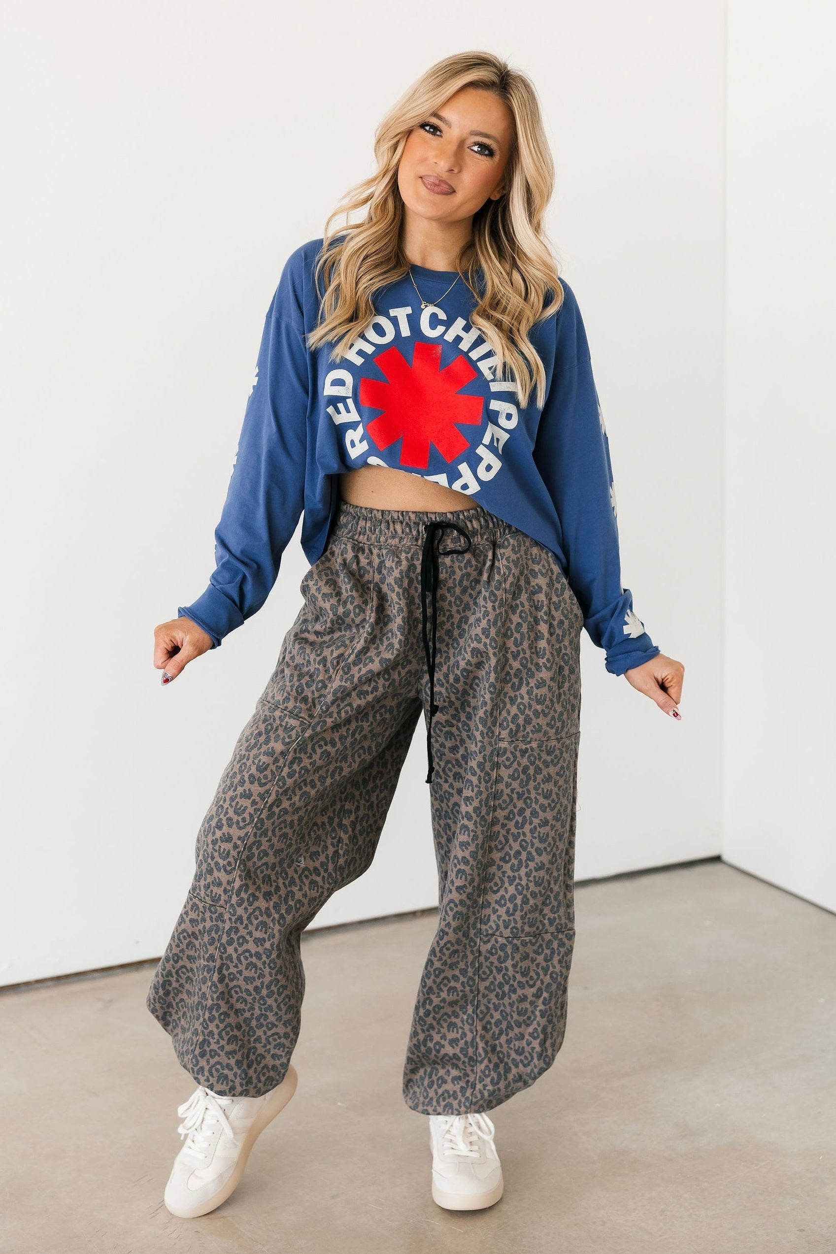 The Daydreamer Red Hot Chili Peppers Asteriskis Meet & Greet Long Sleeve features a relaxed fit with a classic crew neckline and long sleeves. Designed with Daydreamer’s signature soft fabrication, it has that perfectly worn-in feel that makes it an instant go-to for casual days, layering seasons, and year-round wear. Lexi and Sage are both wearing an xs.