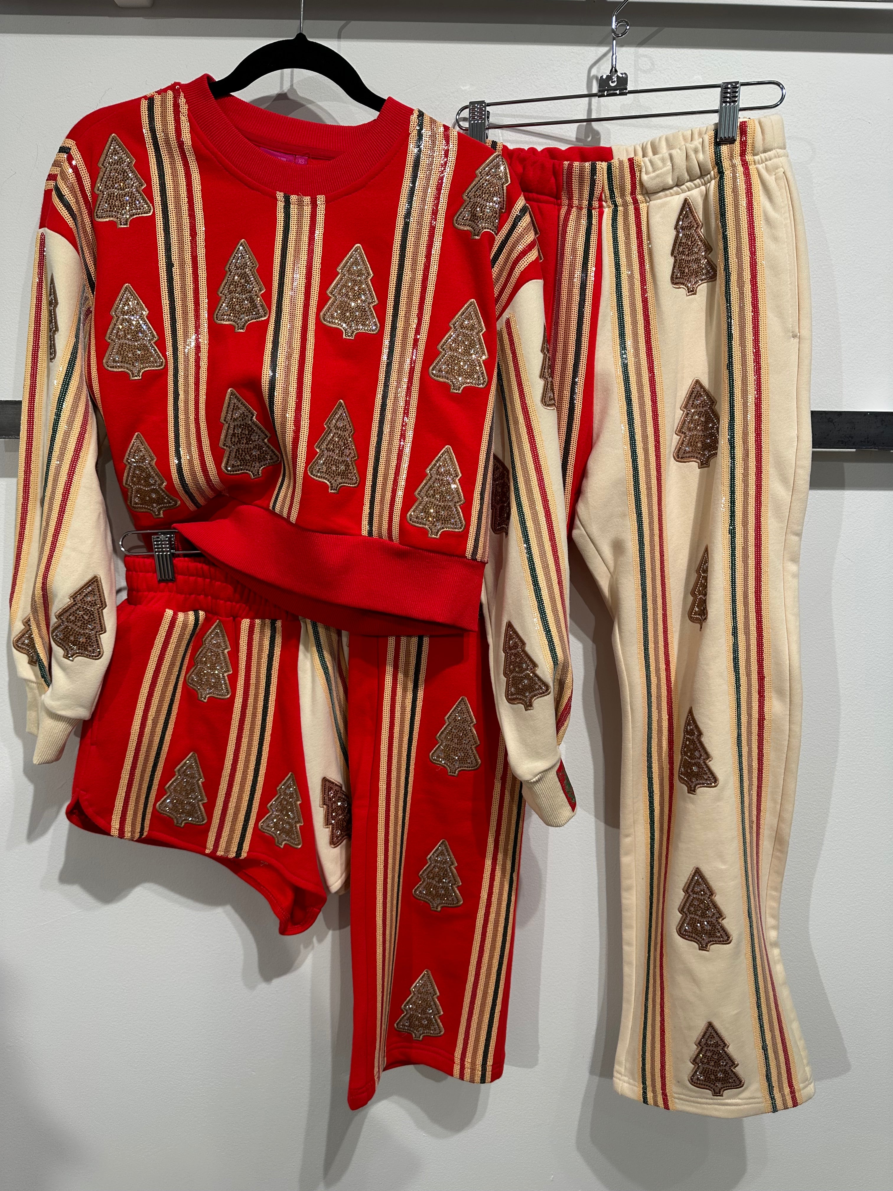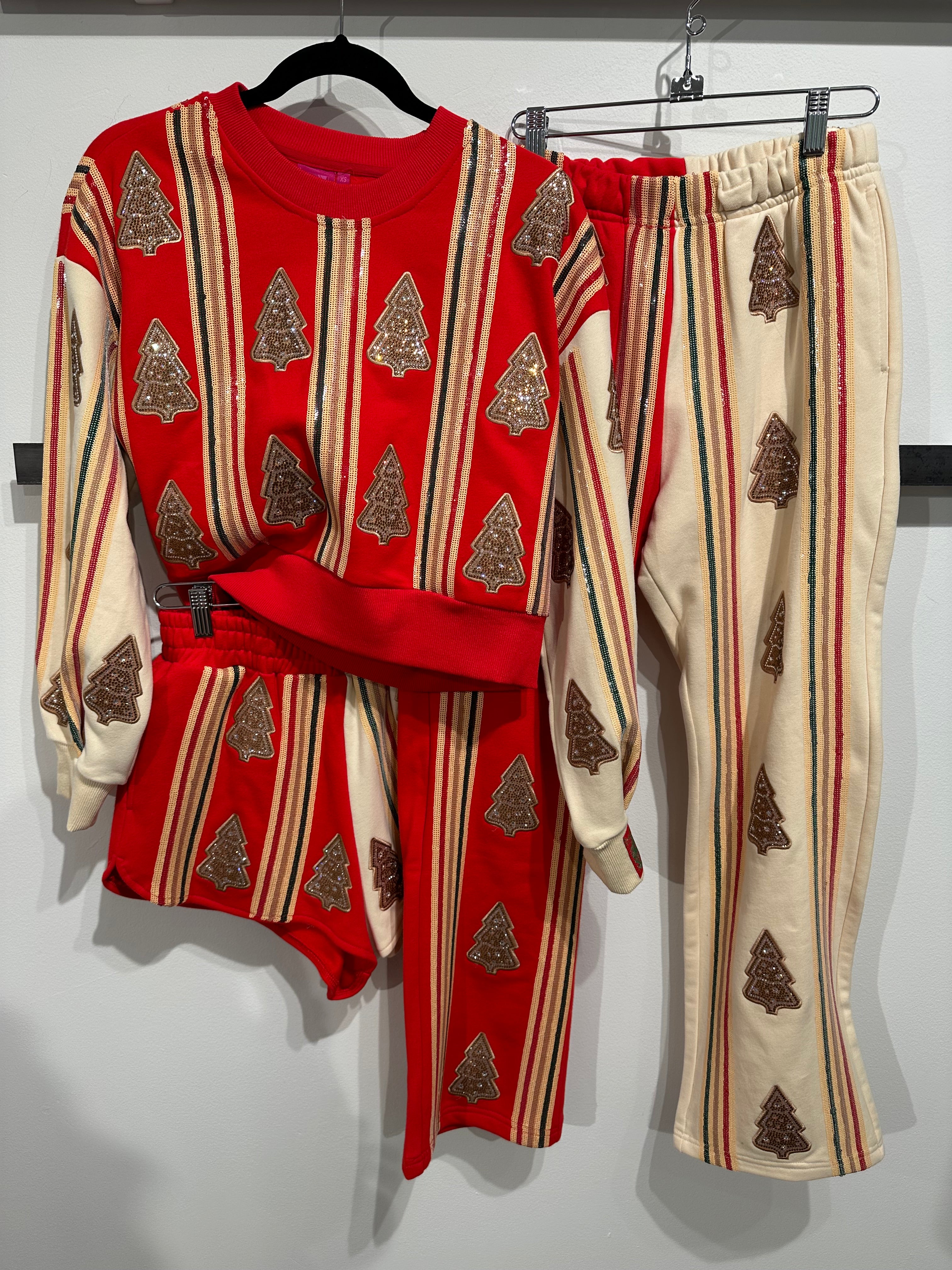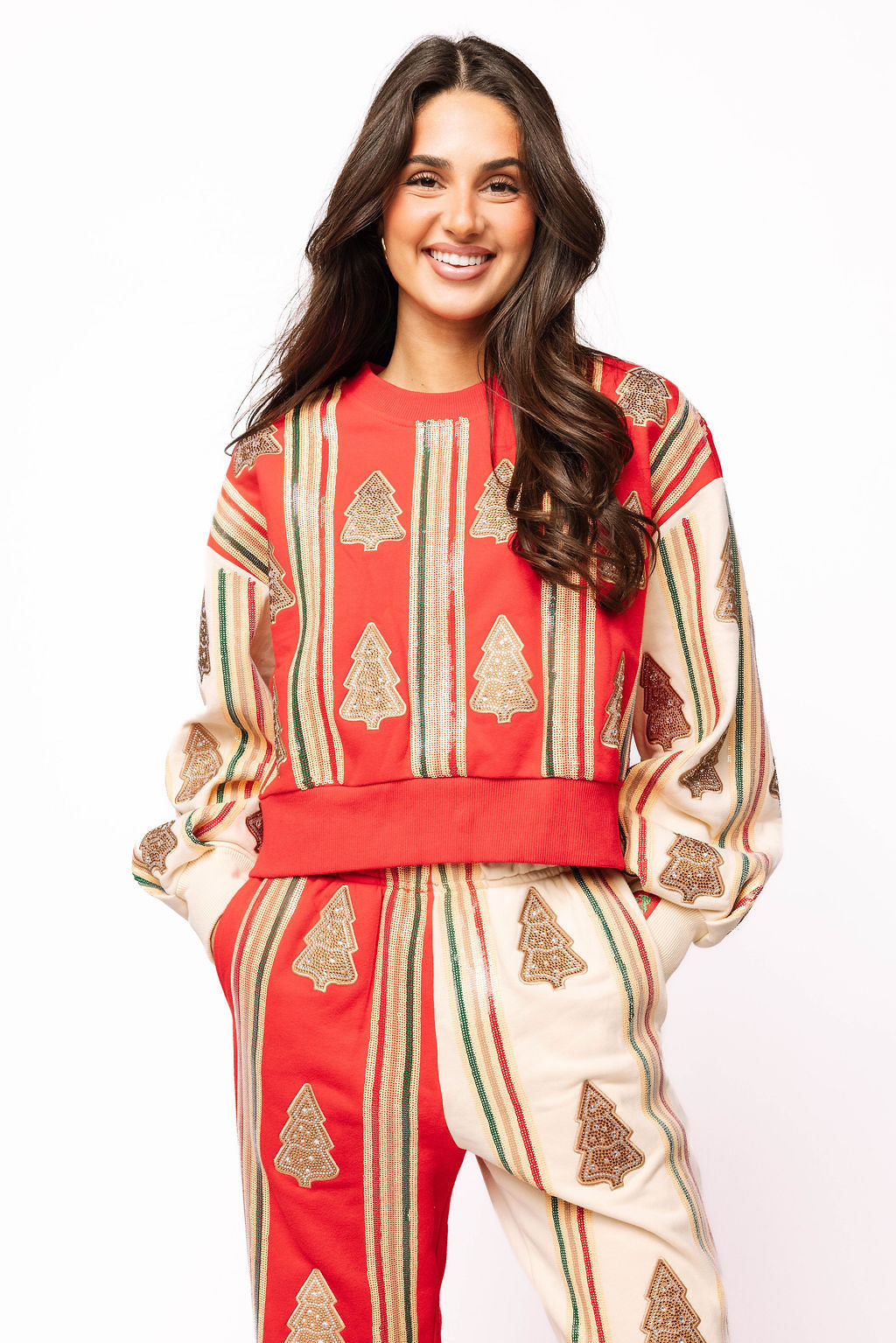 Red & Ivory Striped Christmas Cookie Sweatshirt | Queen Of Sparkles