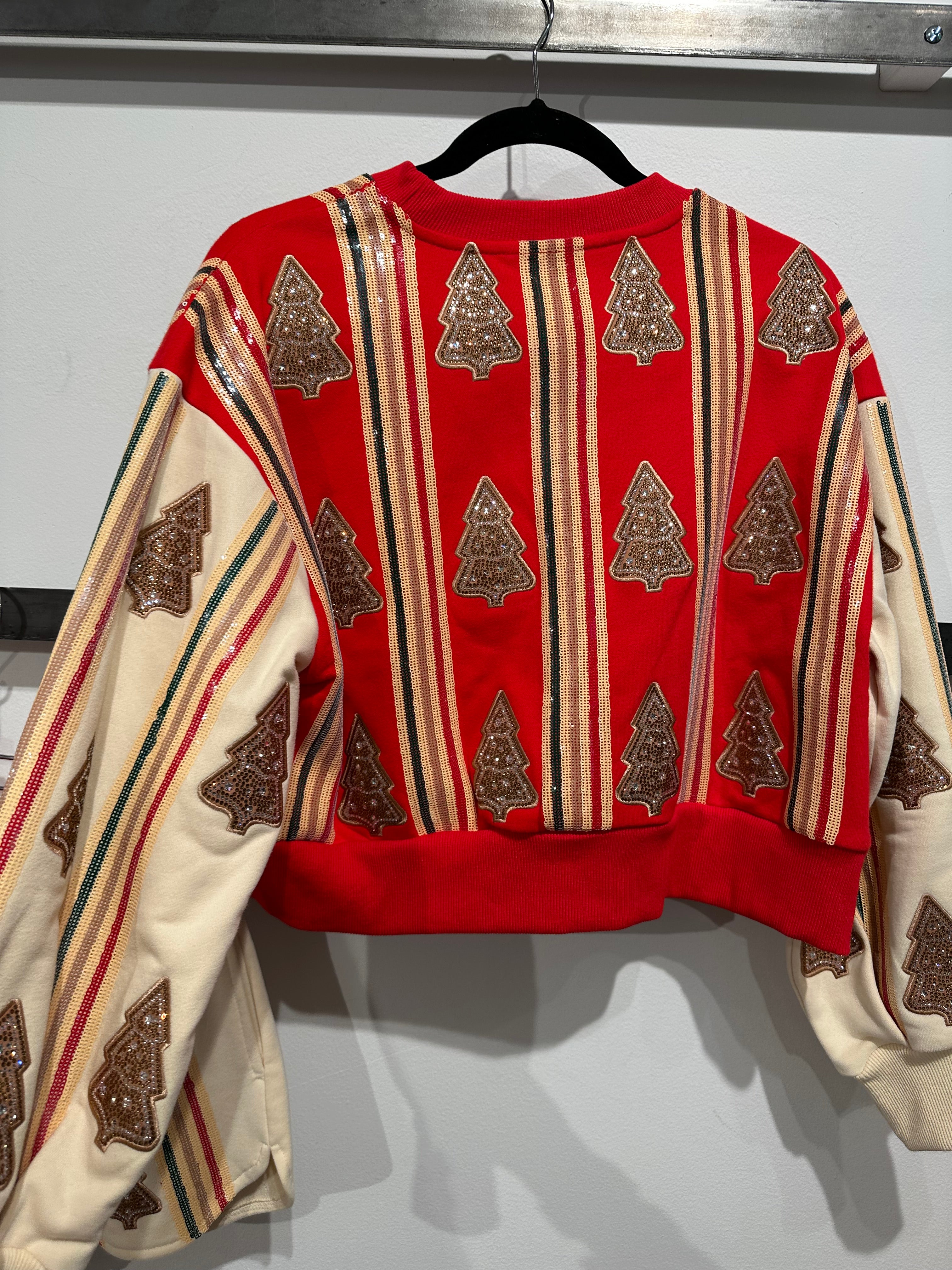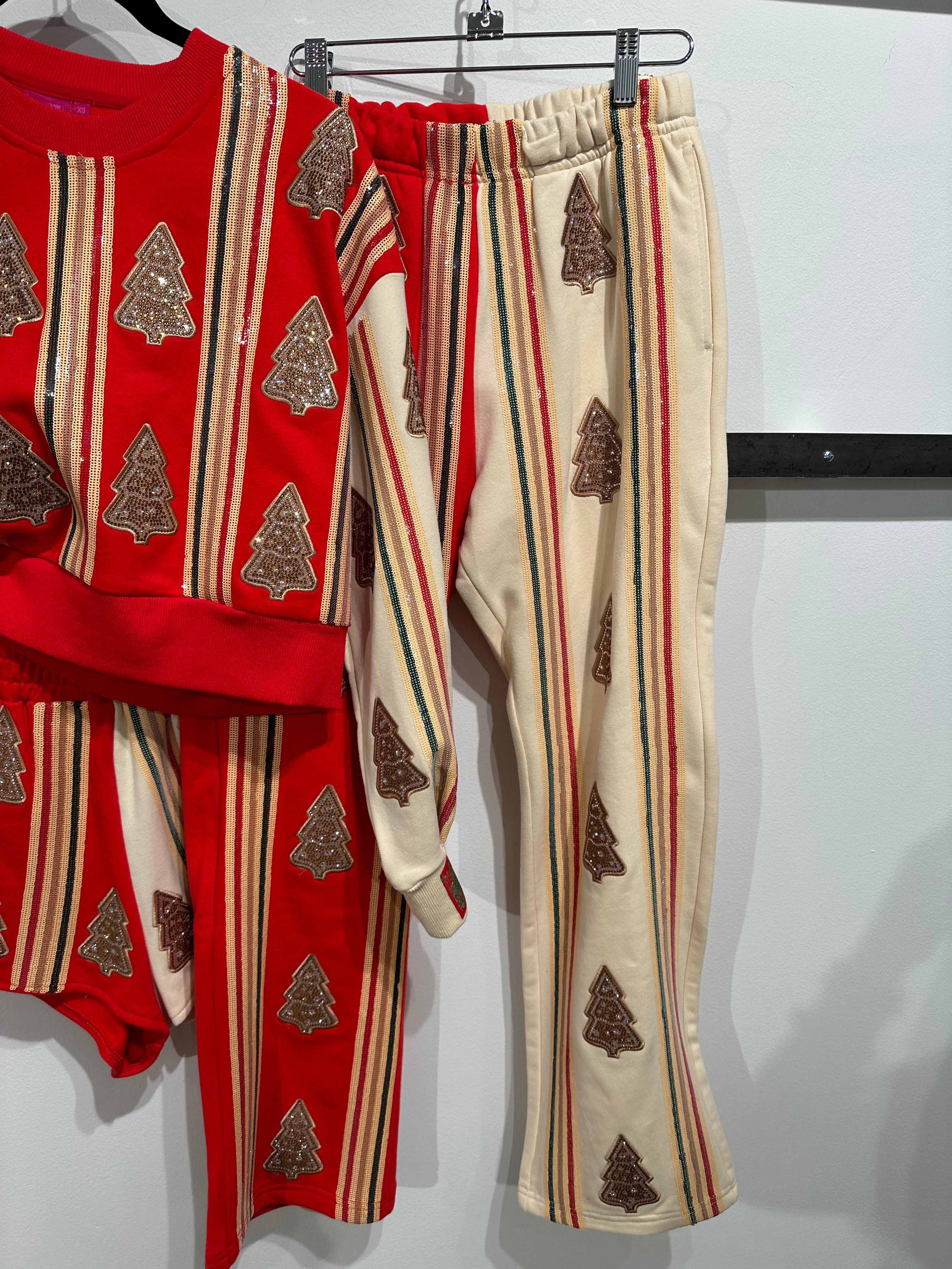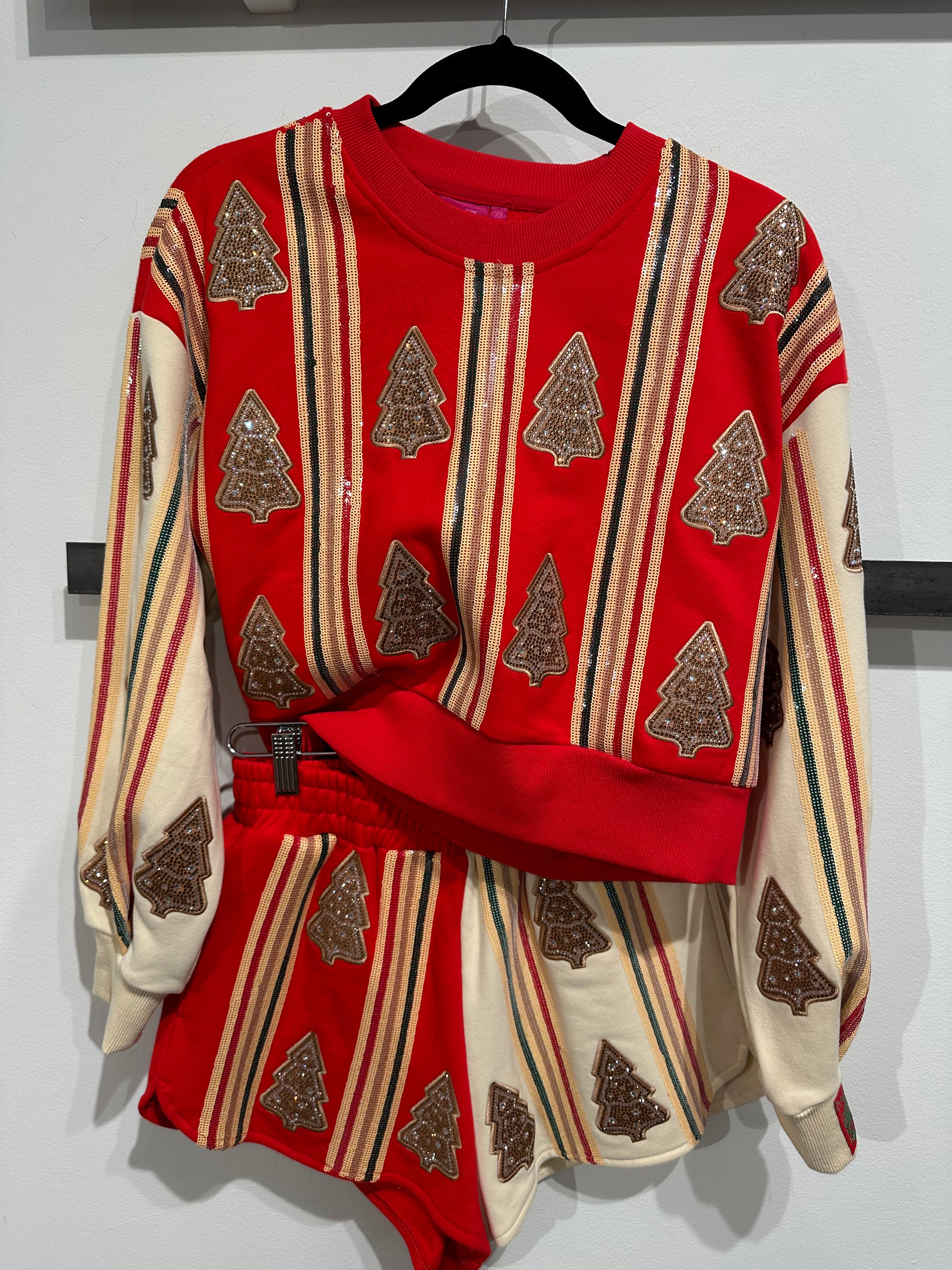 Red & Ivory Striped Christmas Cookie Sweatshirt | Queen Of Sparkles