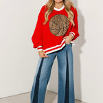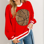 - Why We ❤ It: Bold, sporty, and sparkling—this jeweled basketball sweatshirt brings a fun pop of red to your game day look.
