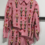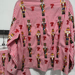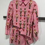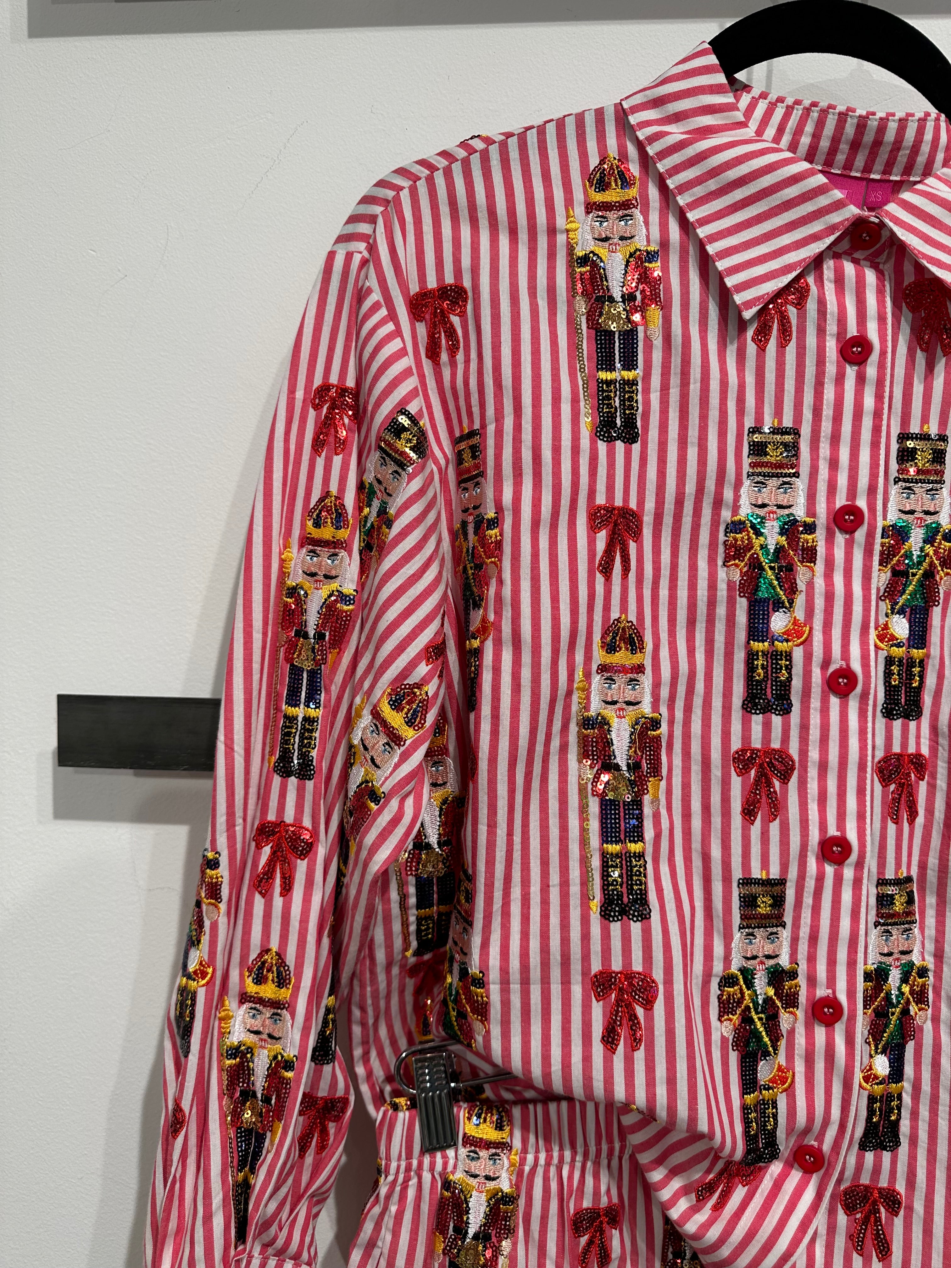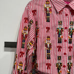 Queen Of Sparkles Red Stripe Scattered Nutcracker & Bow Cotton Button Up Top