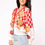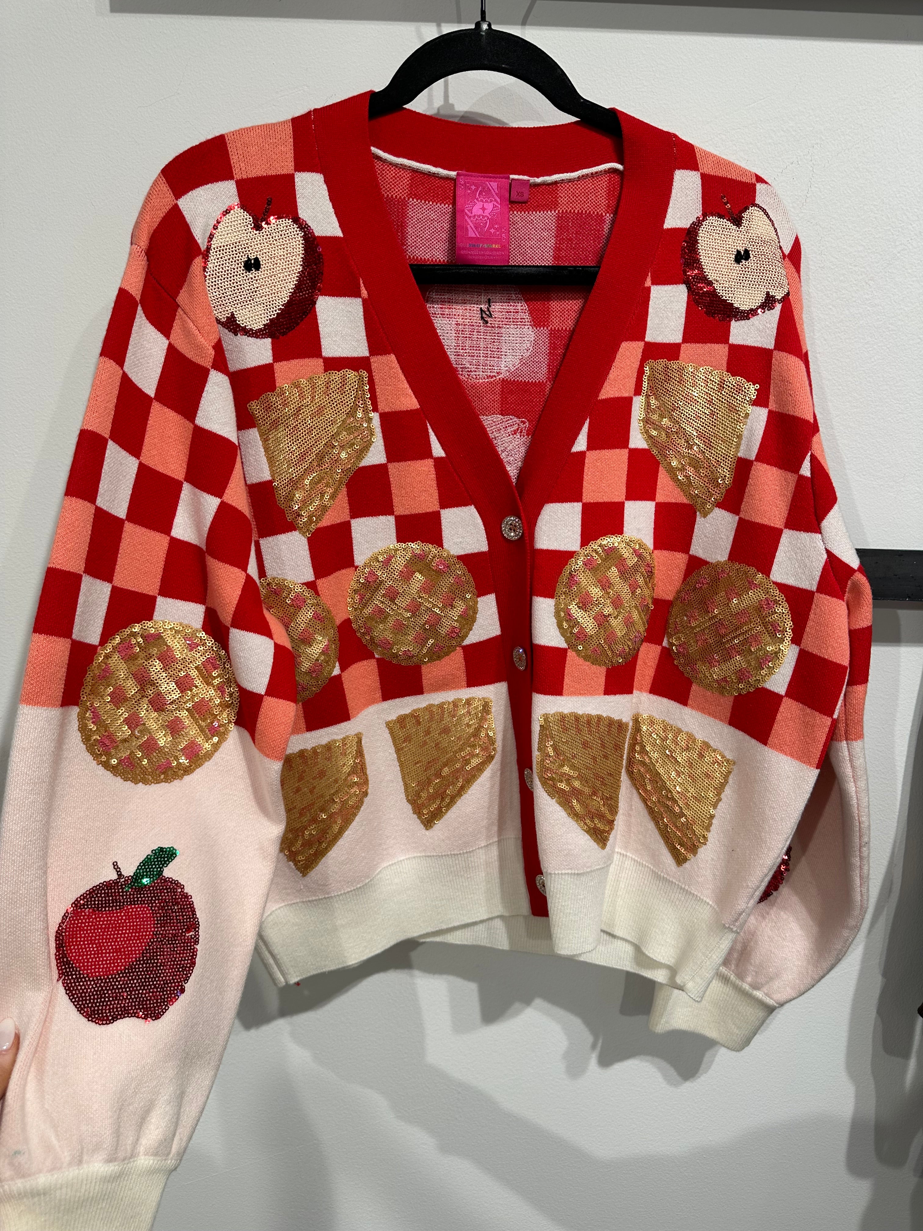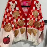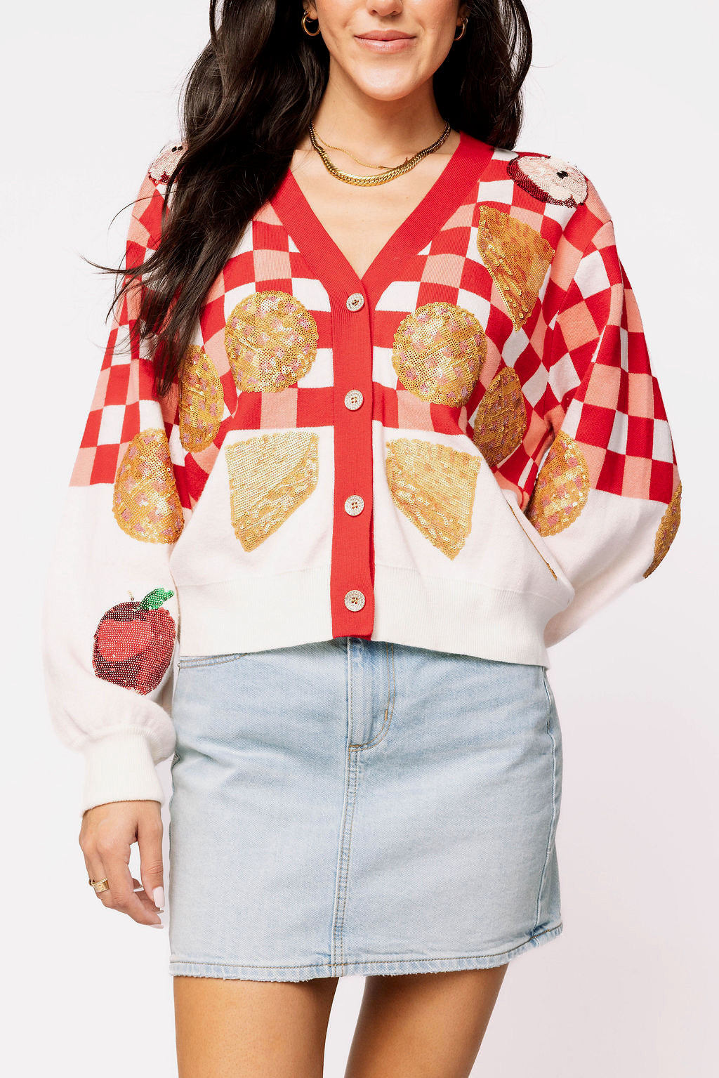 Queen Of Sparkles Red & White Checkered Apple Pie Button Up Cardigan