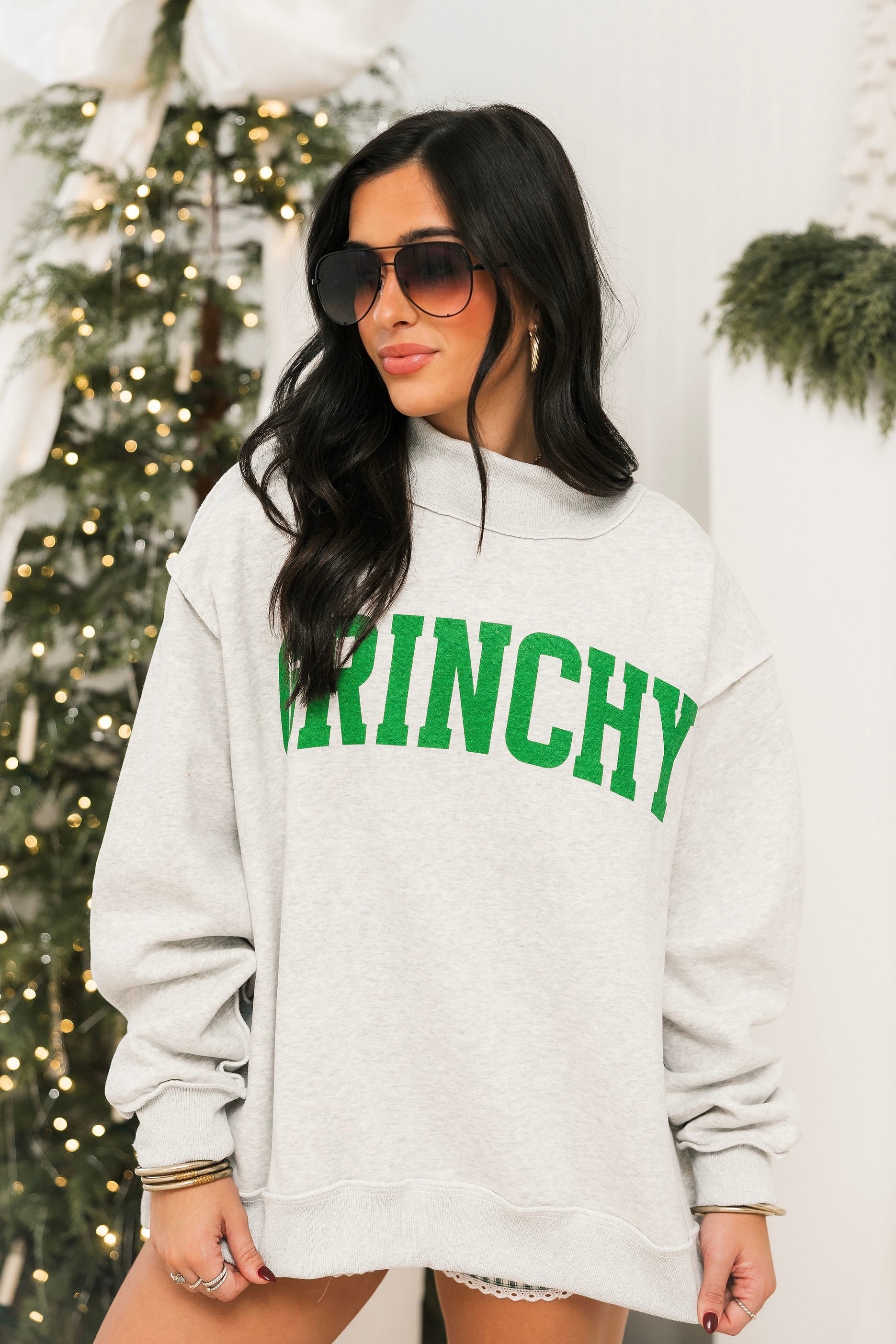 Get twice the cozy with the Reversible Mock Neck Pullover in Grinchy Merry. This soft, relaxed-fit pullover lets you switch up your look with ease — festive on one side, classic on the other — while keeping you warm and comfy all season long. Sage is wearing a S/M.