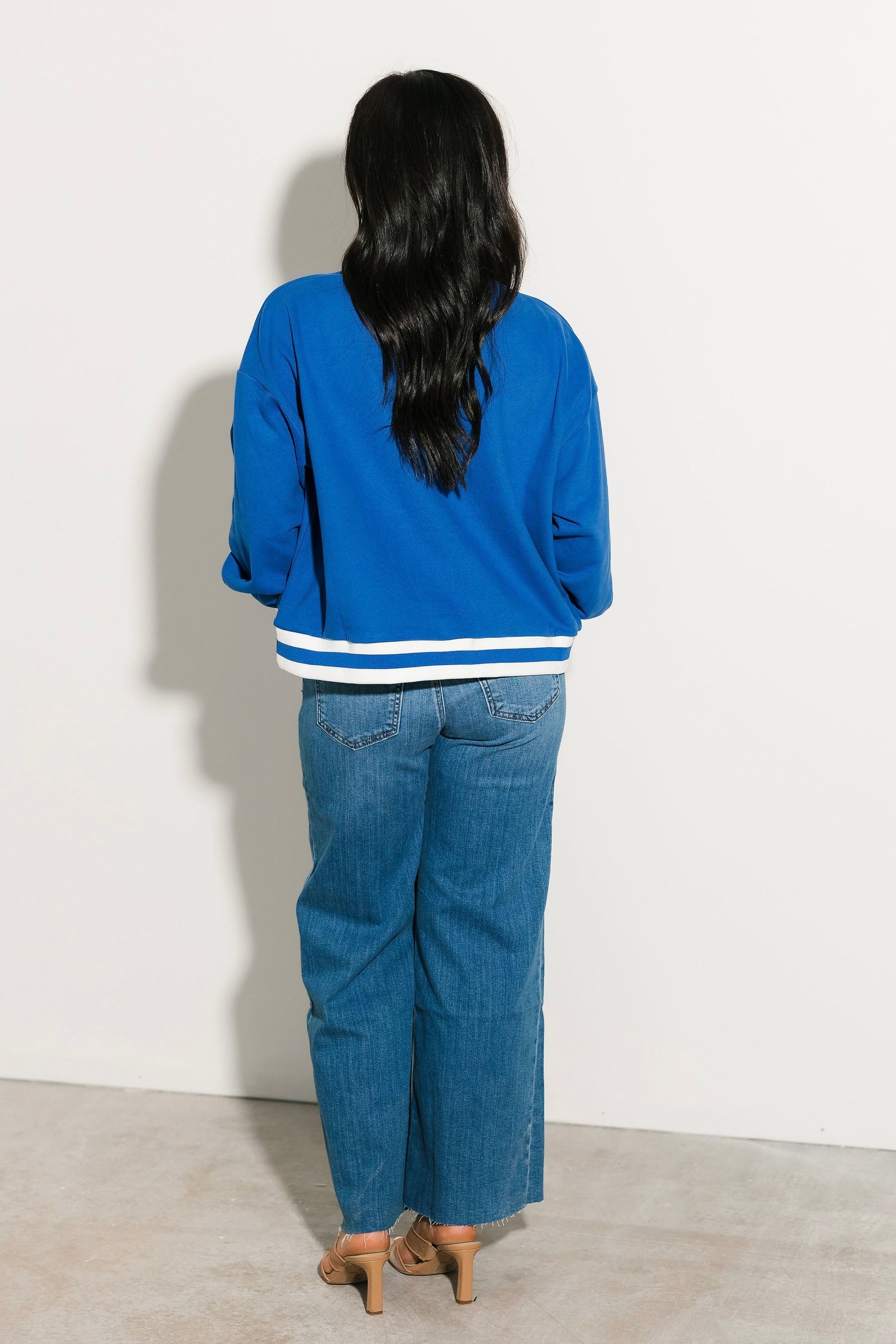 Royal Blue Jeweled Basketball Sweatshirt | Queen Of Sparkles
