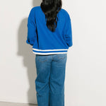 The Queen Of Sparkles Royal Blue Jeweled Basketball Sweatshirt is the ultimate way to elevate your gameday look. Designed with a relaxed fit, this crewneck sweatshirt pairs cozy comfort with eye-catching detail. The jeweled basketball graphic brings a glam twist to classic sporty style, making it just as fun for cheering on your team as it is for casual everyday wear. Style it with denim and sneakers for an easy laid-back look, or dress it up with leather pants and booties for a game night outfit that truly sparkles. Sage is wearing an XS.