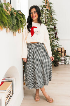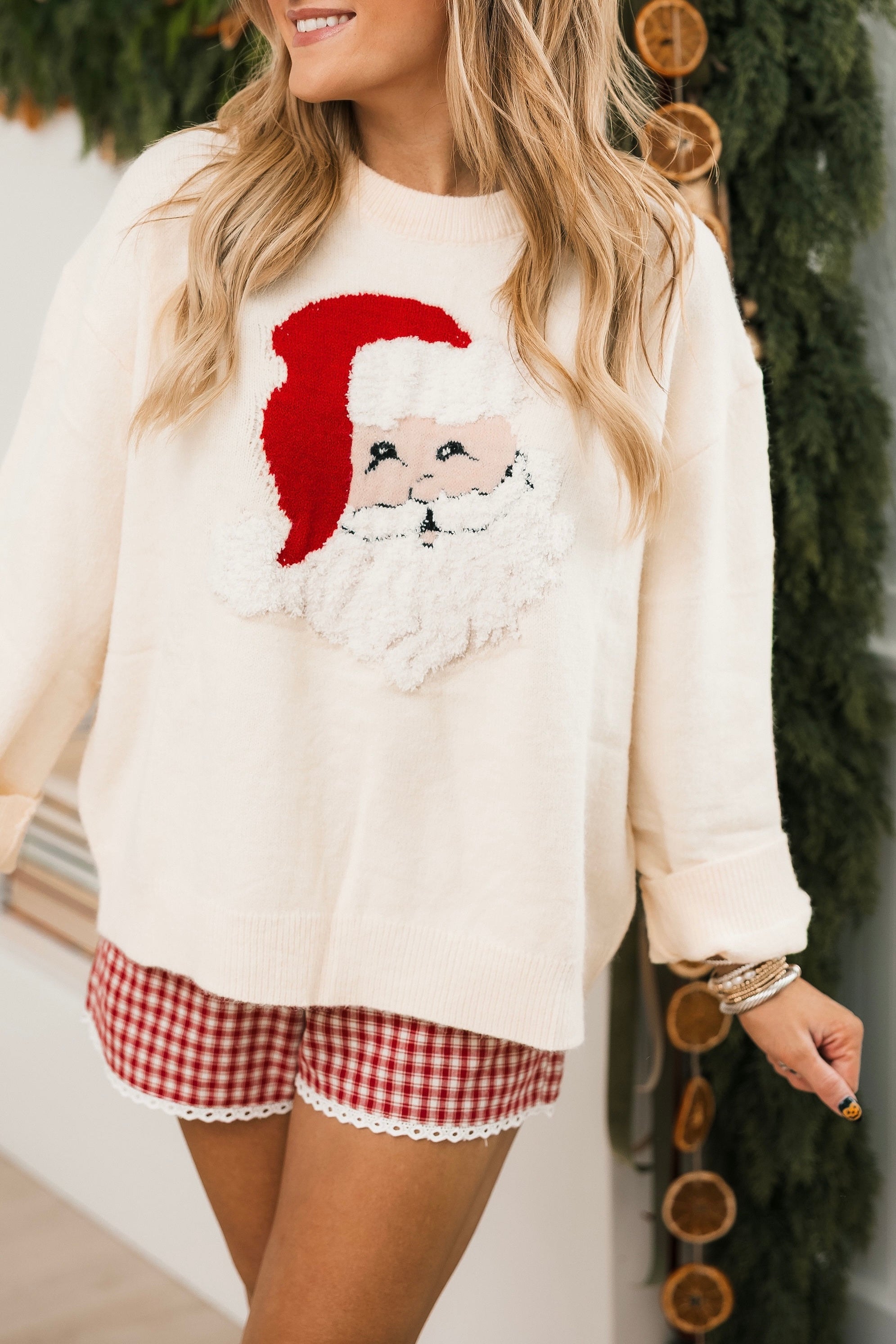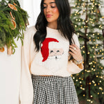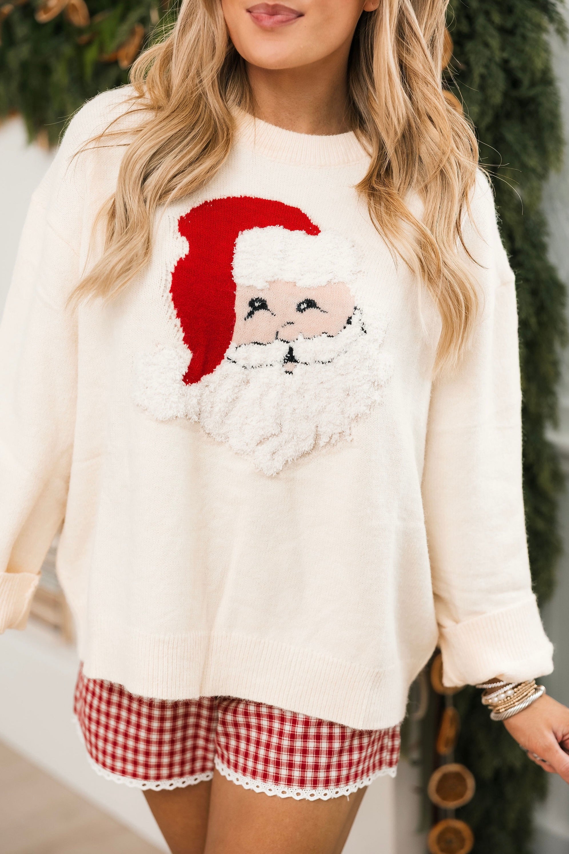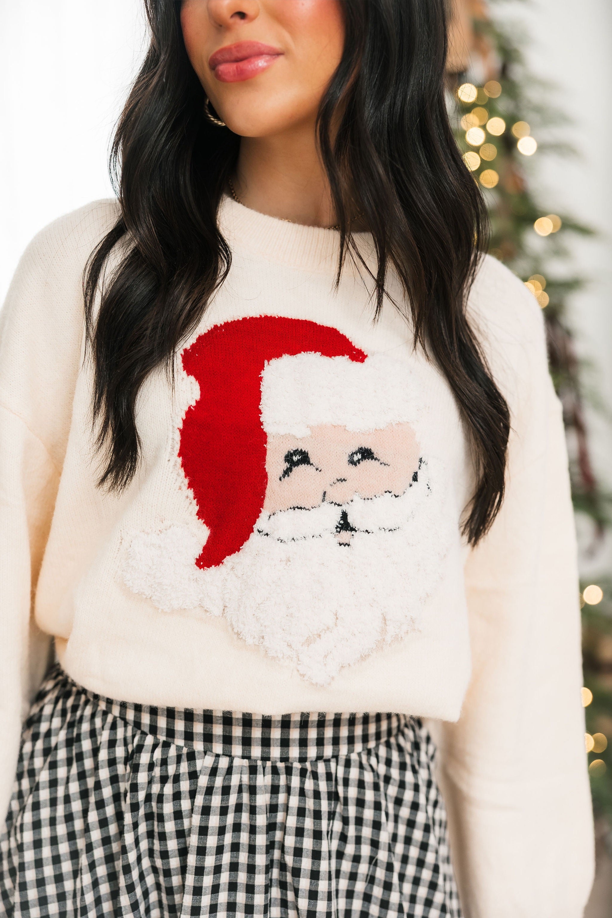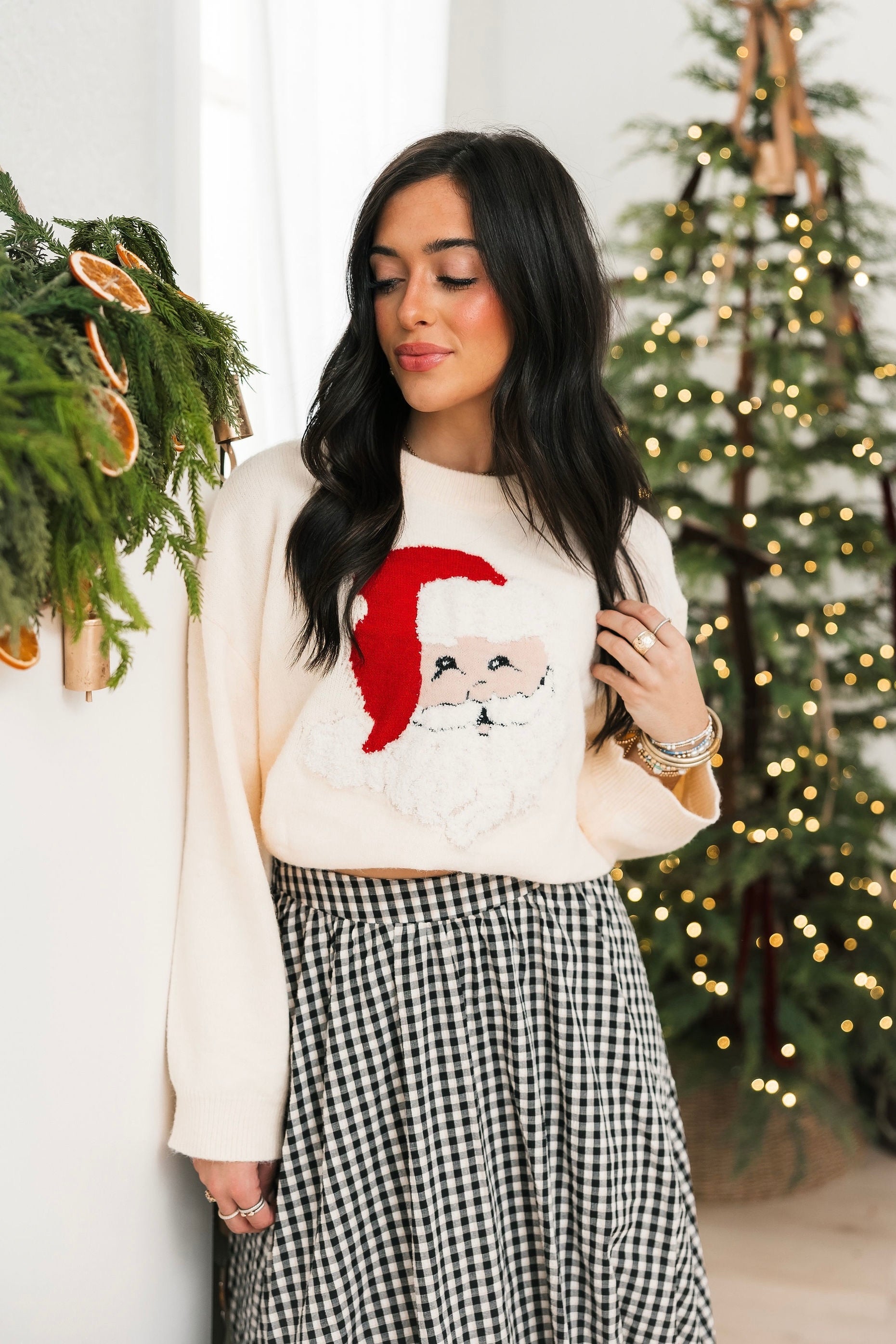 The Santa Pullover Sweater brings a touch of understated holiday spirit to your winter wardrobe. Designed with a relaxed fit and classic round neckline, this soft knit is easy to dress up or down for any occasion. Pair it with denim for a cozy everyday look or style it with a skirt and boots for a polished seasonal outfit. Sage and Lexi both wear a small.