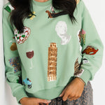 - Why We ❤ It: Oversized, cozy, and full of playful charm! This sweatshirt is covered in scattered Italy-themed icons, making it fun to style with your favorite jeans or leggings.