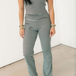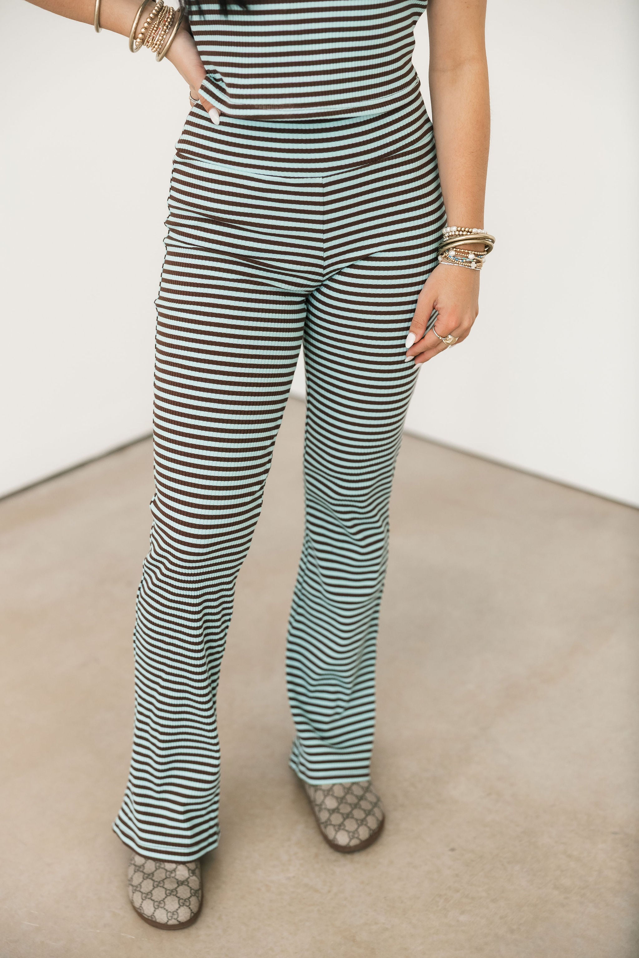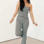 Bold, coordinated, and effortlessly chic — the Shelly Stripe Set in Blue Brown makes a statement while keeping things modern and wearable. Featuring a fitted, strapless tube top and high-waisted flare leg pants, this set highlights your silhouette while offering a streamlined, boutique-ready look. Perfect for dressing up with heels or keeping it casual with sneakers, it’s a versatile, standout outfit for any occasion. Sage is wearing a small. 💙🤎✨