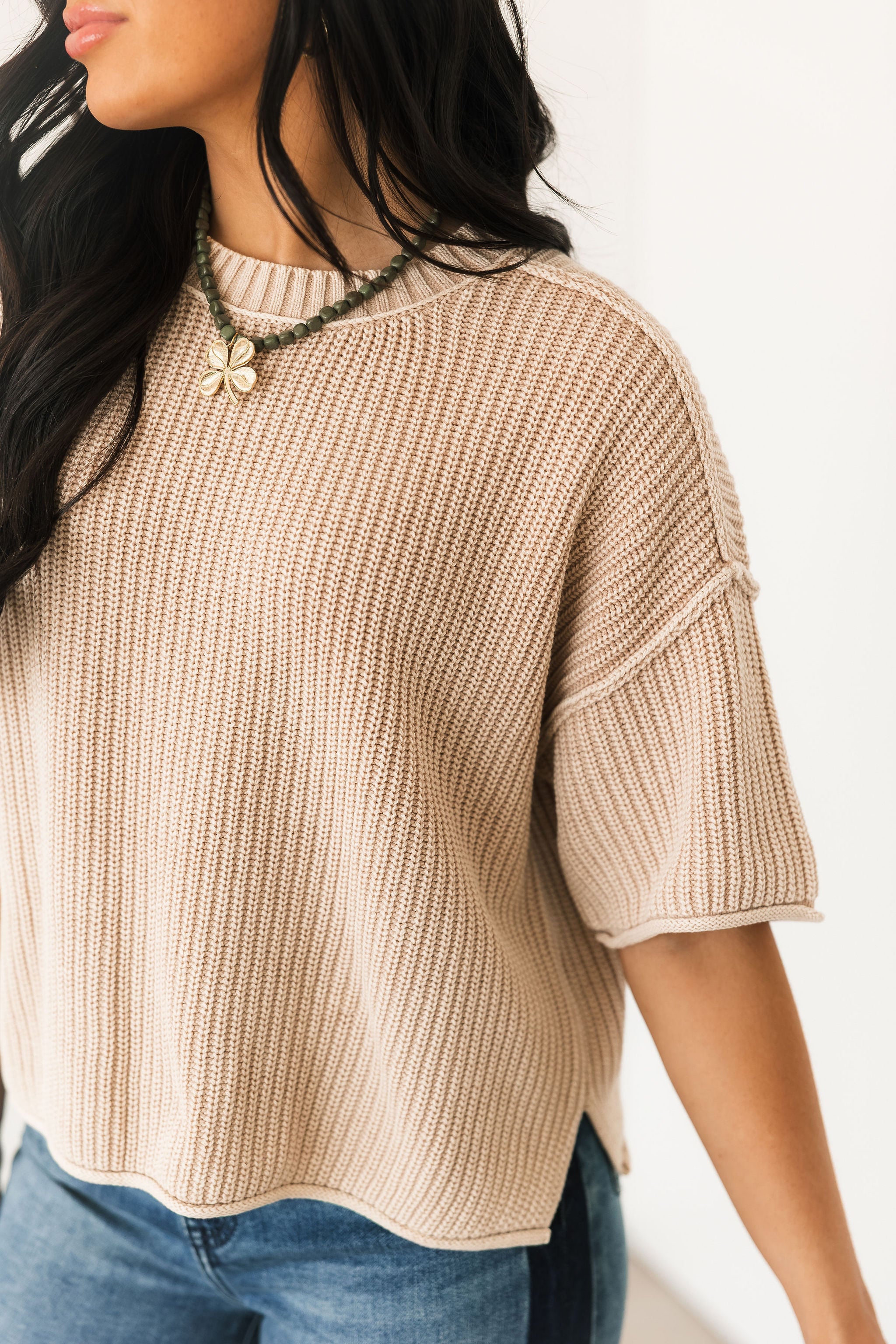 Short Sleeve Sweater | Khaki
