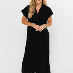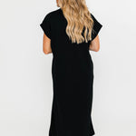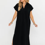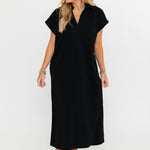 Effortless, timeless, and endlessly wearable — the Signature Style Midi Dress is your new go-to for any occasion. Crafted from a buttery soft fabric, this midi-length beauty features a flattering V-neckline with a classic collar, short sleeves, and relaxed silhouette. Side slits add easy movement, while hidden pockets bring function to fashion. Dress it up with heels or keep it casual with sneakers — either way, you're set in style. Lexi is wearing a small.
