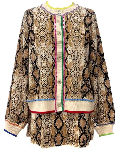 Snake Print Rainbow Trim Button Up Sweater | Queen Of Sparkles