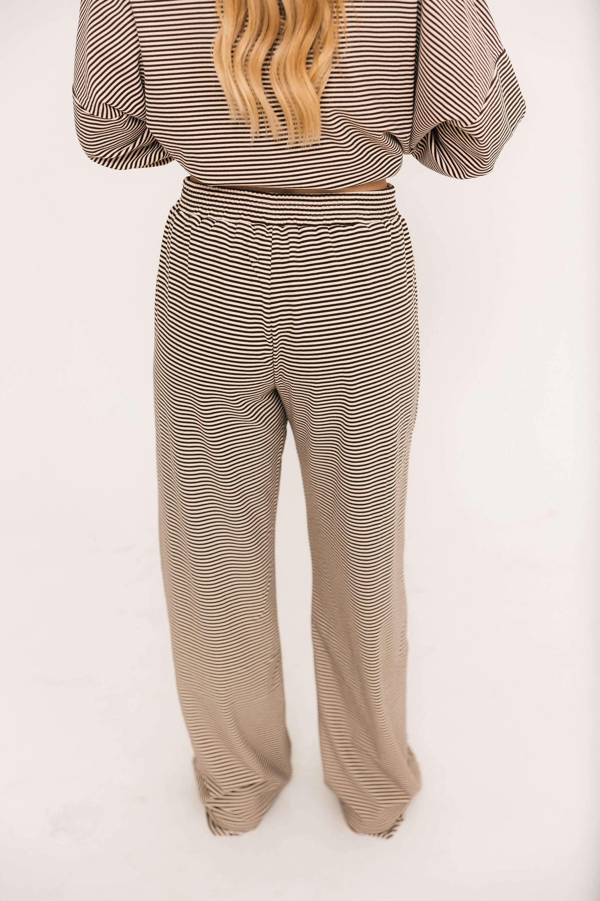 The So Cozy Pull On Pants are made for laid-back living. Designed with a relaxed fit, wide legs, and a comfy elastic waistband, these striped pants are as easy to wear as they are stylish. Just add your favorite tee or matching top for an instant cozy vibe. Lexi is wearing a small.