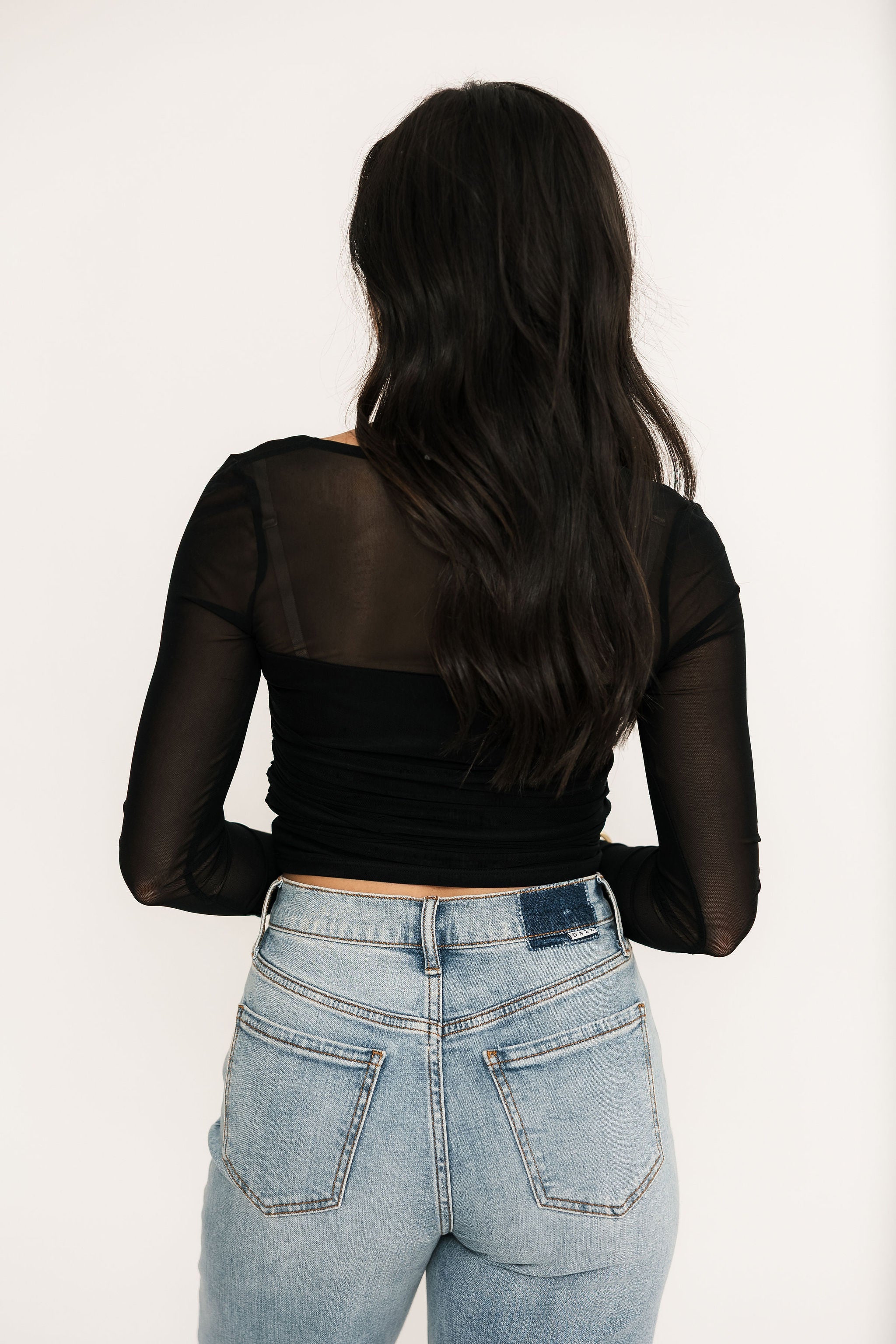 The Soft Focus Long Sleeve features a fitted silhouette with a flattering square neckline and sheer long sleeves that add a delicate, feminine finish. Effortless to dress up or down, it’s the perfect top to pair with denim for casual days or a sleek skirt for nights out. A versatile piece designed to move with you through every season. Sage is wearing a small.