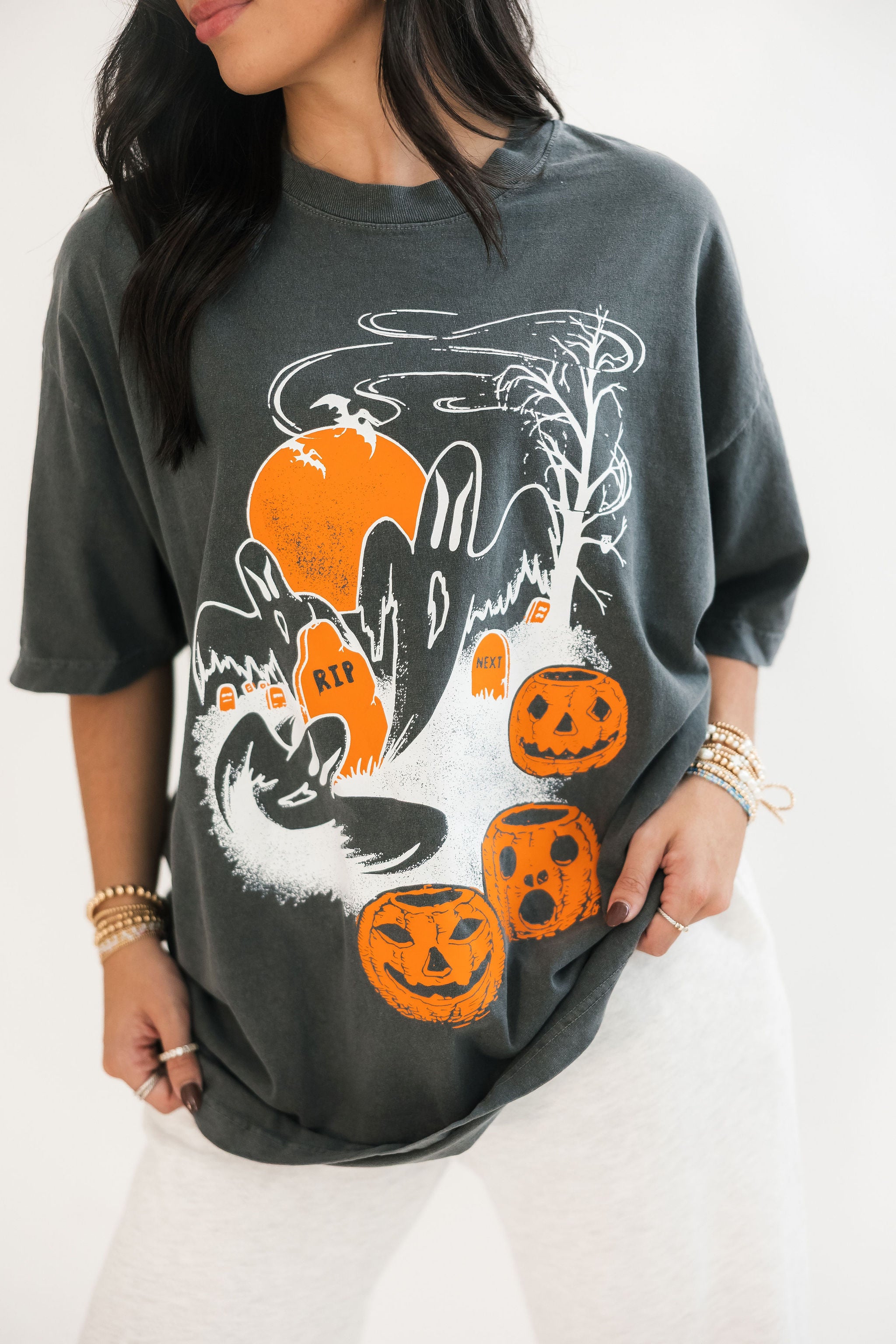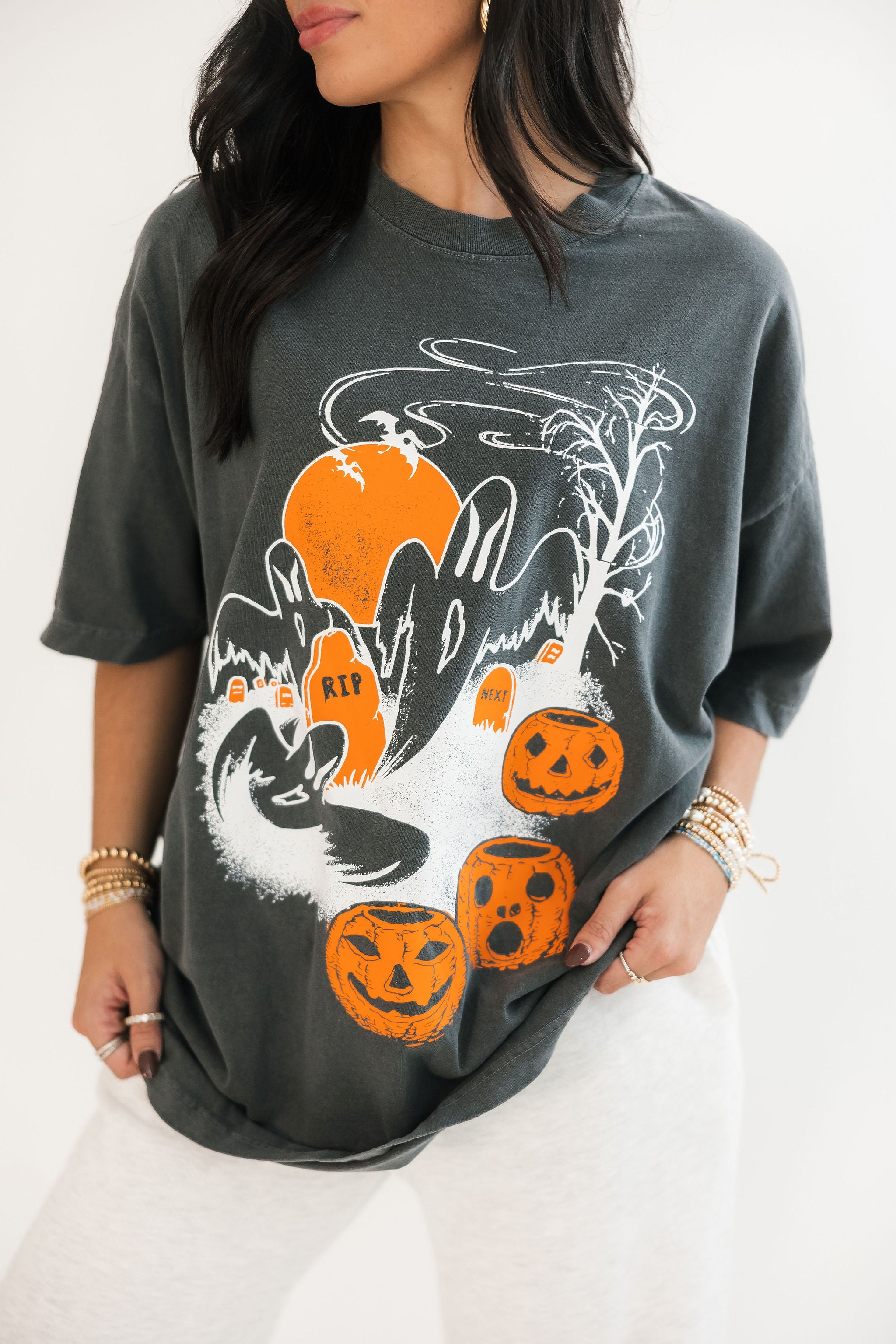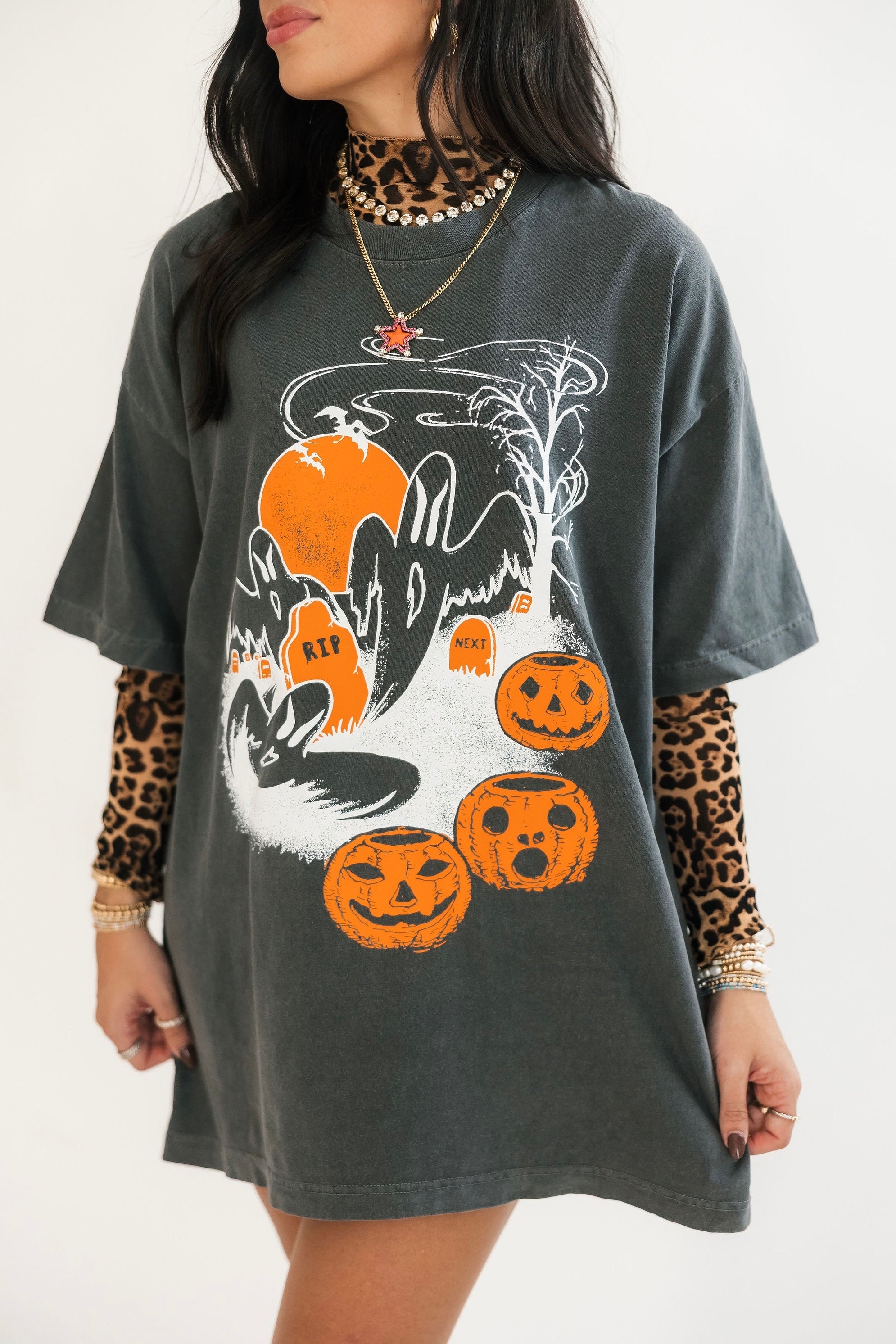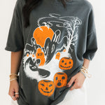 The Spooky Season Oversized Tee is the perfect mix of comfort and festive flair. Featuring a relaxed, oversized fit with a classic crewneck and short sleeves, this tee is finished with a playful Halloween graphic that celebrates the season in style. Whether you’re headed to a haunted house, carving pumpkins, or just lounging at home, this tee makes every day feel a little more fun and spooky. Sage is wearing a S/M.