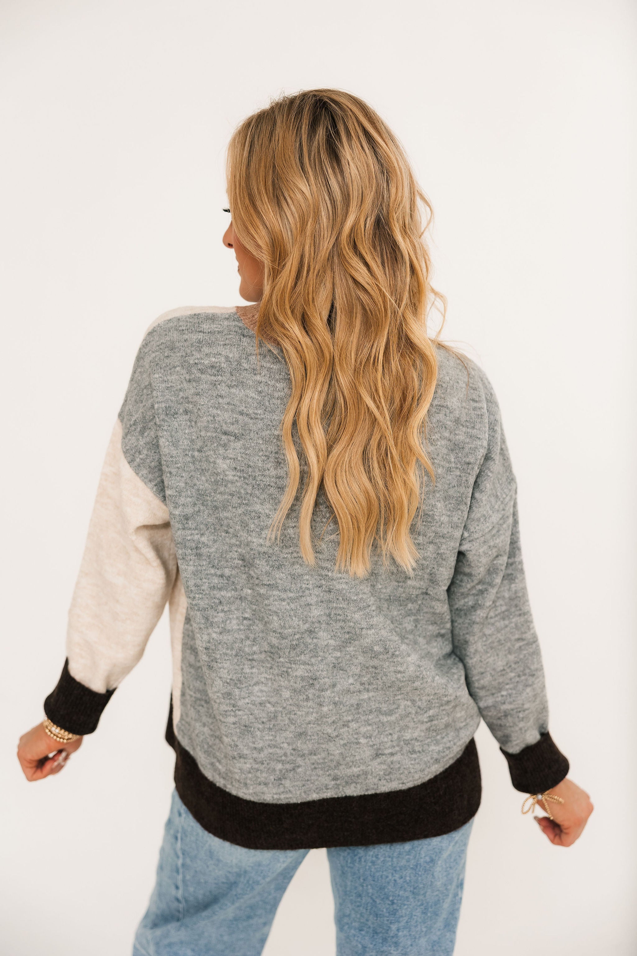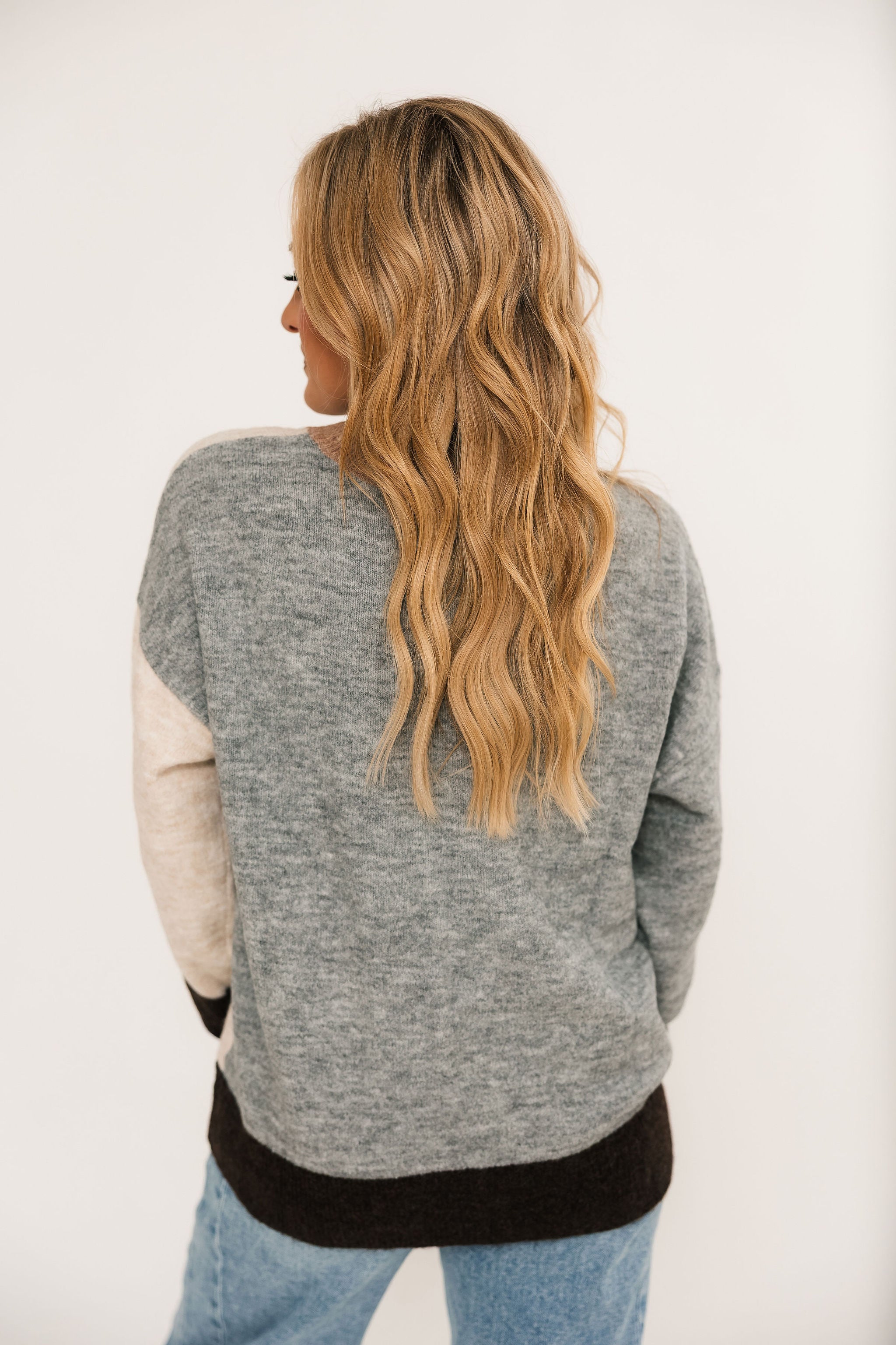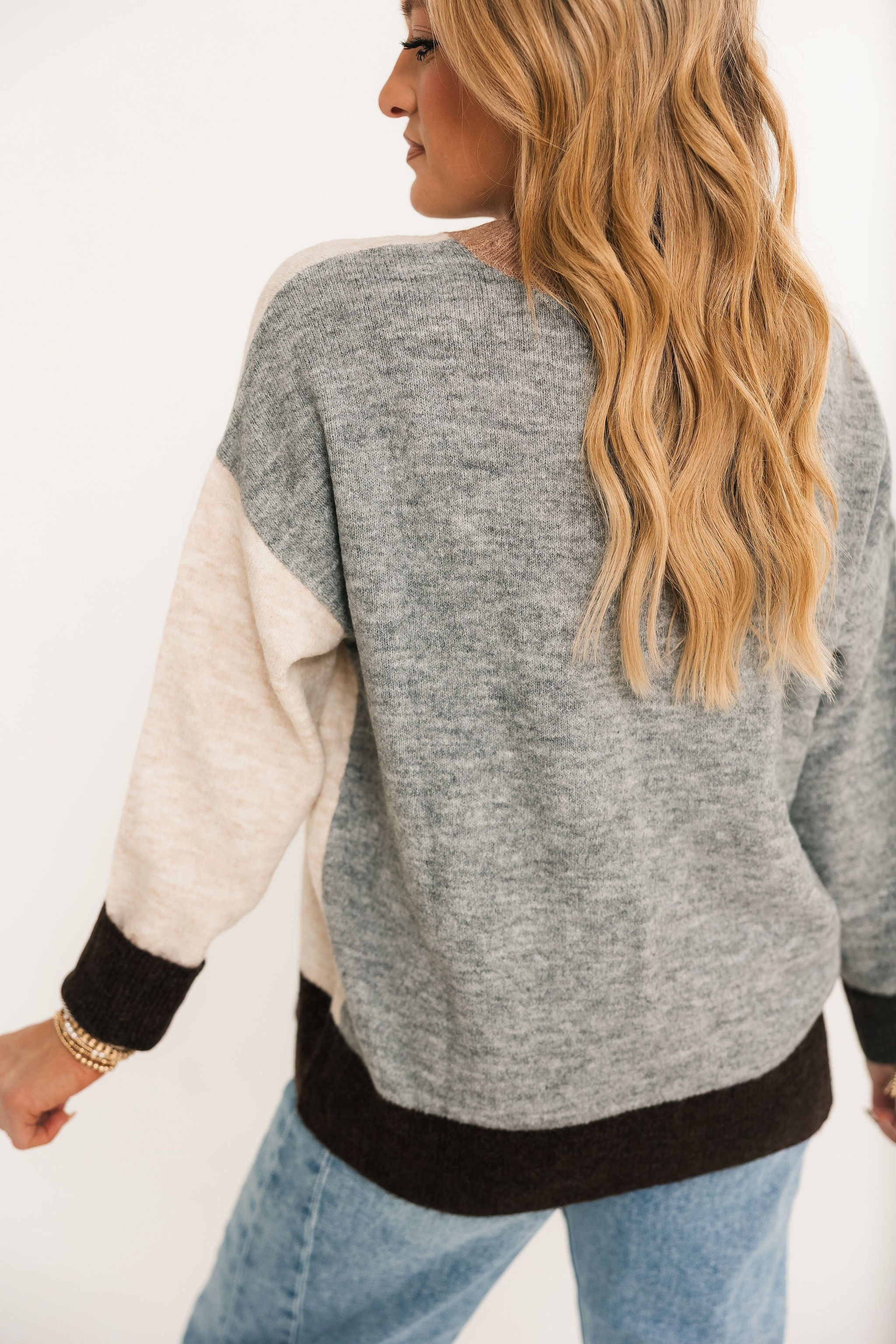 The Stone & Spice Colorblock Sweater is a cozy-chic essential that makes everyday dressing effortless. Designed with a relaxed fit and easy drop shoulders, this sweater pairs a timeless silhouette with a playful colorblock pattern for a fresh, modern vibe. The crew neckline and front seam detail add that extra touch of casual polish—perfect for layering with your favorite jeans or skirts all season long. Lexi is wearing a small.