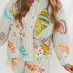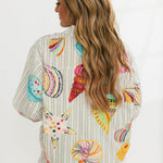 Stripe Button Up Multi Shell Long Sleeve Top | Queen Of Sparkles
