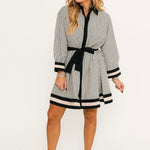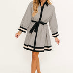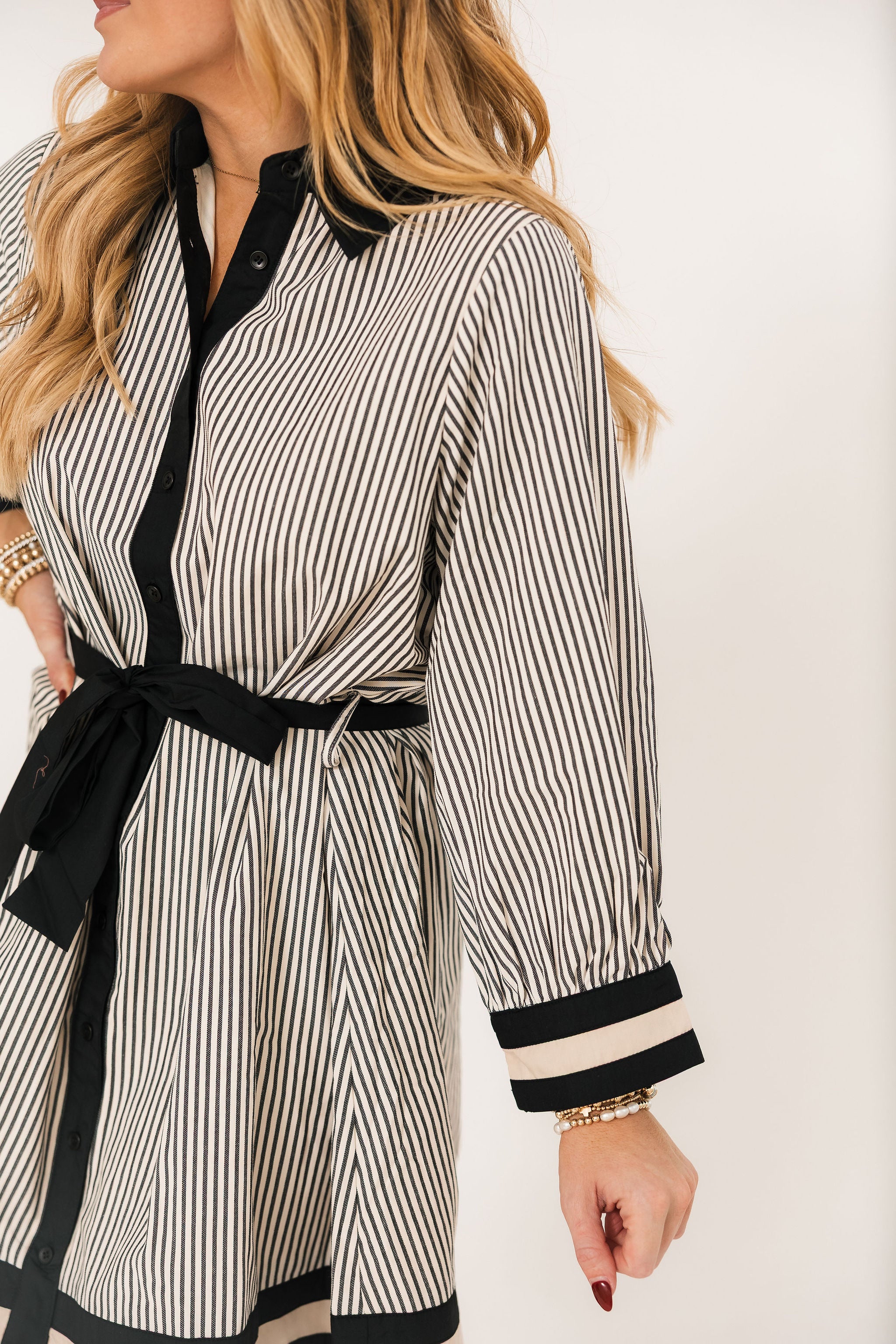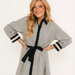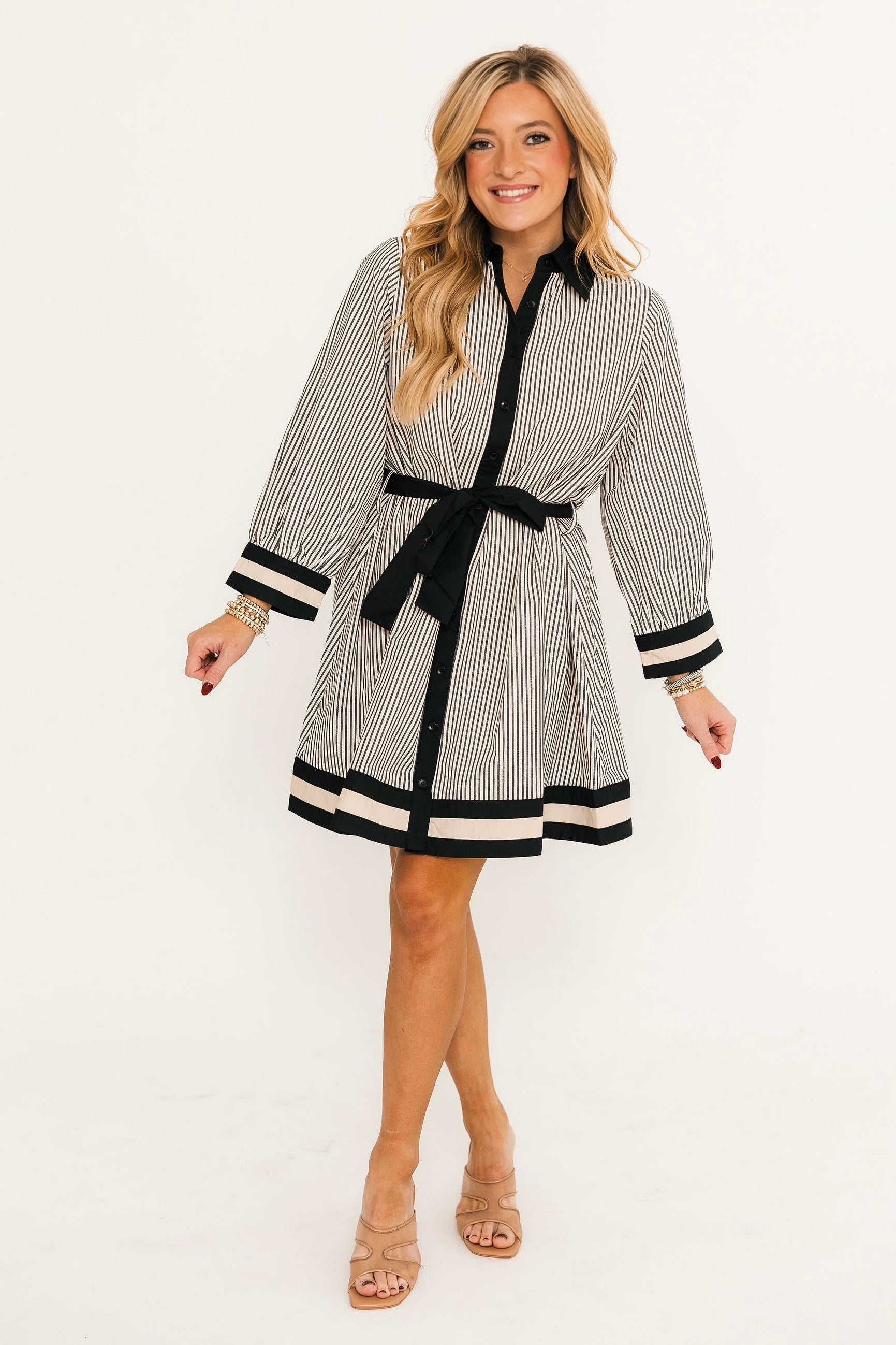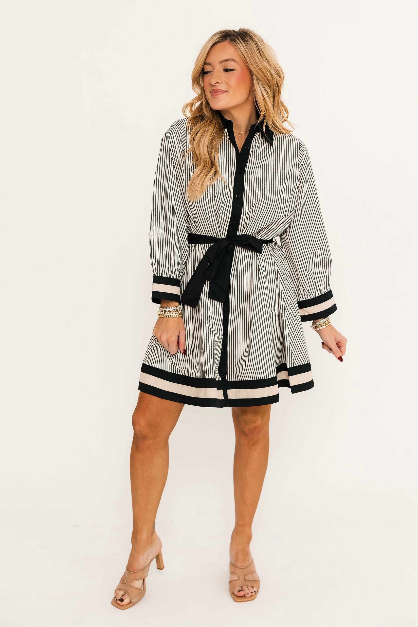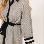 Effortless polish meets playful charm in the Striped & Chic Mini. This collared button-up dress features a warm rust hue with timeless stripes, a flattering mini length, and long sleeves for year-round wear. Dress it up with boots or keep it casual with sneakers—either way, it’s a standout. Lexi is wearing a small.