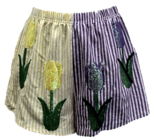 Queen Of Sparkles Striped Colorblock Sequin Tulip Cotton Short