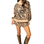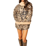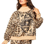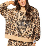 The Queen Of Sparkles Tan Leopard Print QOS Card Logo Sweatshirt brings elevated sparkle to an everyday silhouette. Designed with a relaxed fit and classic crew neckline, it features an eye-catching leopard print base with the signature QOS card logo for a chic finishing touch. Perfect for pairing with denim or matching with the shorts, this sweatshirt is where cozy meets luxe.