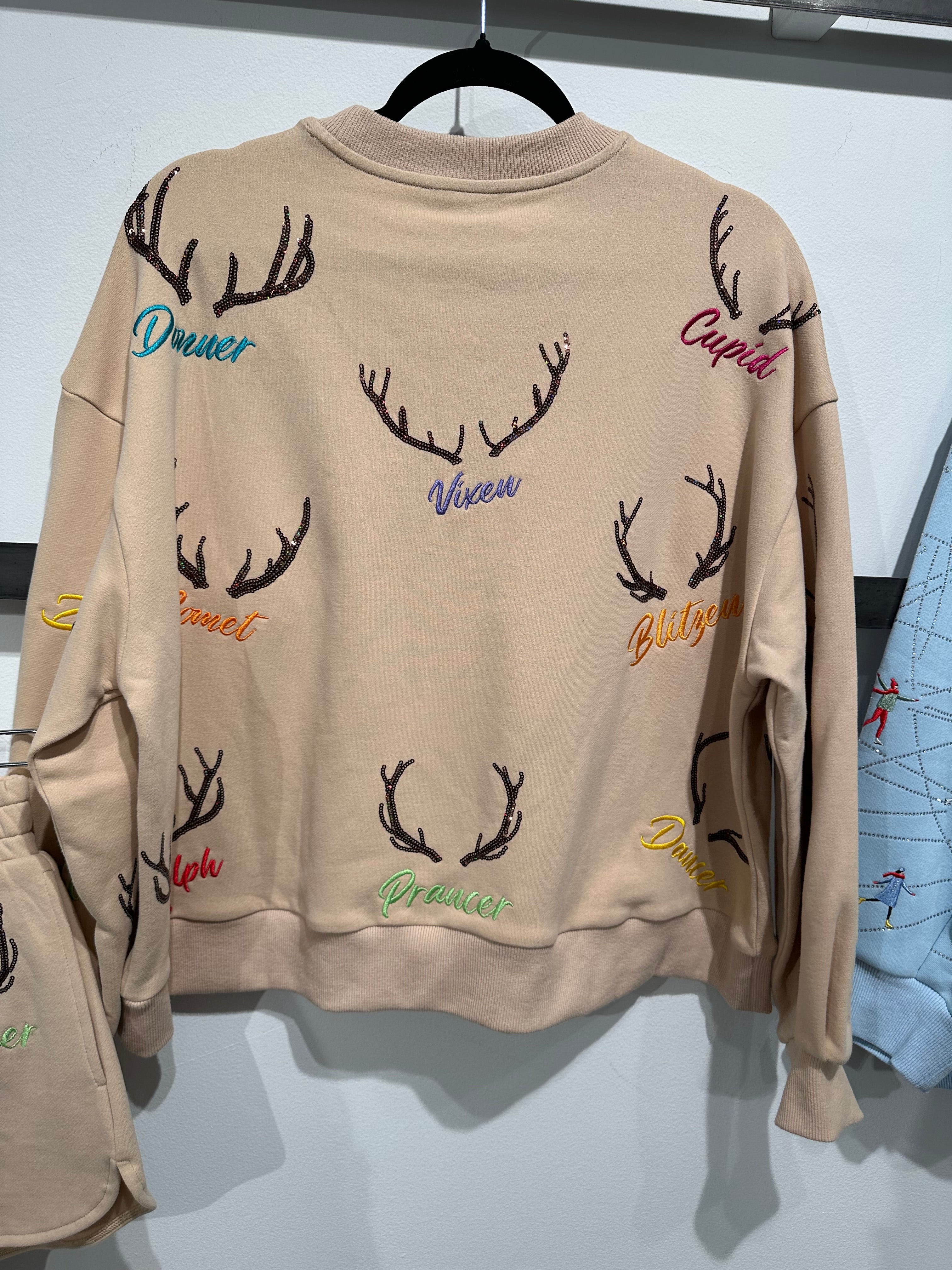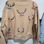 Tan Reindeer Name & Antlers Sweatshirt | Queen Of Sparkles