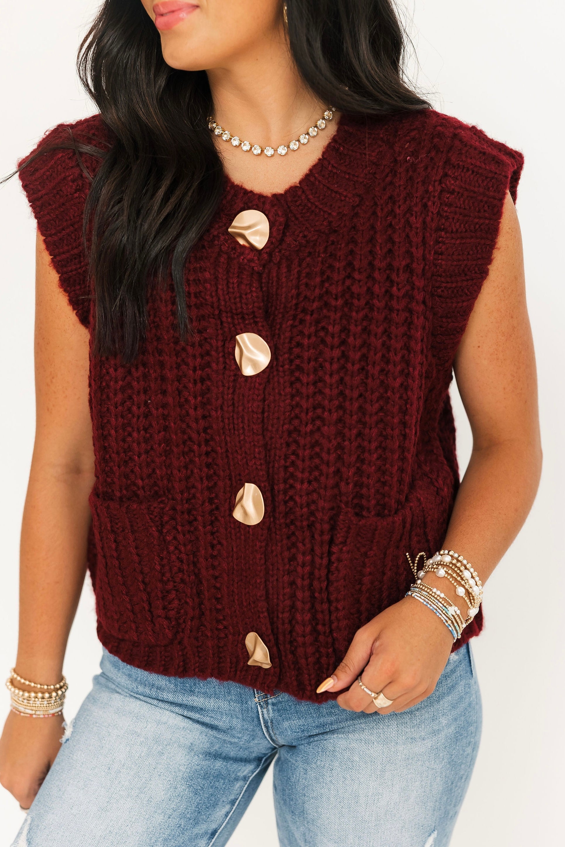 Chic, cozy, and effortlessly stylish—the Little Things Sweater Vest is the perfect layering piece. Wear it solo or over your fave top for a timeless, put-together look! Sage is wearing a small.