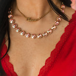 The TOVA Sofia Choker in Light Rose Glimmer features a delicate chain with a subtle, shimmering pendant. Perfect for layering with other pieces or wearing alone, it brings a soft, feminine touch that’s ideal for Valentine’s or any day you want a little glow.