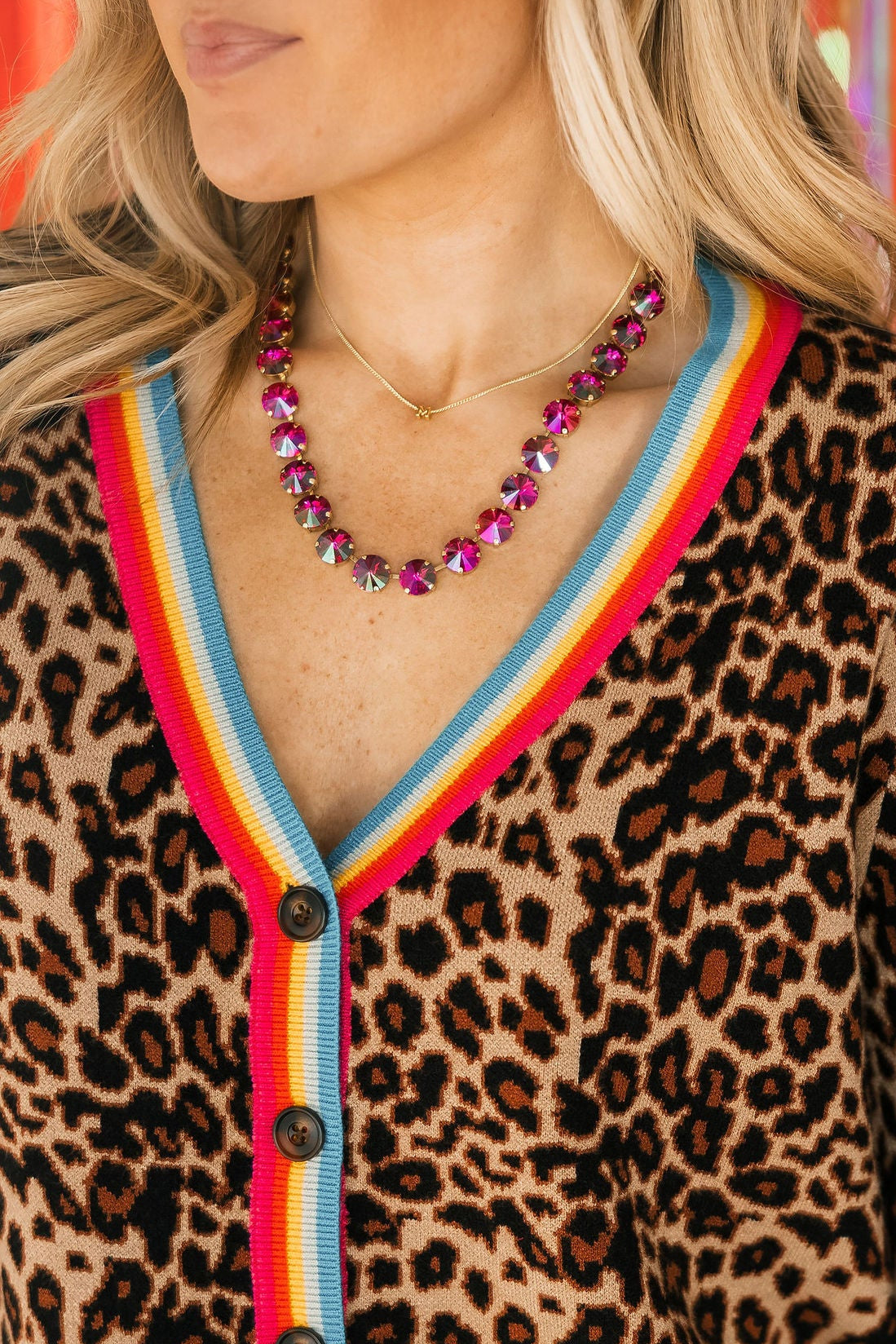 The TOVA Sofia Necklace in Dark Rose Glimmer features a dainty chain with a shimmering dark rose pendant that catches the light beautifully. Perfect for layering or wearing alone, it brings a subtle, elegant sparkle that’s just right for Valentine’s or any day you want a little extra shine.